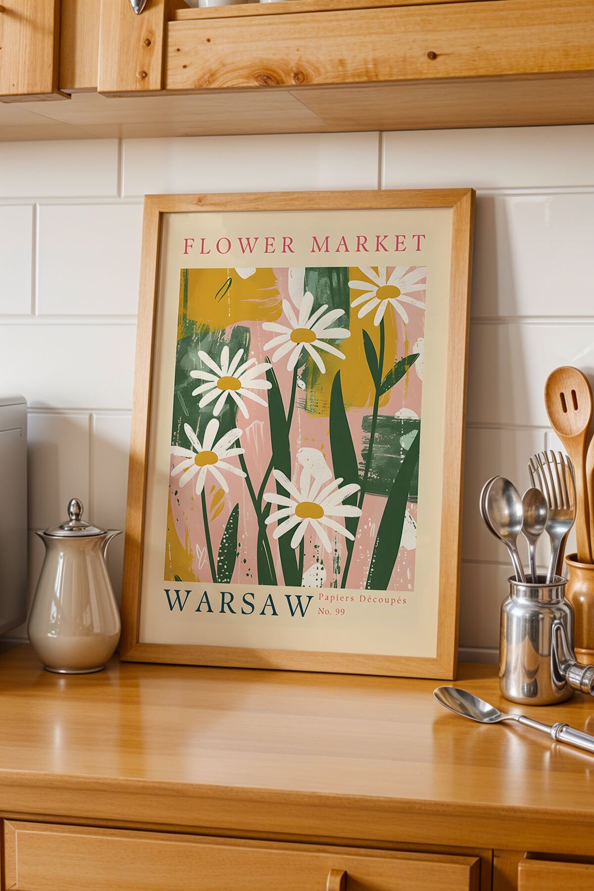DOĞAL AHŞAP - Warsaw – Doğal Ahşap Çerçeveli Flower Market Varşova Vintage Papatya Tablo