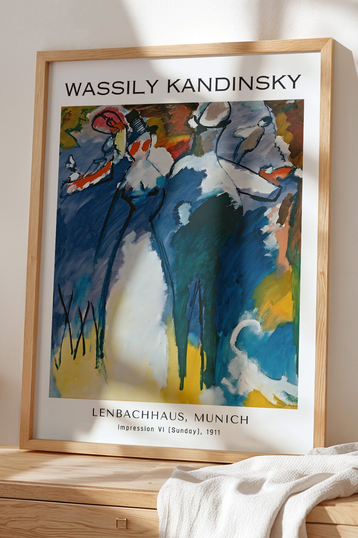 DOĞAL AHŞAP - Wassily Kandinsky - Geometrik Ritim - Ahşap Çerçeveli Duvar Tablosu