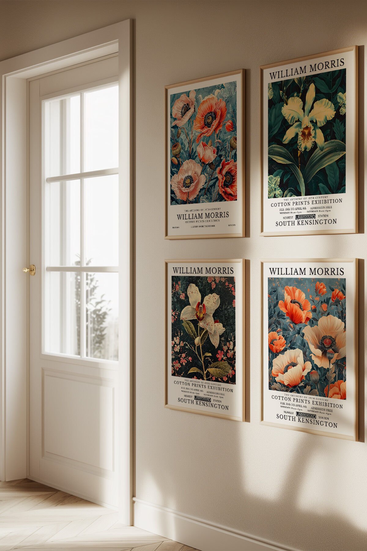 DOĞAL AHŞAP - William Morris Sanatsal Çiçek Tasarımı Vintage Doğal Ahşap Çerçeveli Tablo Duvar Dekoru