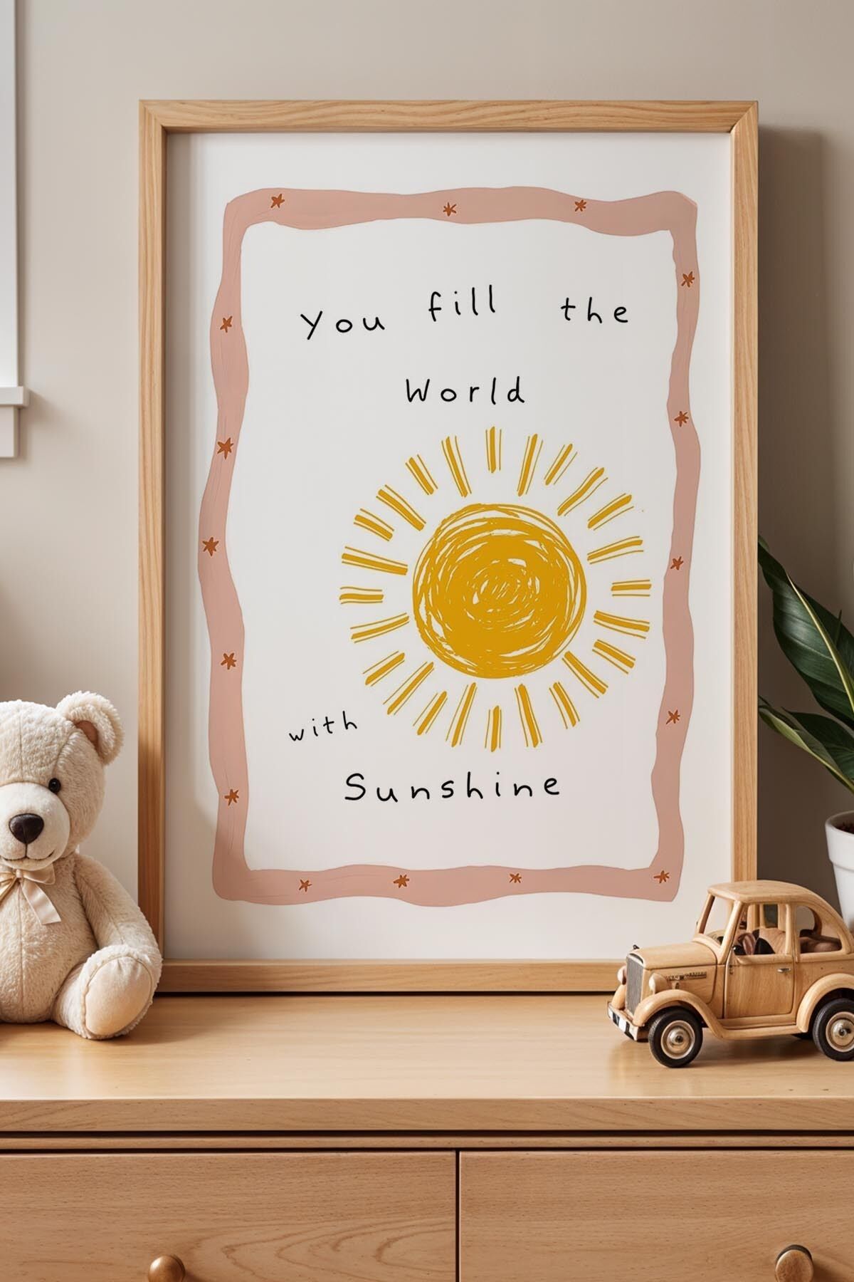 DOĞAL AHŞAP - With Sunshine Yazılı Çocuk Odası Ahşap Çerçeveli Duvar Tablosu