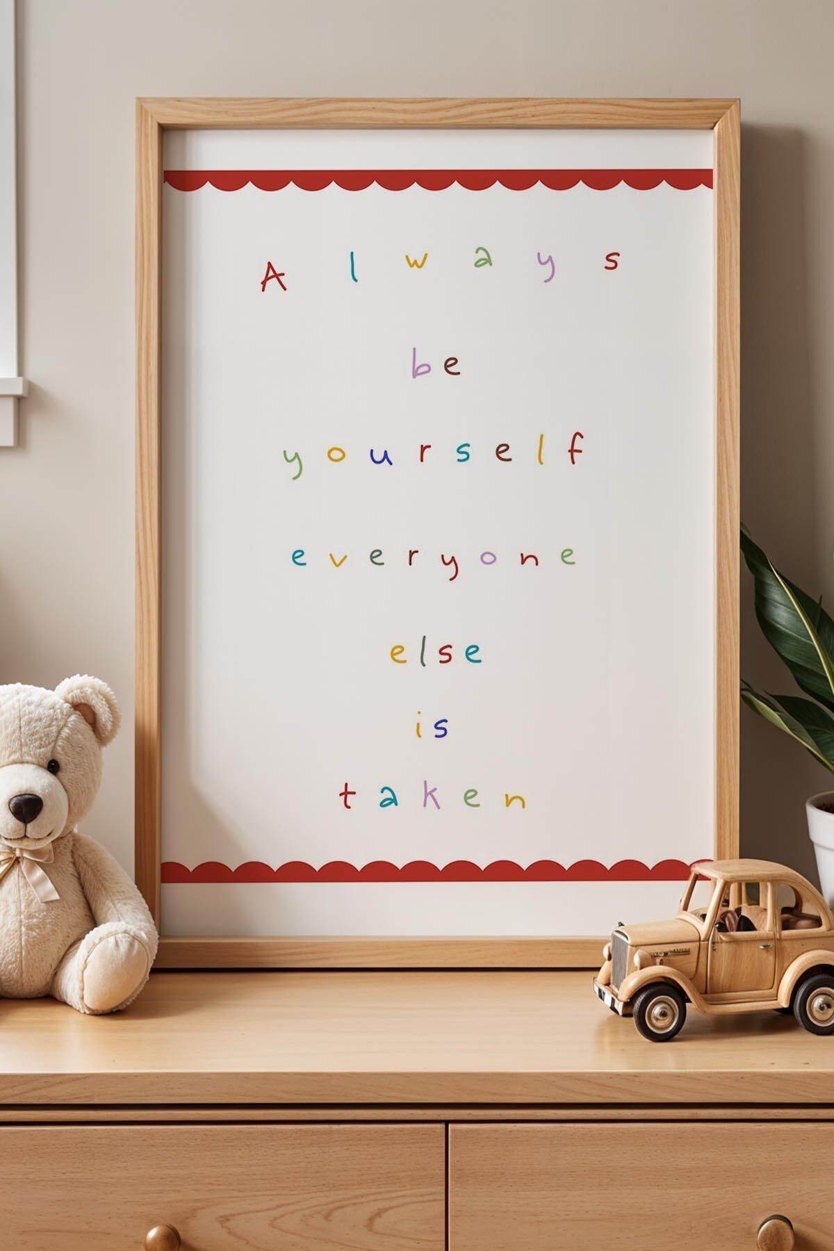 DOĞAL AHŞAP - Yazı Temalı Çocuk Odası Ahşap Çerçeveli Duvar Tablosu