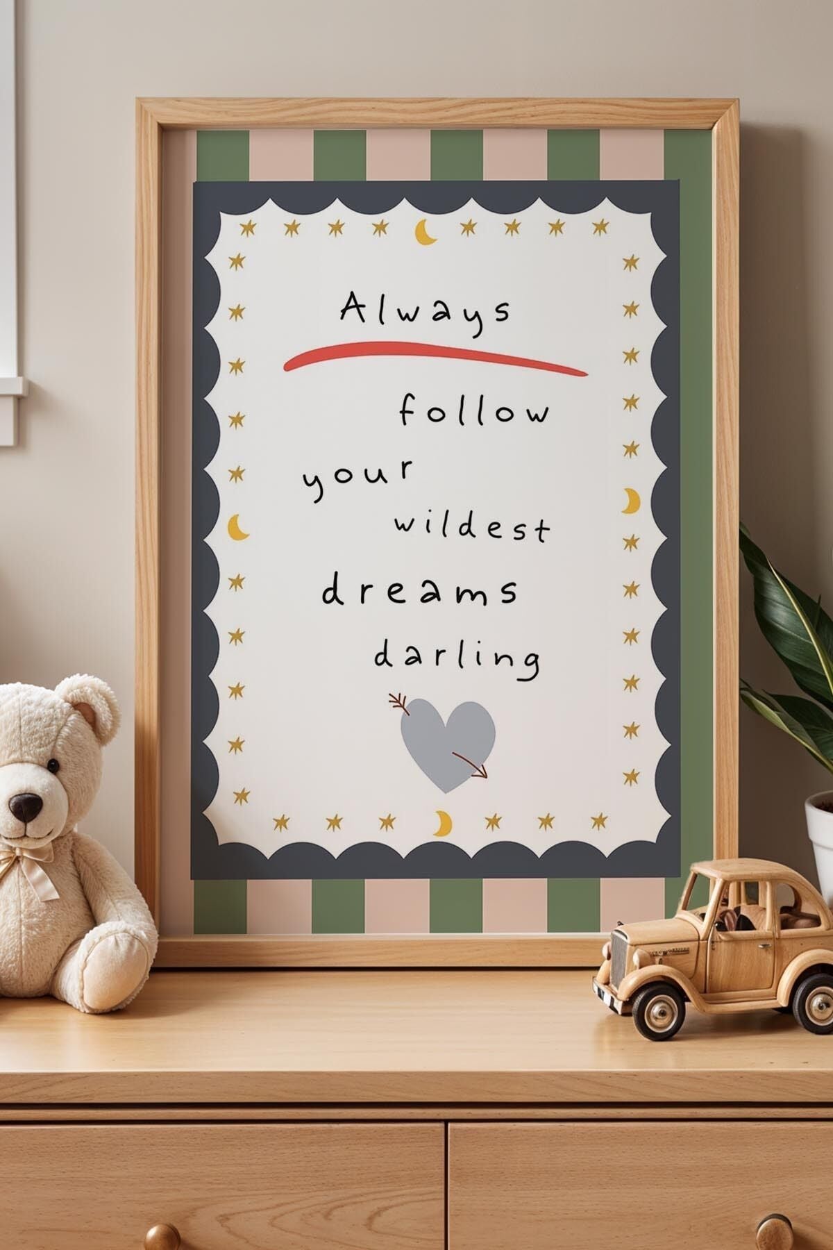 DOĞAL AHŞAP - Yazı Temalı Çocuk Odası Ahşap Çerçeveli Duvar Tablosu