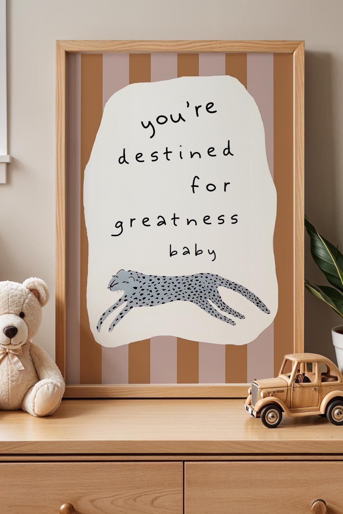 DOĞAL AHŞAP - Yazılı Leopar Çocuk Odası Ahşap Çerçeveli Duvar Tablosu