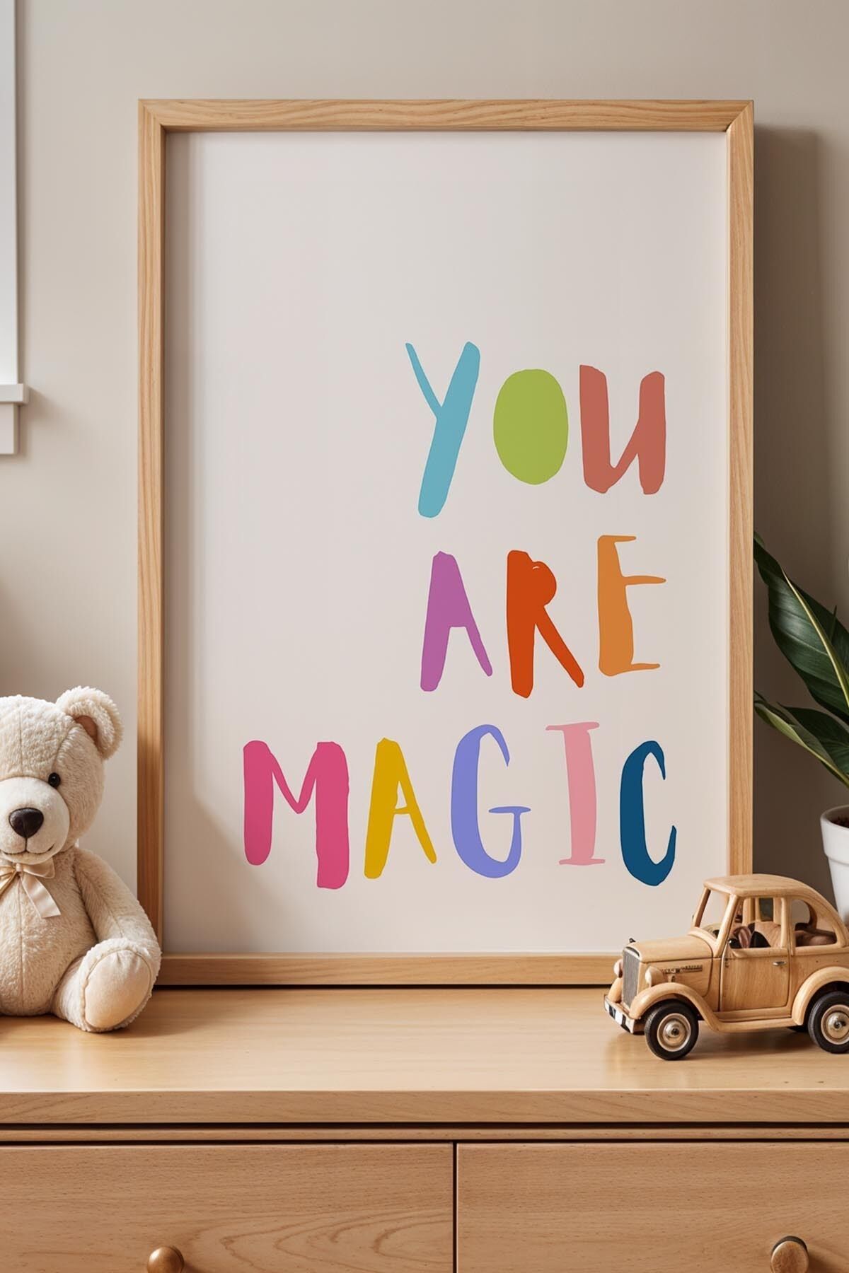 DOĞAL AHŞAP - You Are Magic Yazılı Çocuk Odası Ahşap Çerçeveli Duvar Tablosu