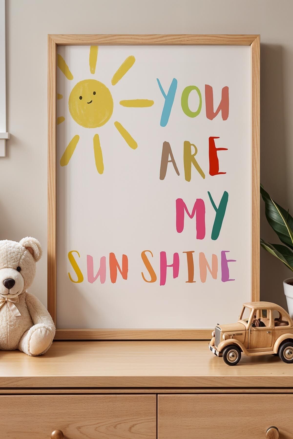 DOĞAL AHŞAP - You Are My Sun Shine Yazılı Çocuk Odası Ahşap Çerçeveli Duvar Tablosu