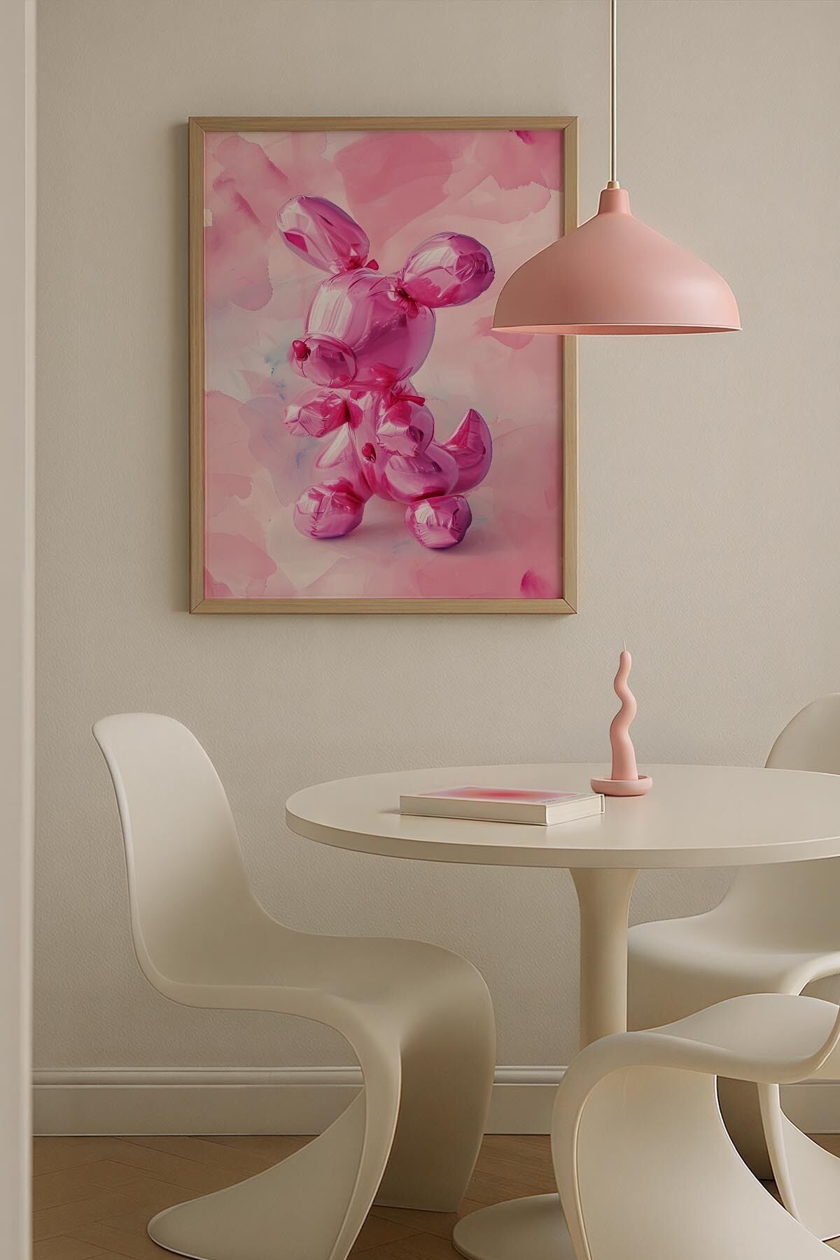 DOĞAL AHŞAP - Zürafa Figürü Pembe Maksimalist Sanatı Ahşap Çerçeveli Duvar Tablosu