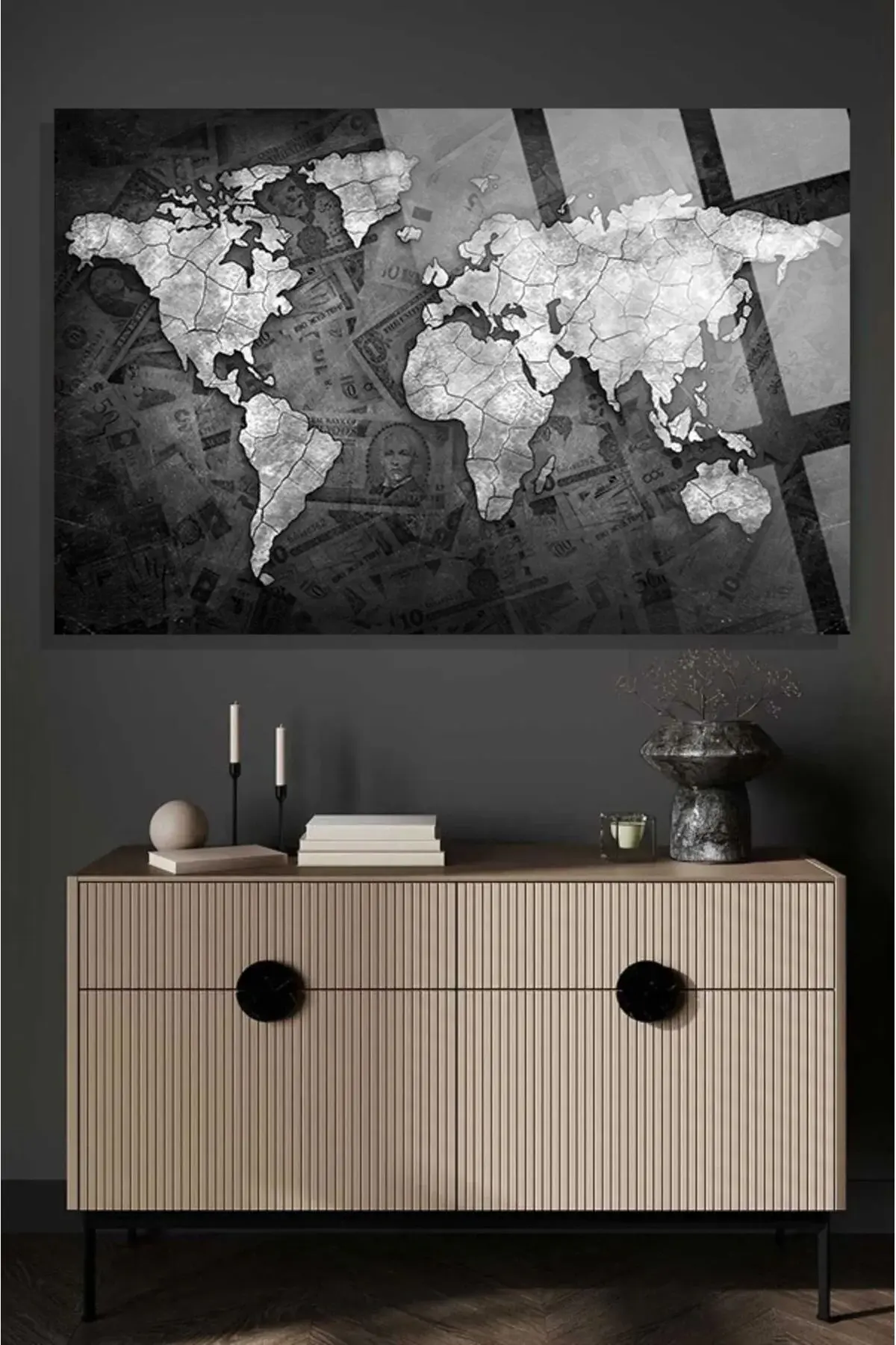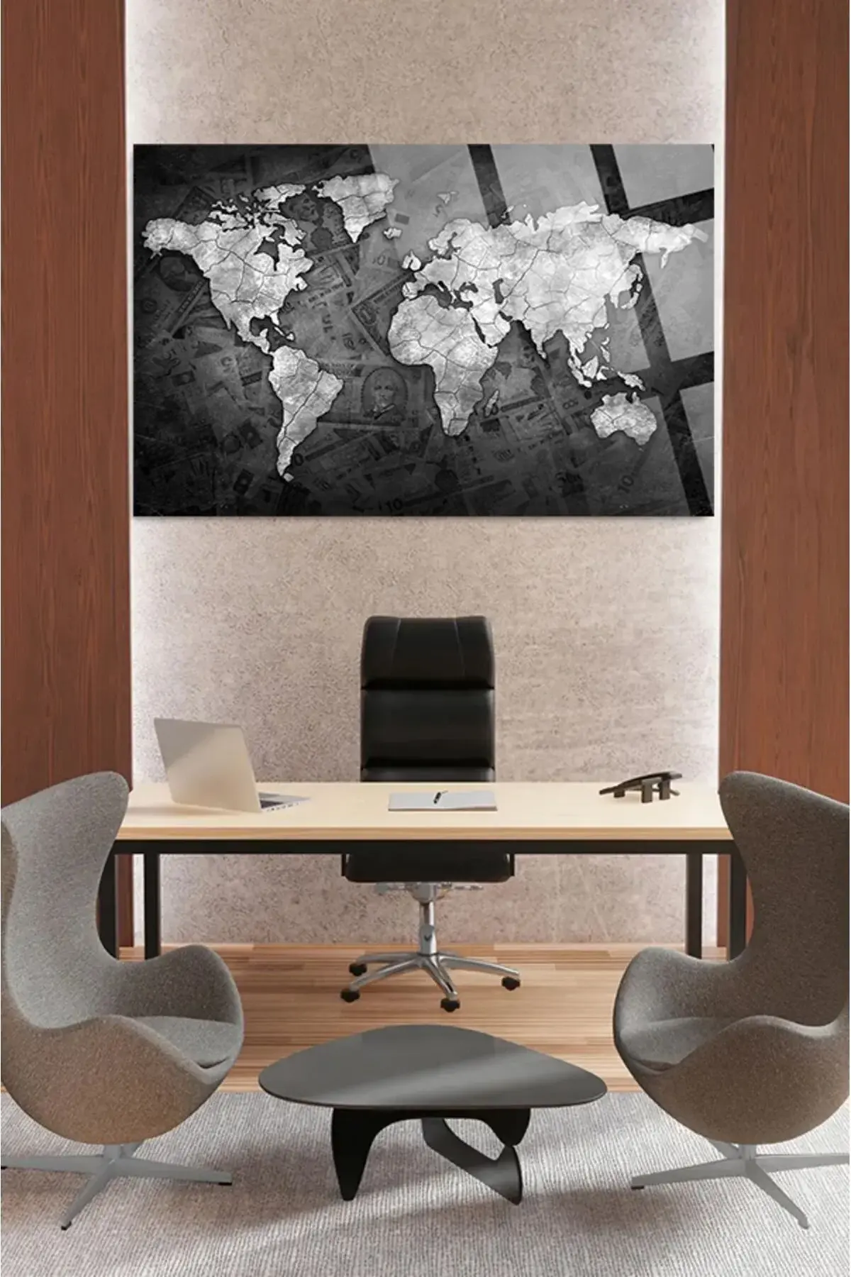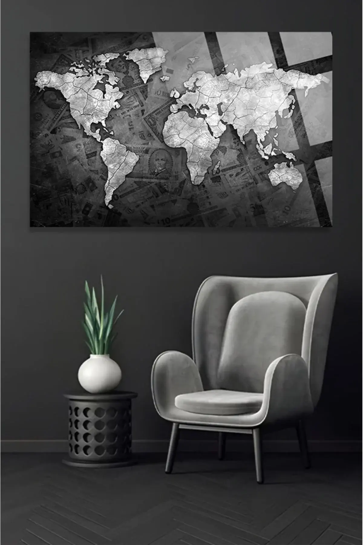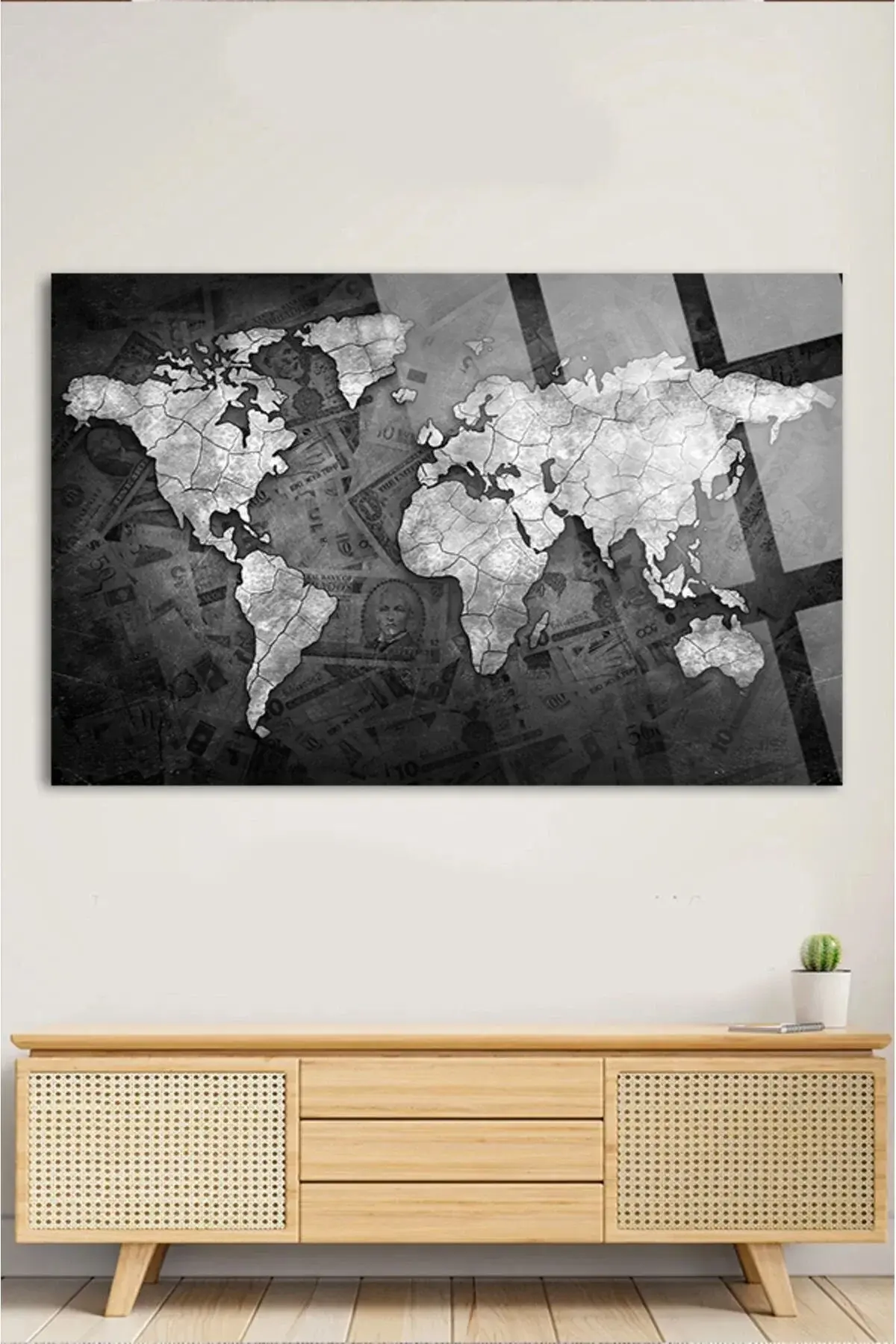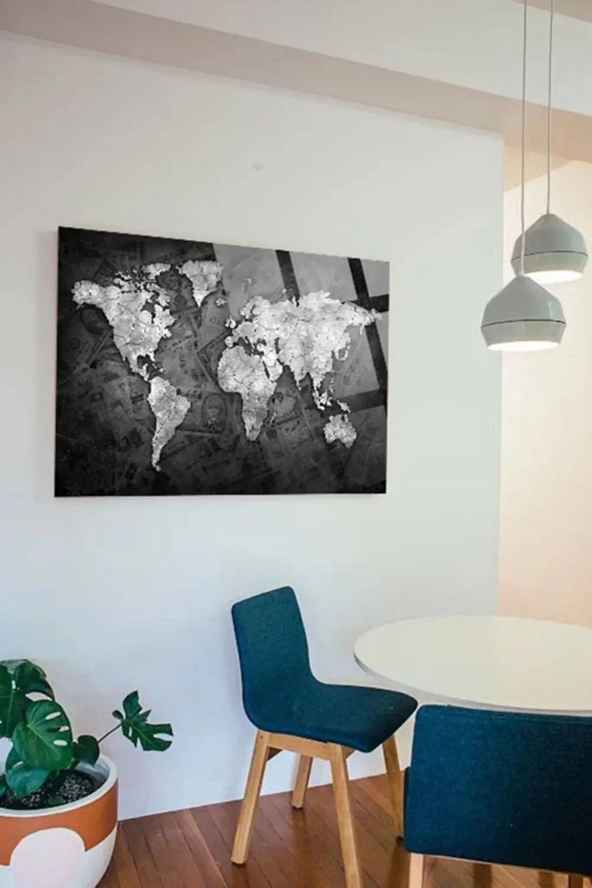 Dolar Dünya Haritası Ofis, Ev için Harita 4mm Kırılmaz Temperli Yüksek Çözünürlüklü Cam Tablo