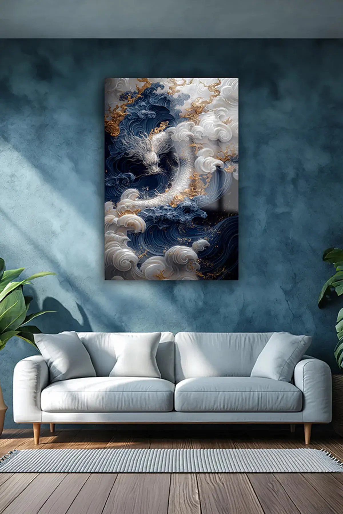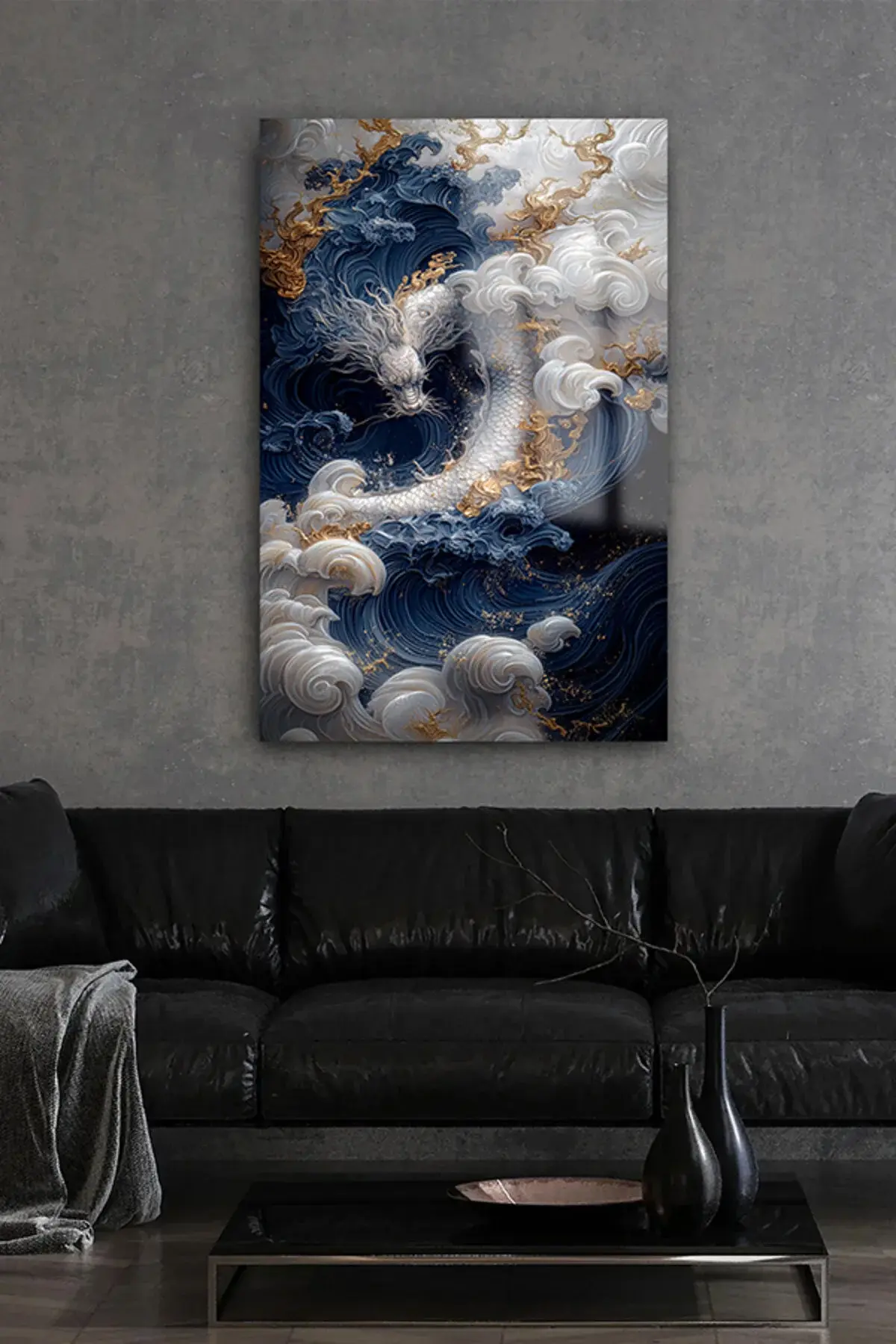 EJDERHA JAPON TASARIMI KIRILMAZ CAM TABLO EV HEDİYESİ İŞ YERİ HEDİYESİ CAM TABLO Mavi