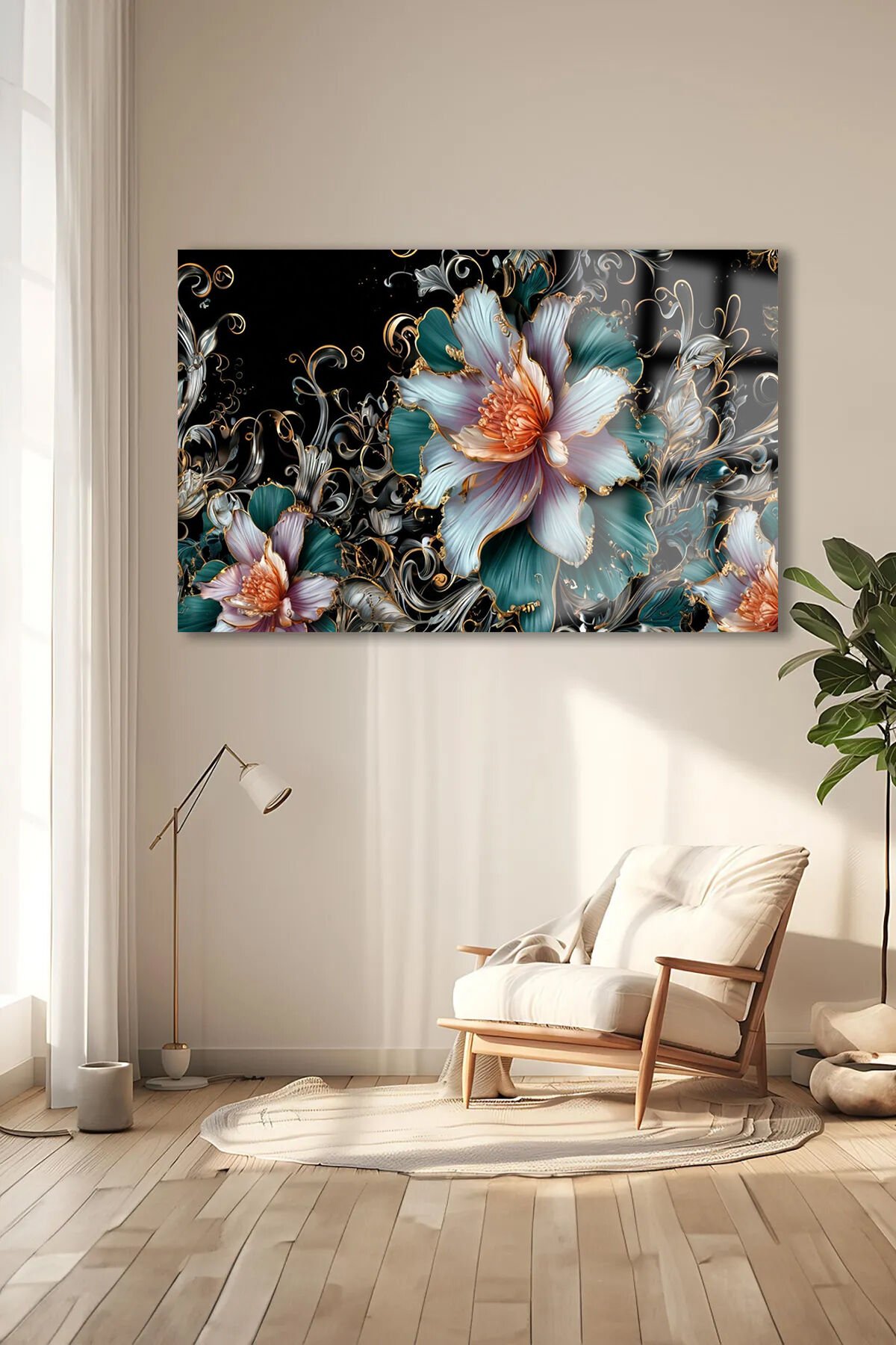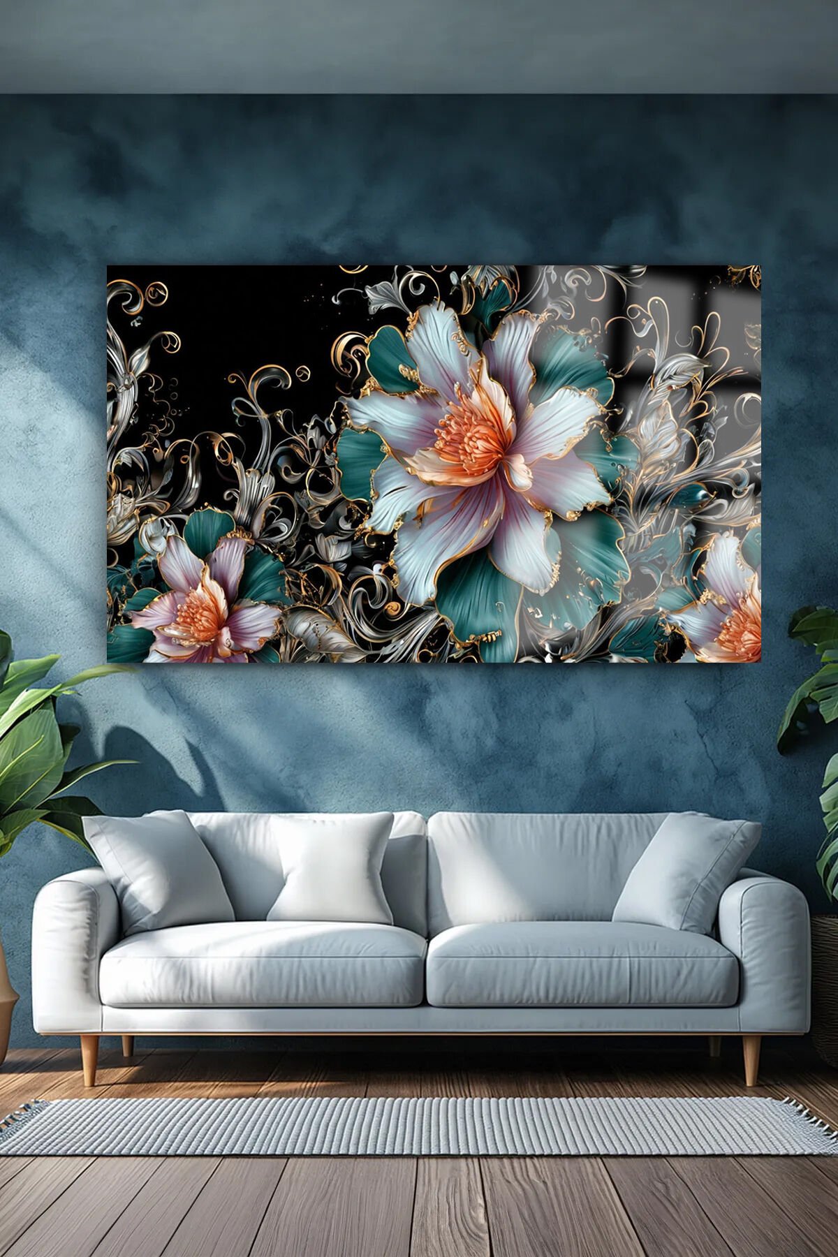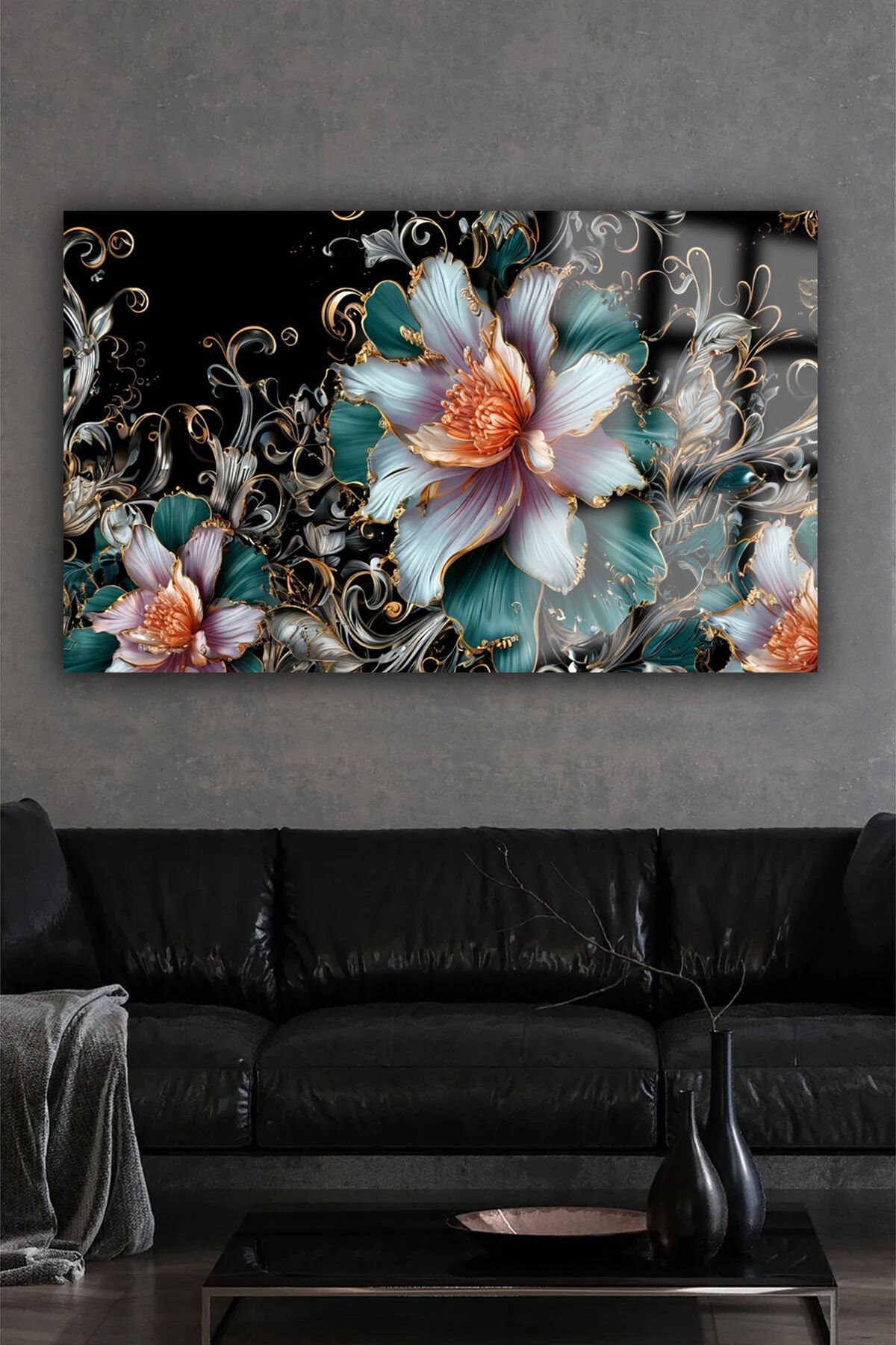 ELMAS YAPRAKLI LOTUS ÇİÇEĞİ LÜKS KIRILMAZ CAM TABLO EV HEDİYESİ TABLO