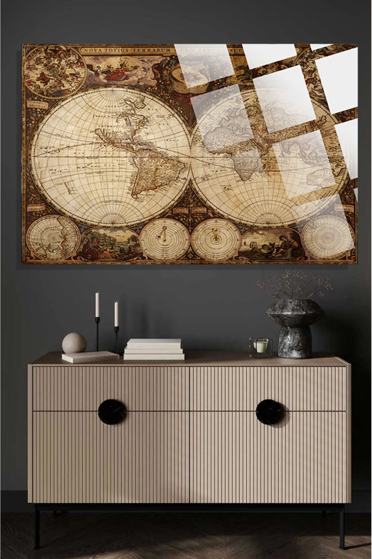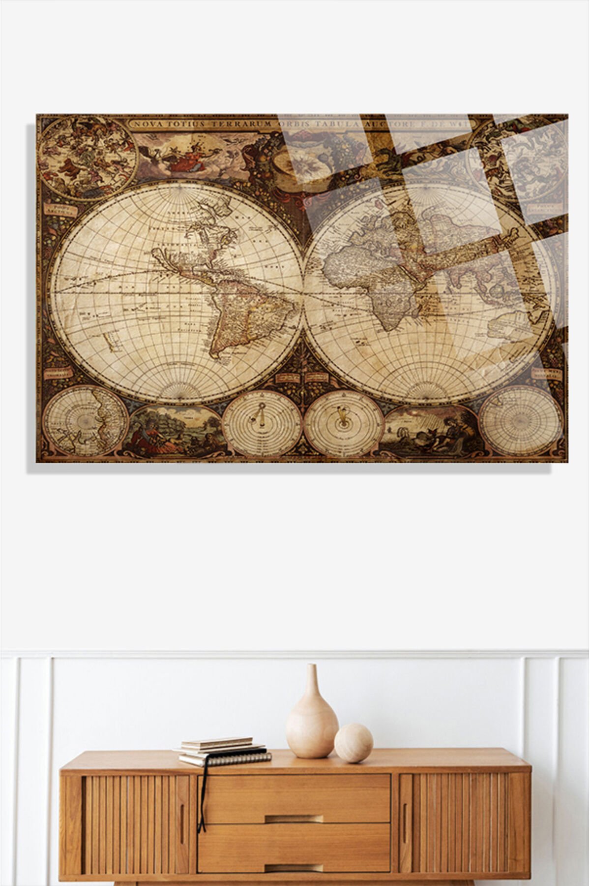 Eski Dünya Haritası 4mm Lüks Kırılmaz Temperli Yüksek Çözünürlüklü Cam Tablo kahverengi 4