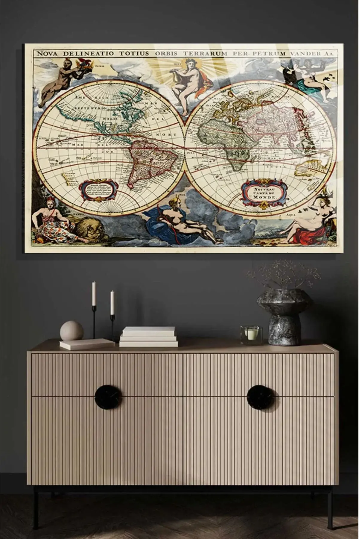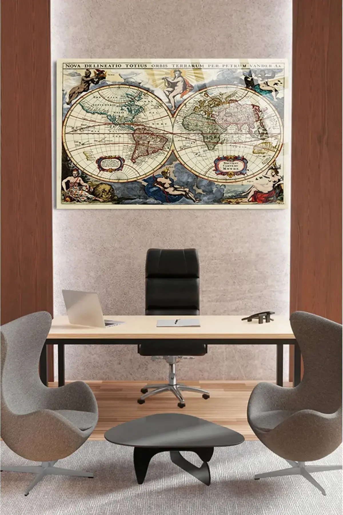 Eski Dünya Haritası Ofis, Ev için Harita 4mm Kırılmaz Temperli Yüksek Çözünürlüklü Cam Tablo