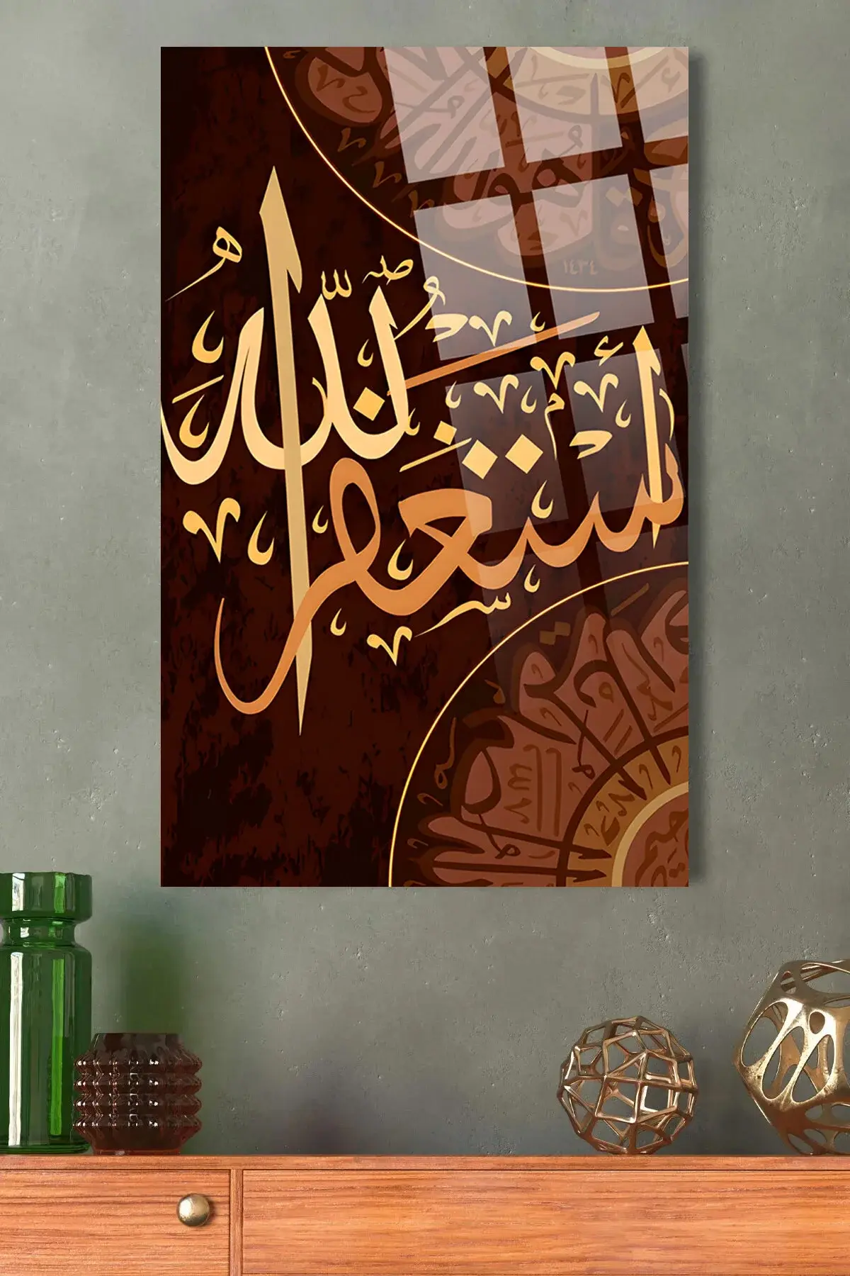 Estağfirullah YAZILI KIRILMAZ LÜKS CAM TABLO EV HEDİYESİ İŞ YERİ HEDİYESİ DİNİ İSLAMİ CAM TABLO Kırmızı