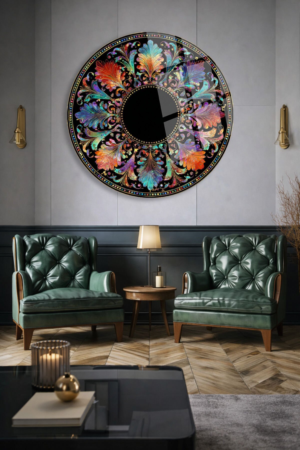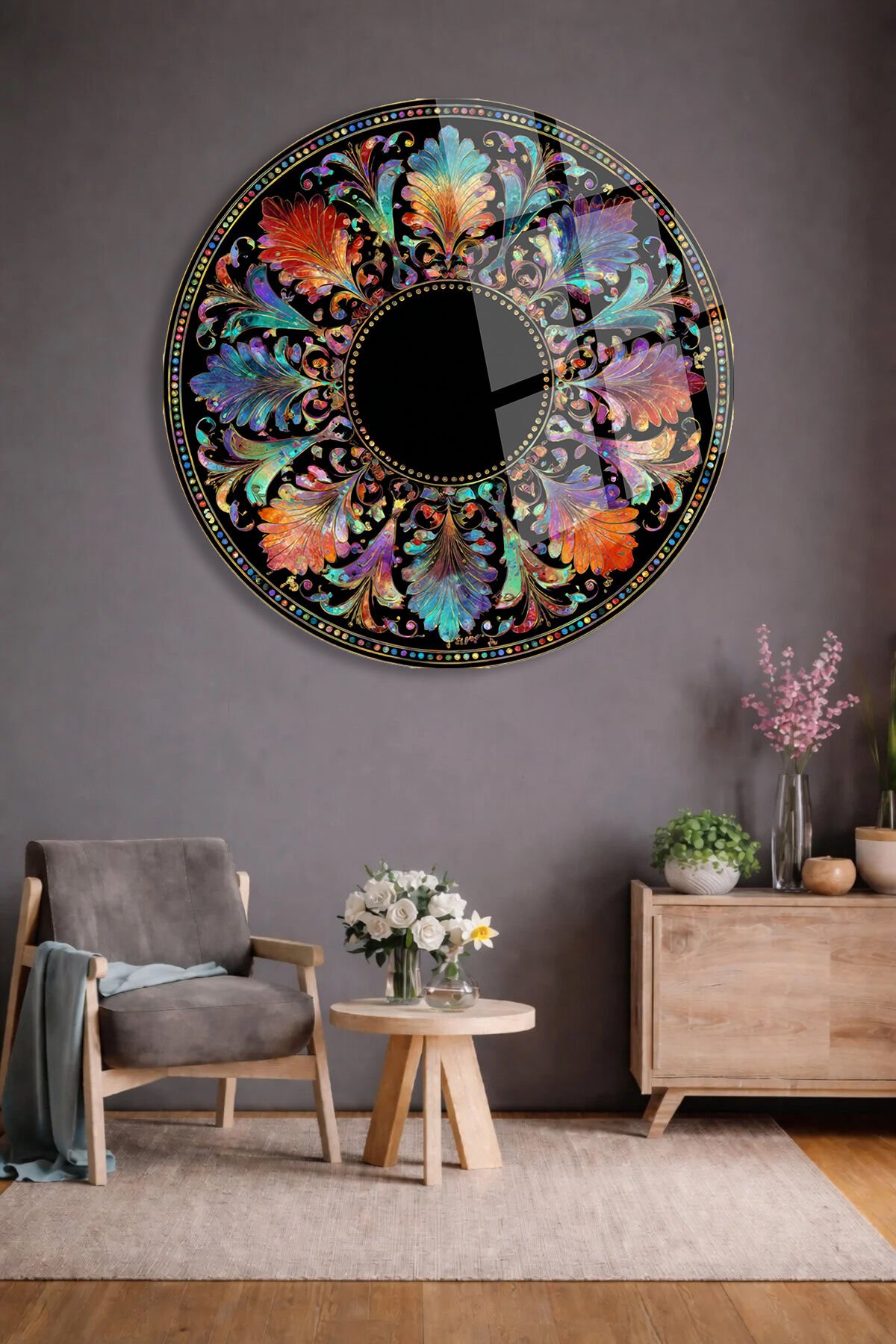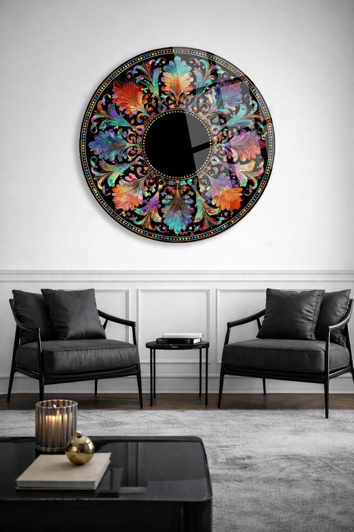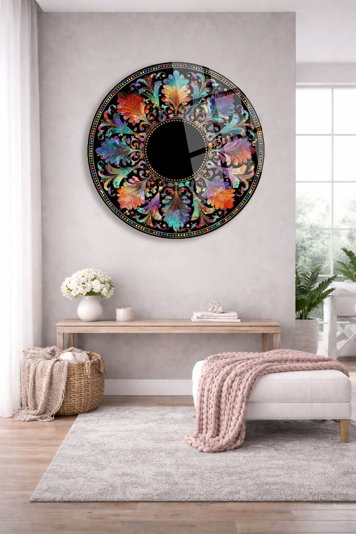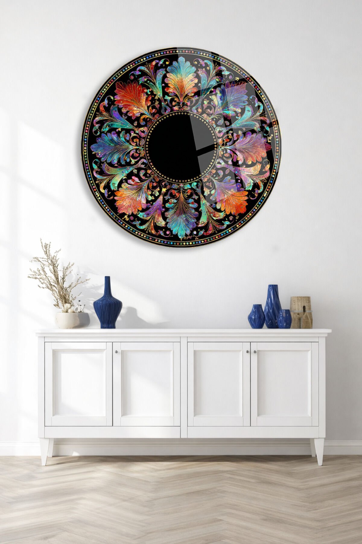 EV OFİS HEDİYESİ RENKLİ MANDALA DESENLİ YUVARLAK GERÇEK KIRILMAZ CAM TABLO ULTRA CANLI RENKLER Çok Renkli