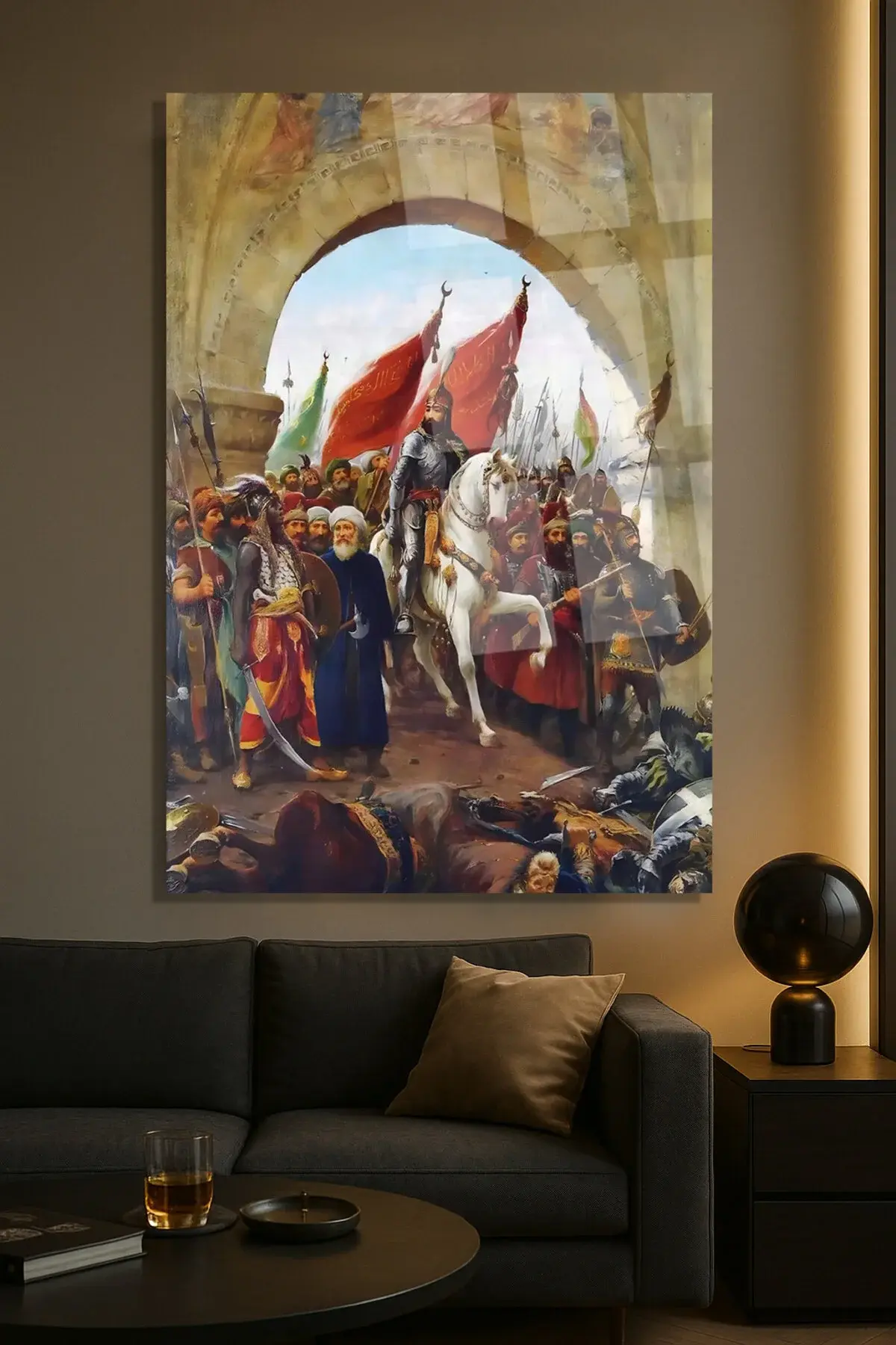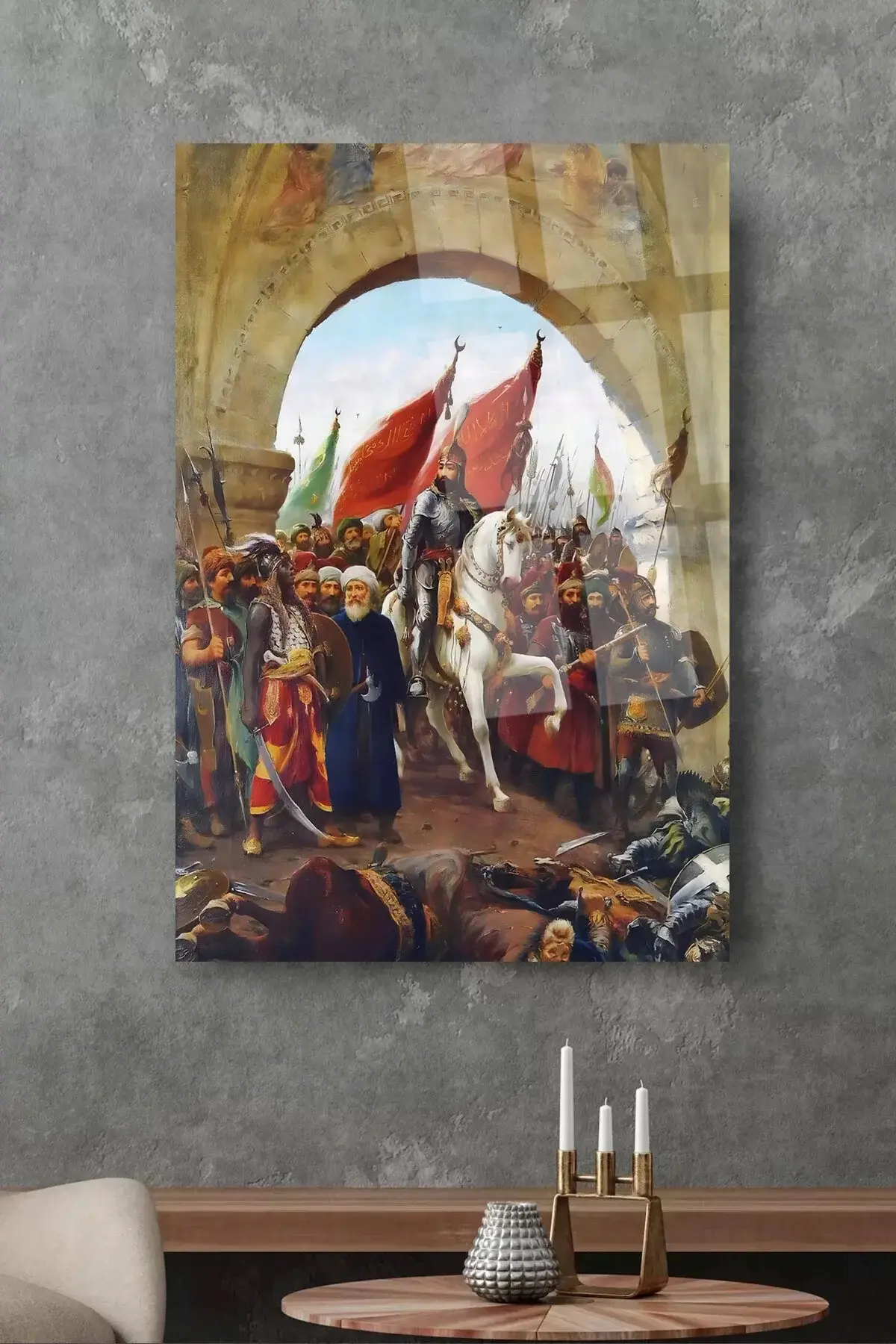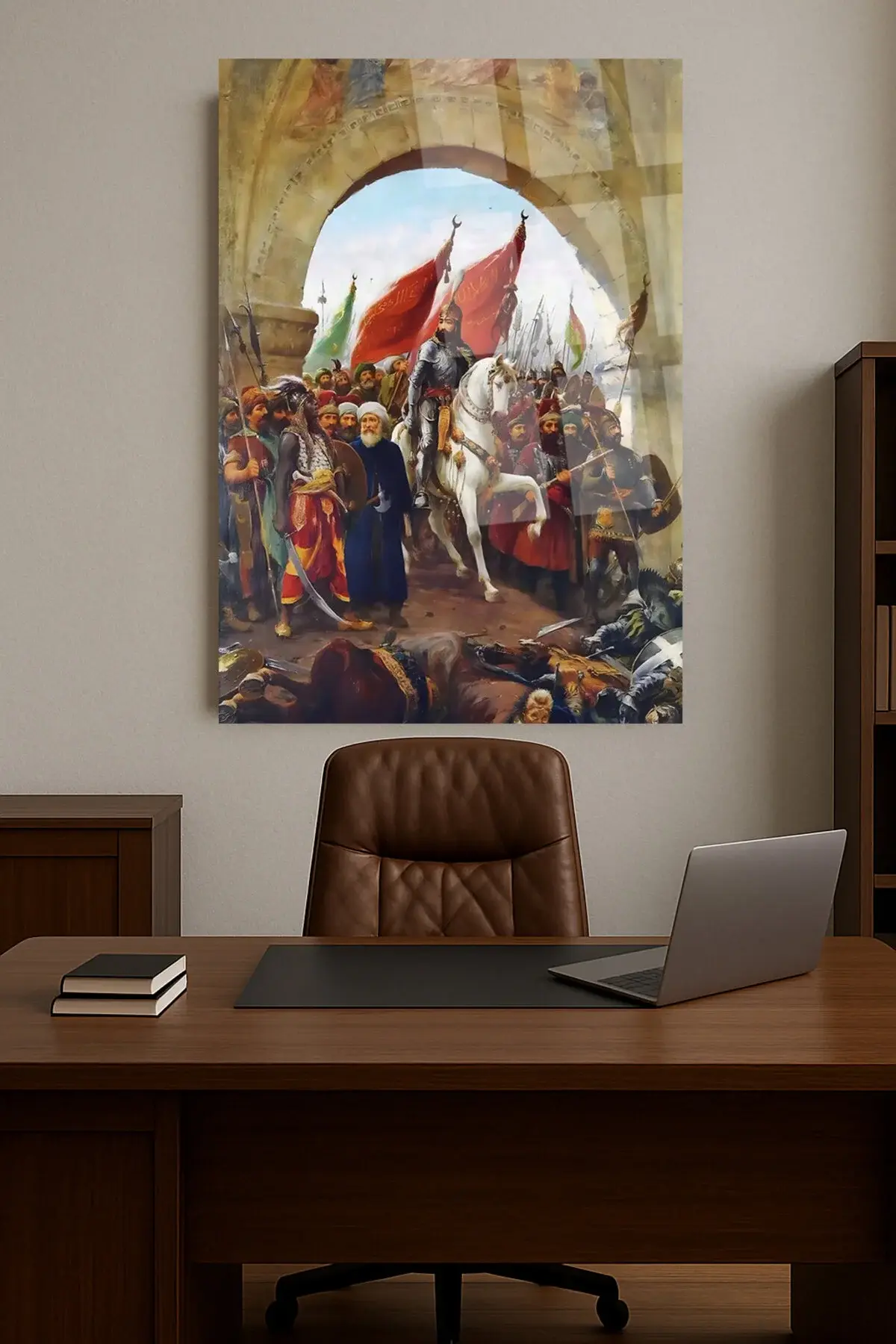 Fatih Sultan Mehmet İstanbul 1453 Modern Cam Tablo – Salon, Yatak Odası, Ofis İçin Şık Duvar Tablosu Kahverengi