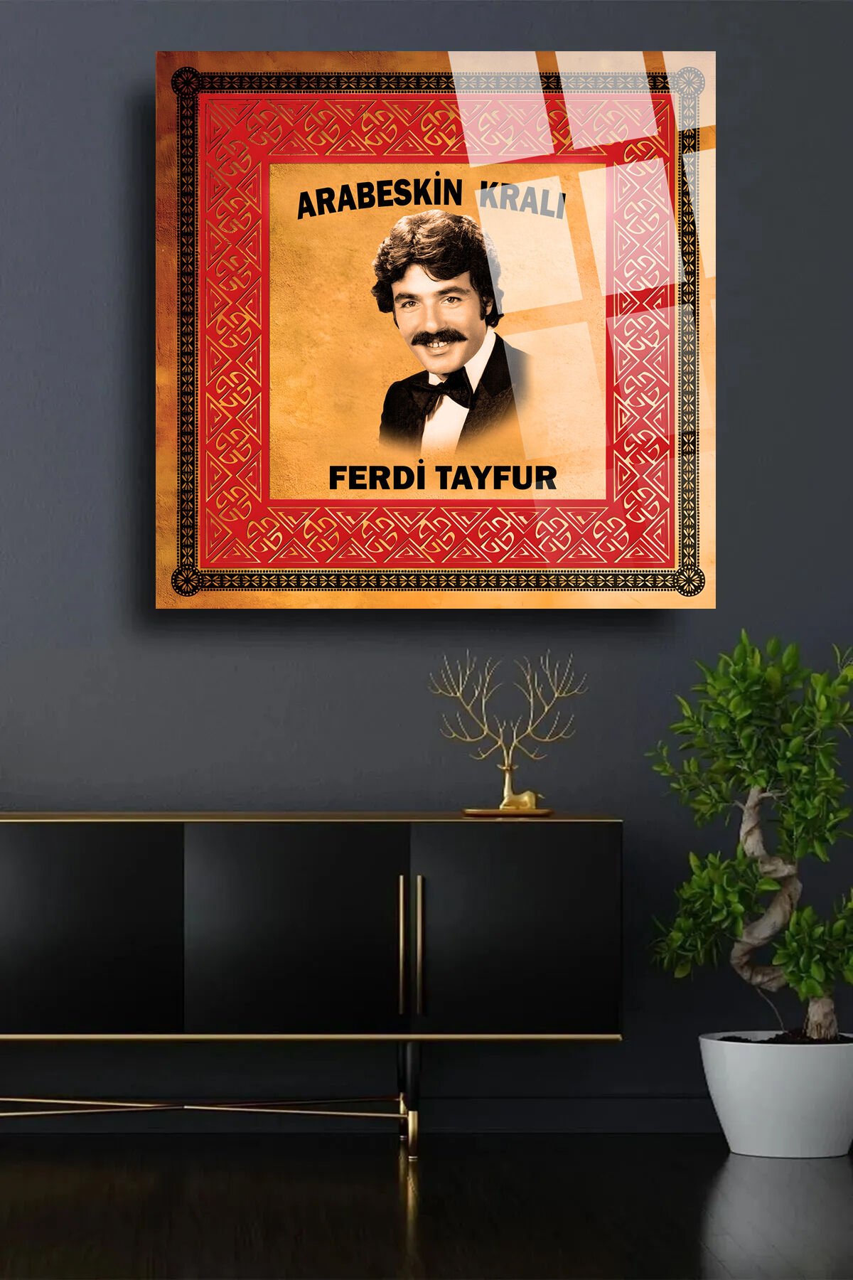 FERDİ TAYFUR KIRILMAZ LÜKS CAM TABLO 4MM EV İŞ YERİ OFİS HEDİYESİ SANATÇI TABLOSU Kırmızı