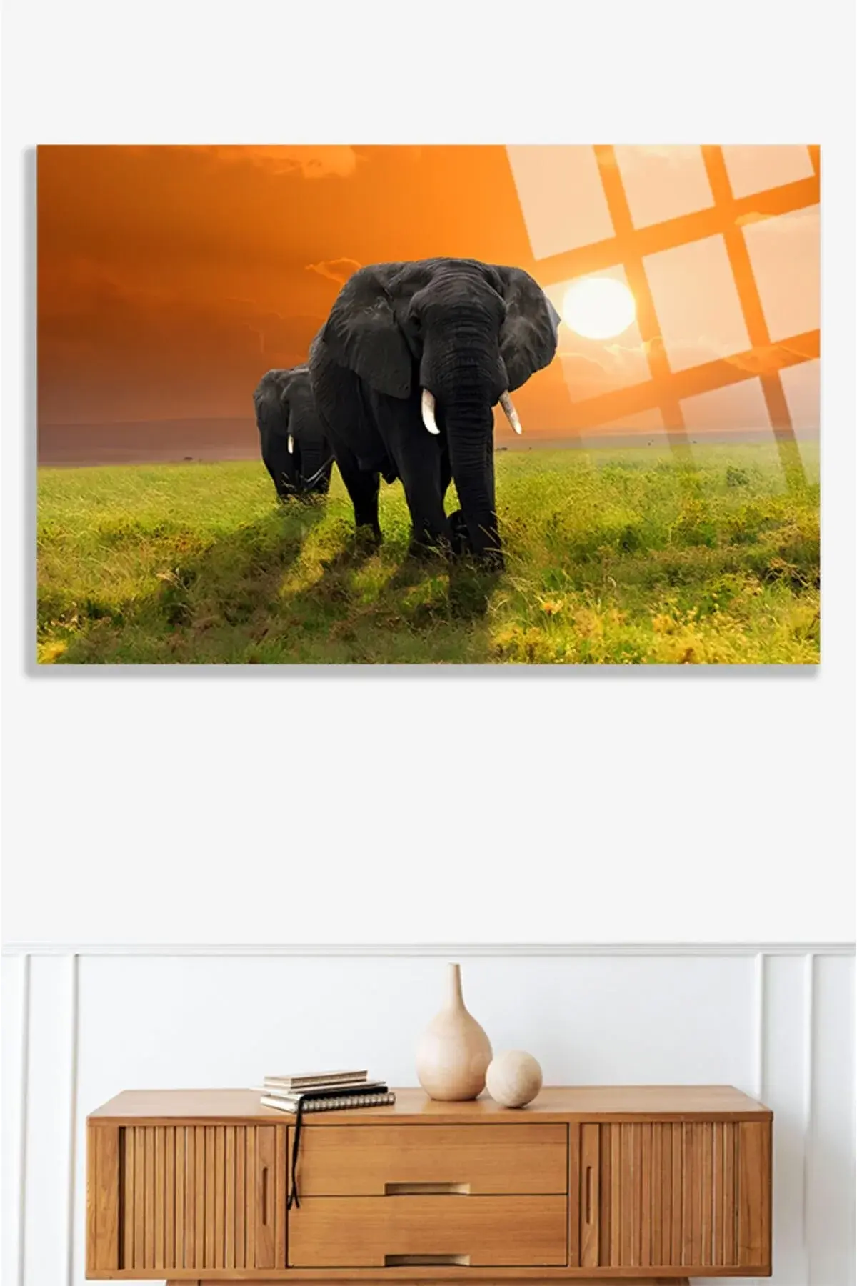 Fil ve Yavrusu Kırılmaz Cam Tablo, Ev Ve Ofis Hediyesi Yüksek Çözünürlüklü 4mm Lüks Tablo
