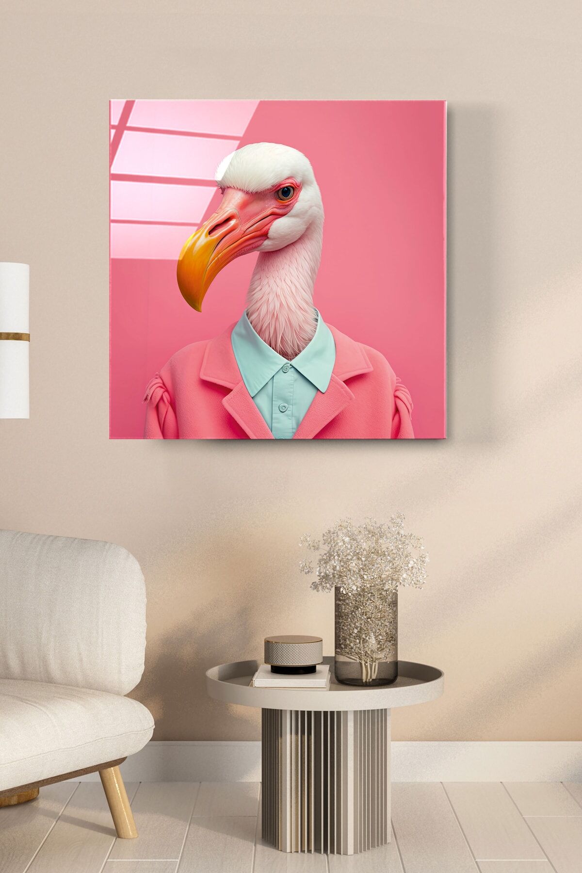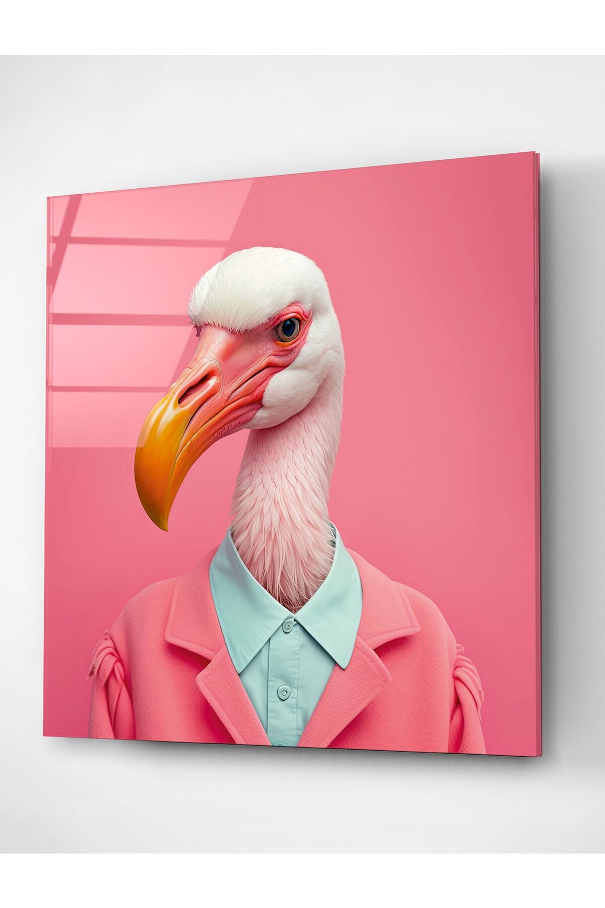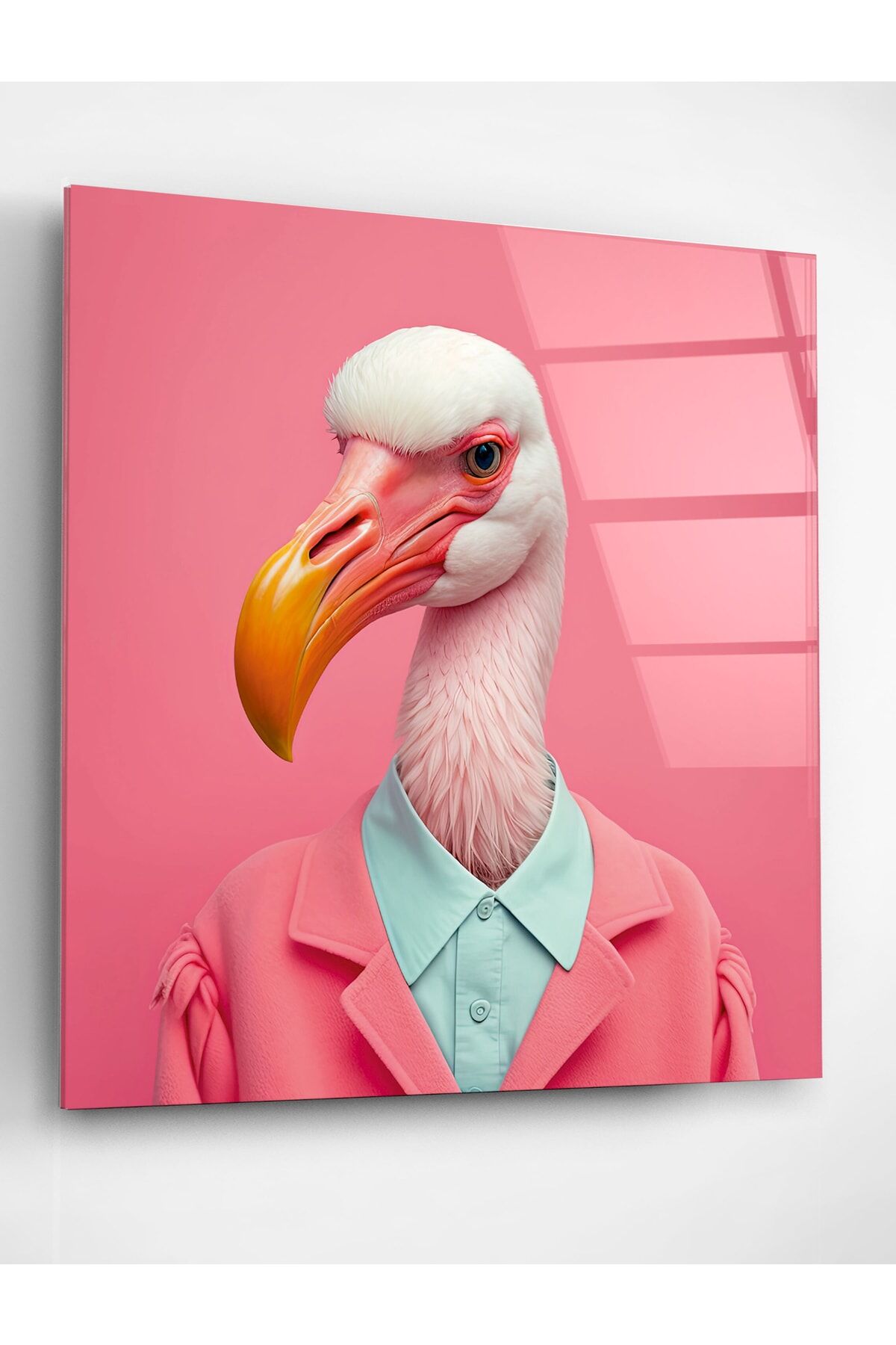 Flamingo Portre Cam Tablo, Dekoratif Cam Tablo