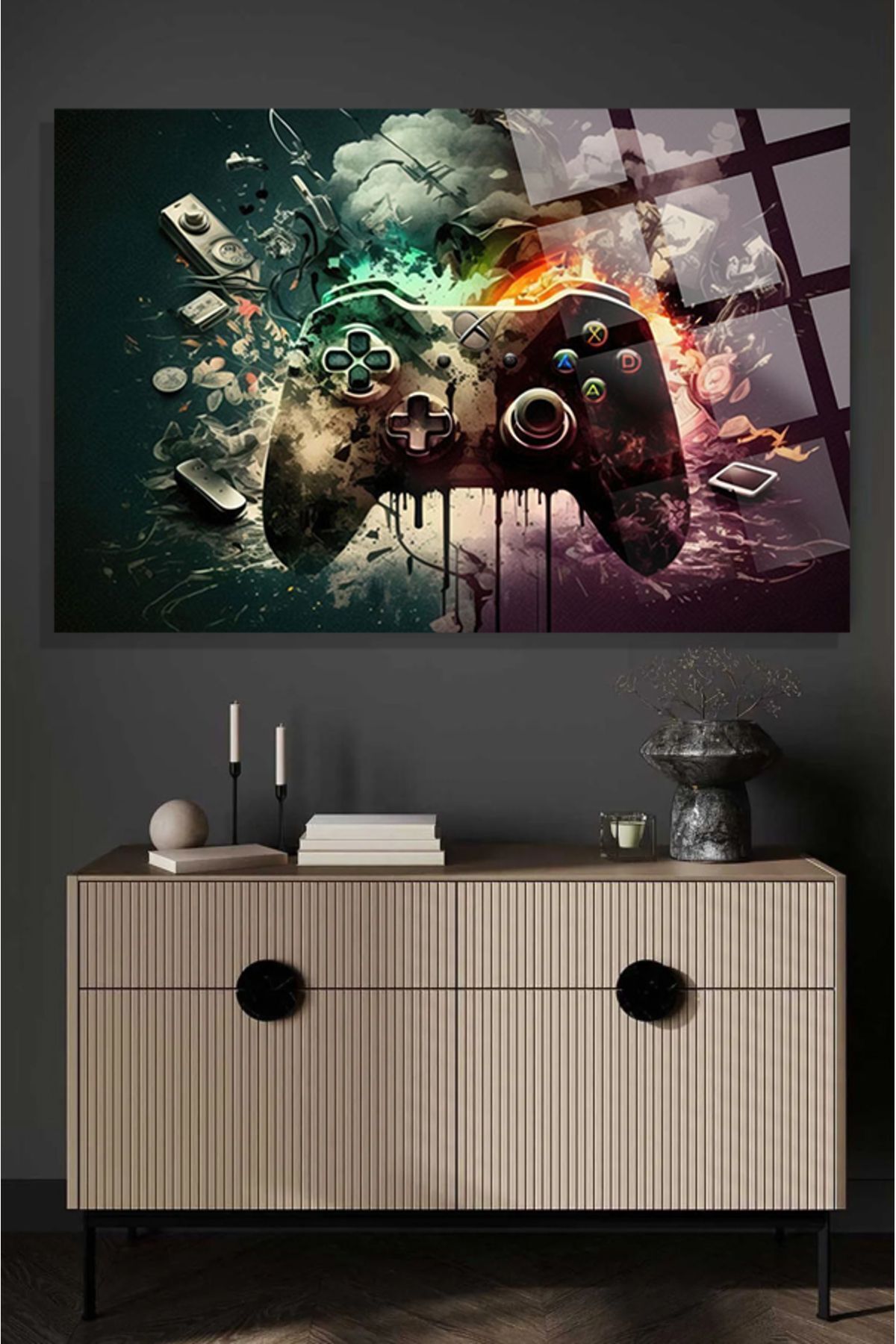 Gamer Odası İçin 4mm Kırılmaz Temperli Yüksek Çözünürlüklü Cam Tablo yaşil
