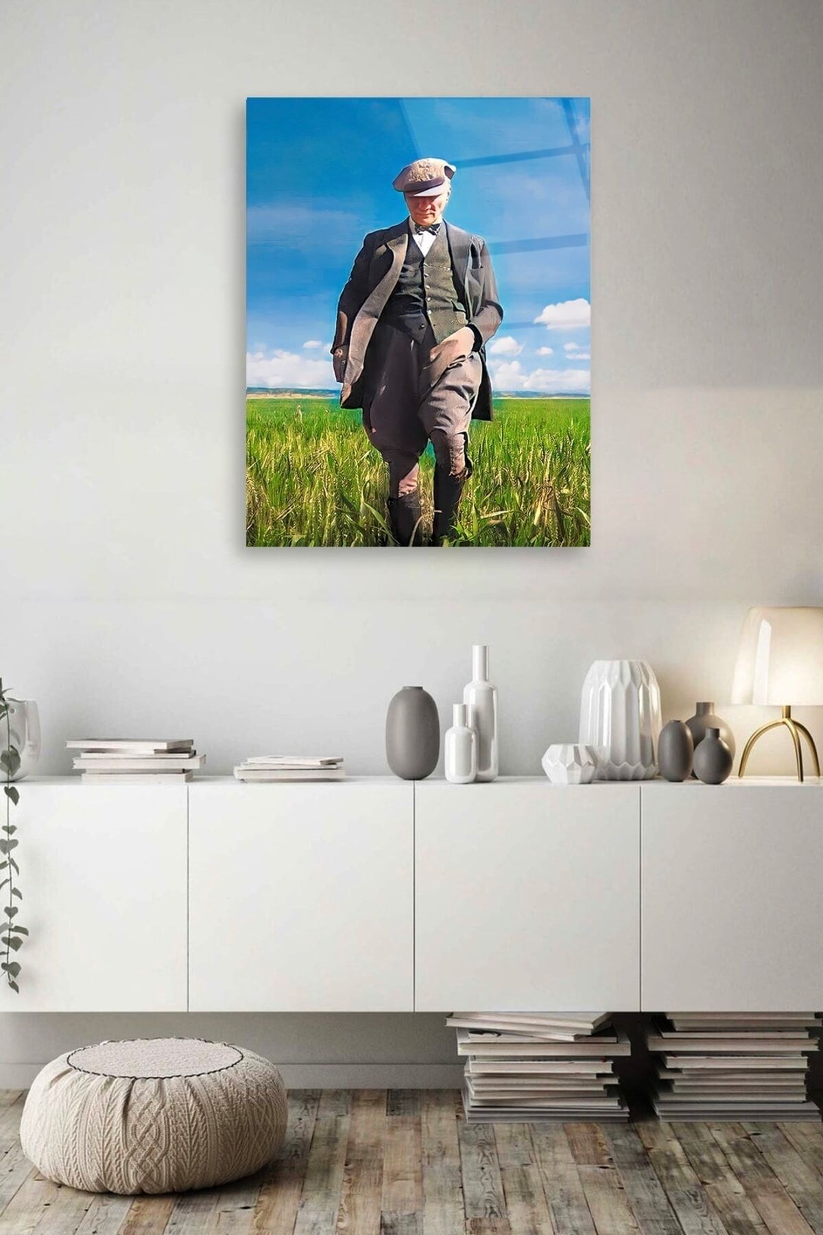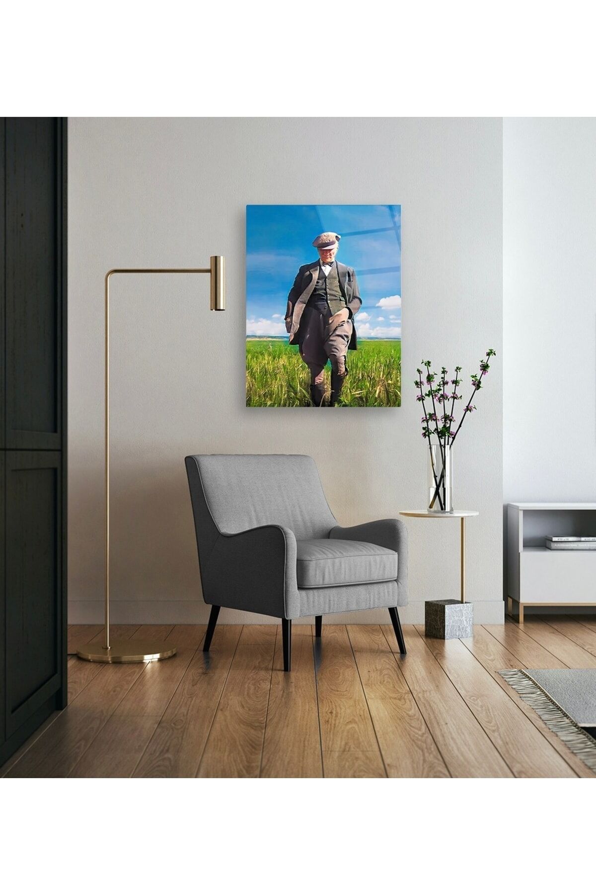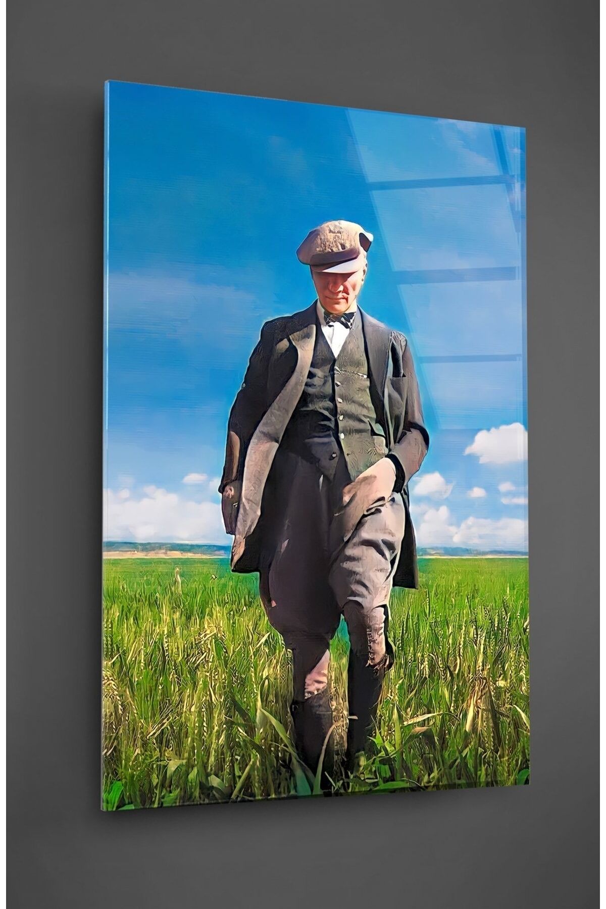 Gazi Mustafa Kemal Atatürk Başak Tarlasında Cam Tablo Renkli