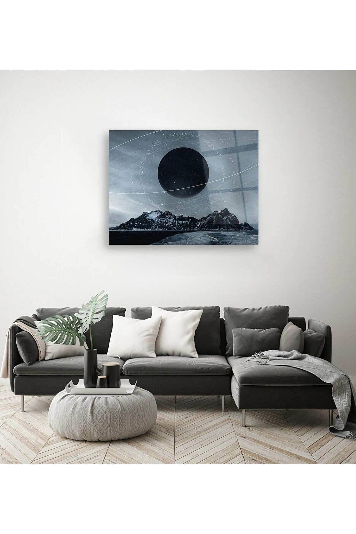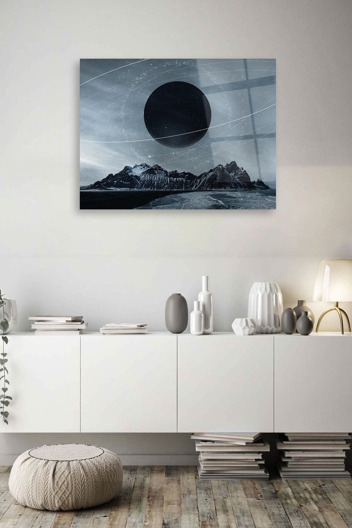 Gece Ay Cam Tablo Renkli