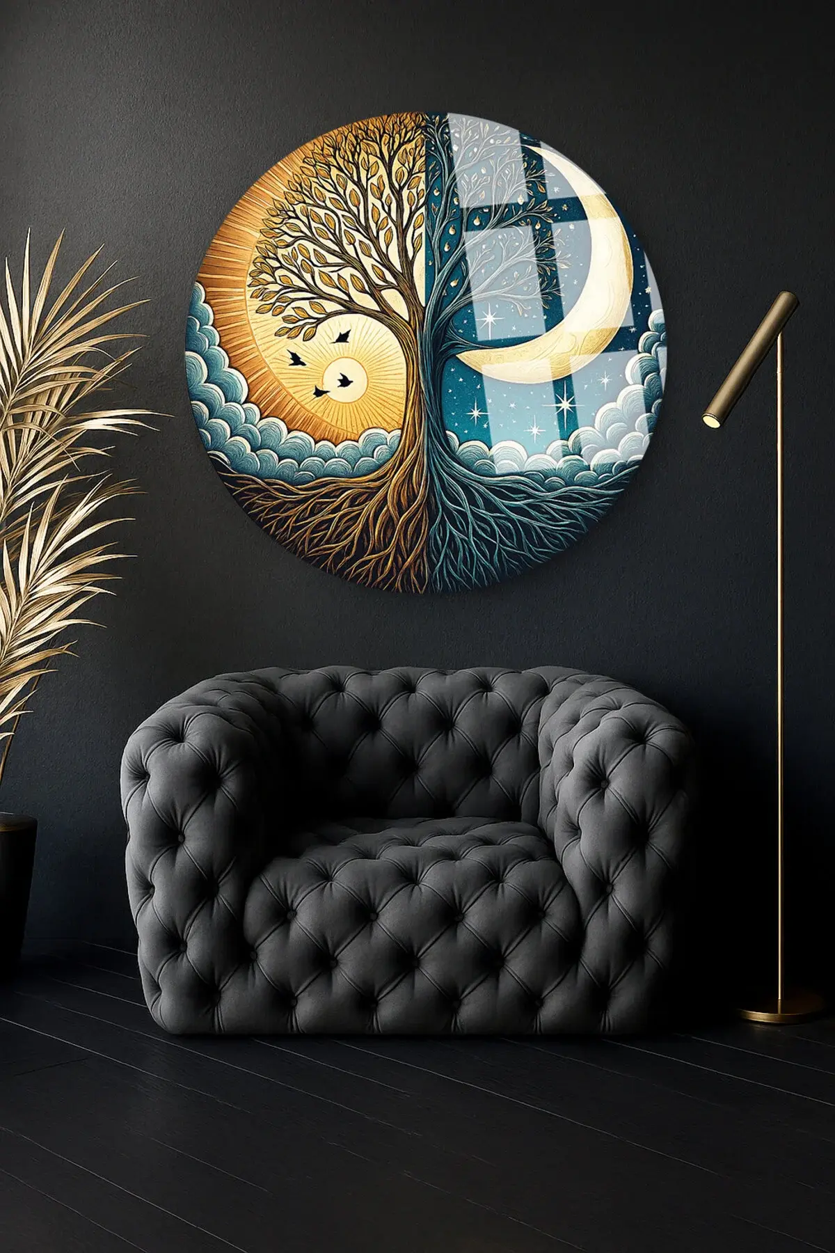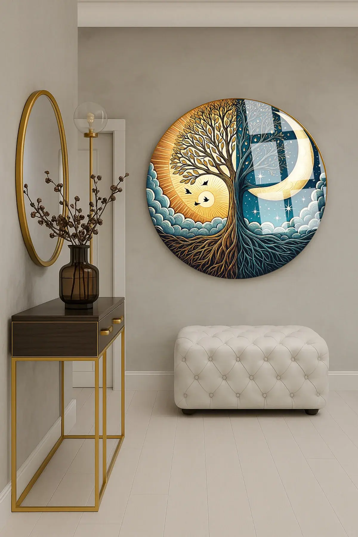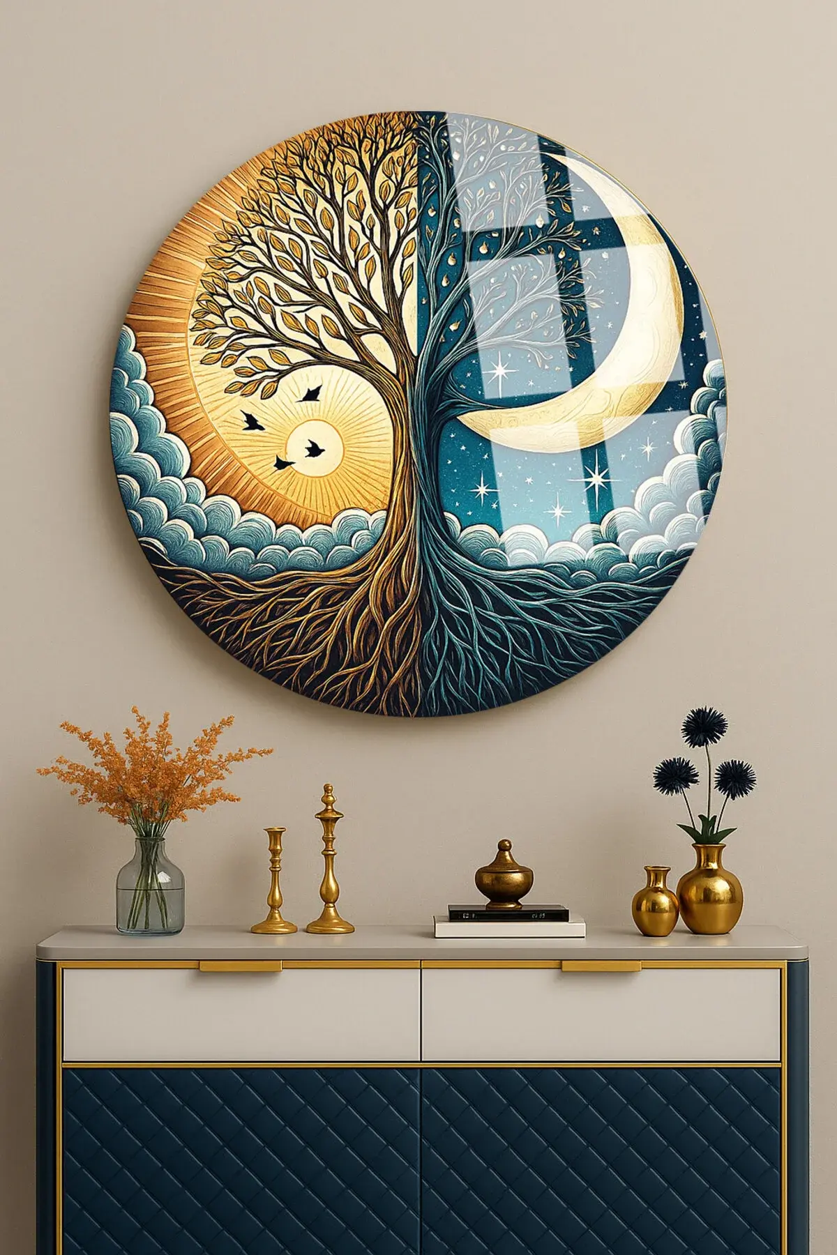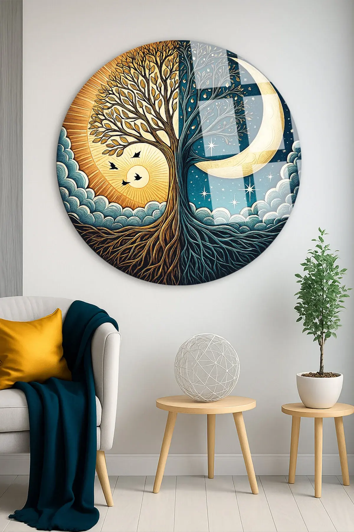 GECE VE GÜNDÜZ TASARIMI MODERN YUVARLAK KIRILMAZ CAM TABLO LÜKS HEDİYE TABLO Lacivert