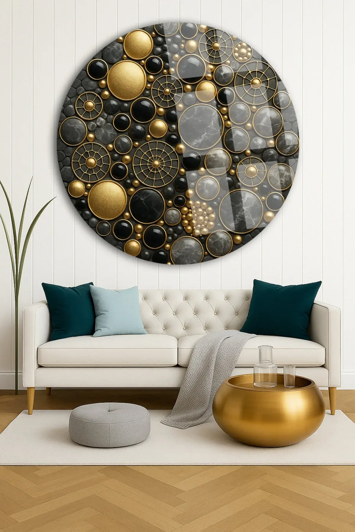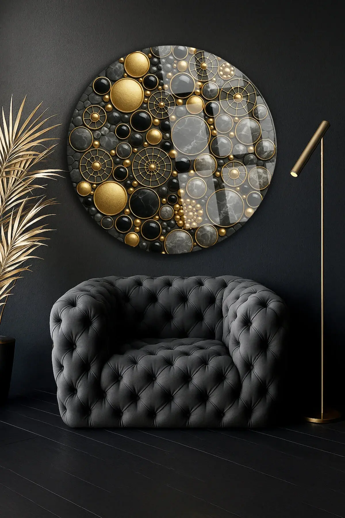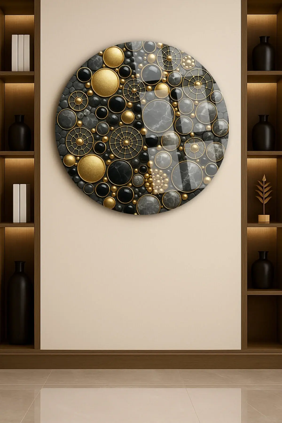 GEOMETRİK MÜCEVHERLER TASARIMI MODERN TABLO KIRILMAZ LÜKS CAM TABLO YUVARLAK CAM TABLO EV HEDİYESİ Siyah