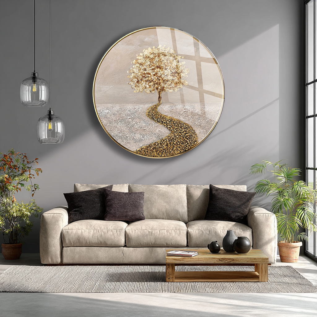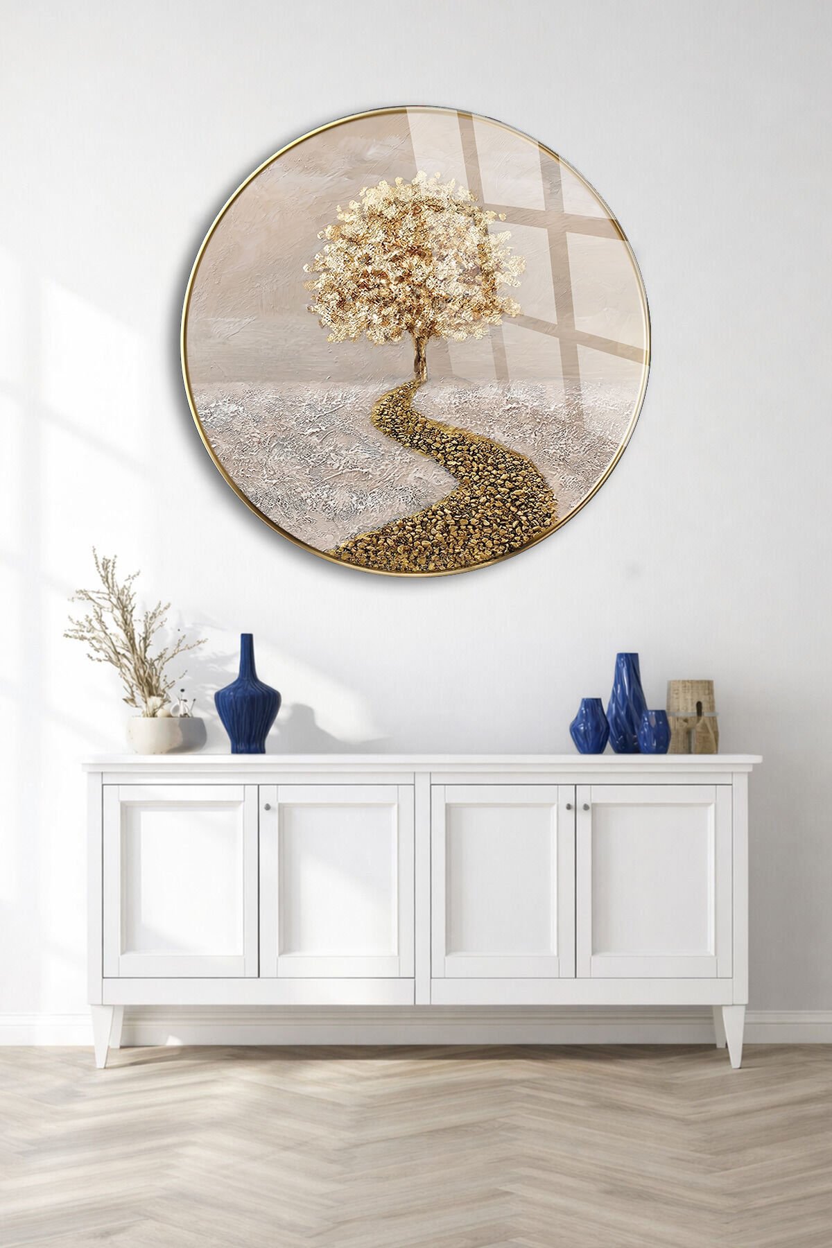 GERÇEK KIRILMAZ CAM TABLO YUVARLAK HAYAT AĞACI ALTIN YOL SANATSAL DUVAR DEKORU EV OFİS HEDİYESİ