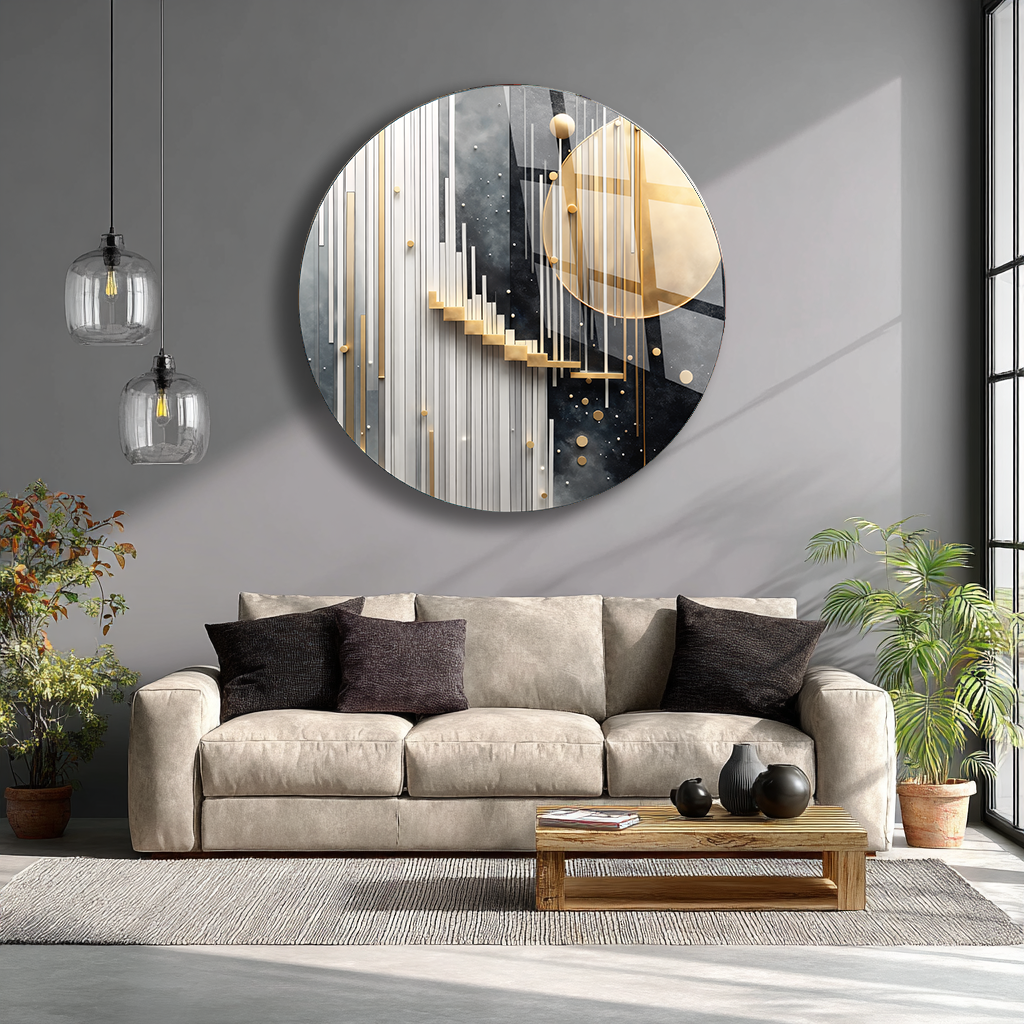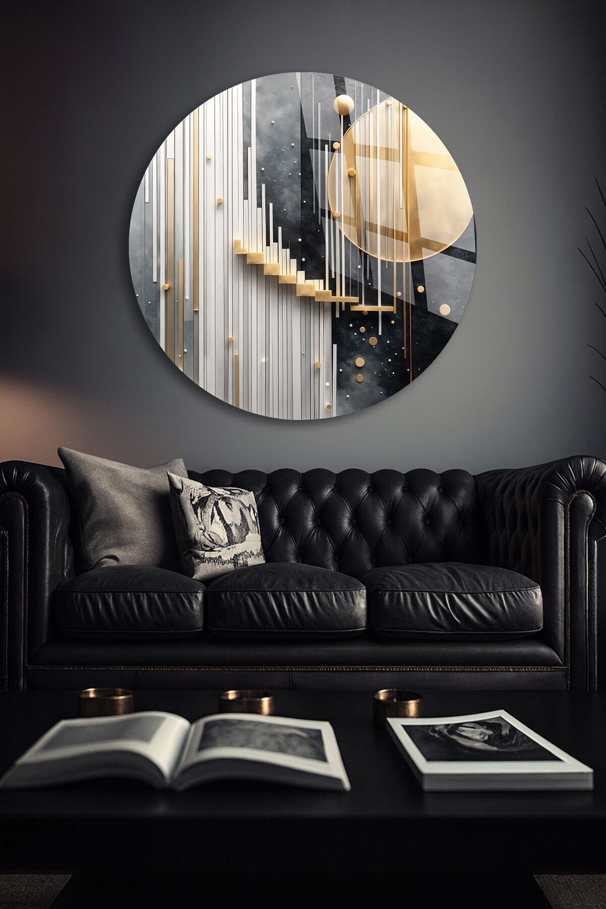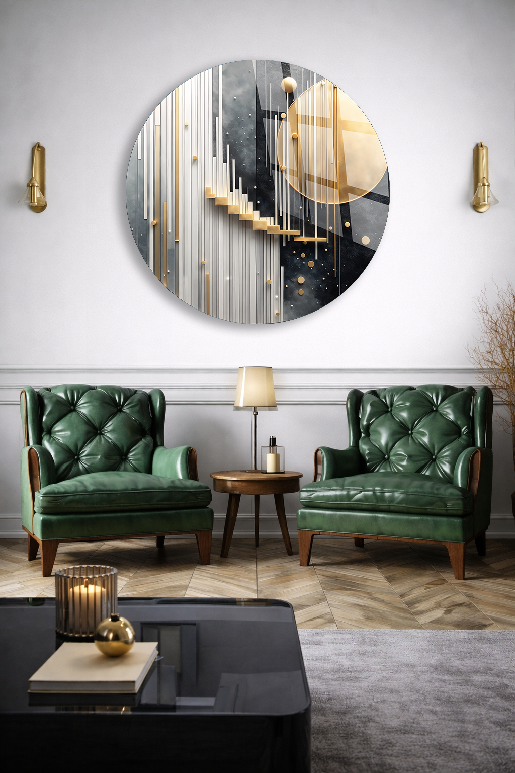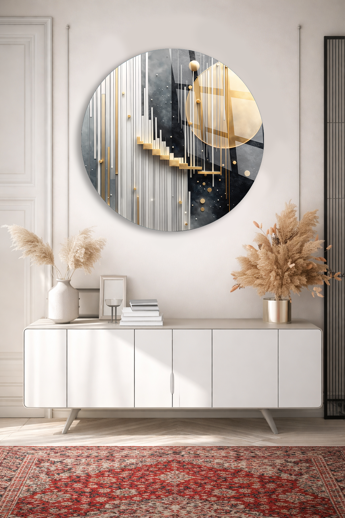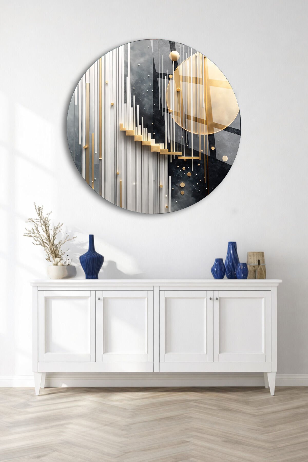 GERÇEK KIRILMAZ CAM TABLO YUVARLAK SOYUT GEOMETRİK SANATSAL MODERN DUVAR DEKORU EV OFİS HEDİYESİ