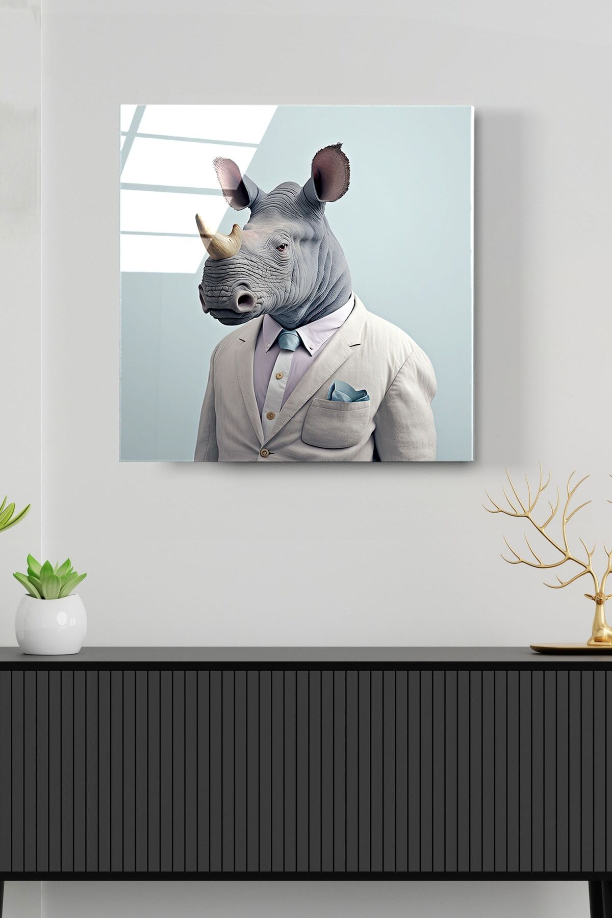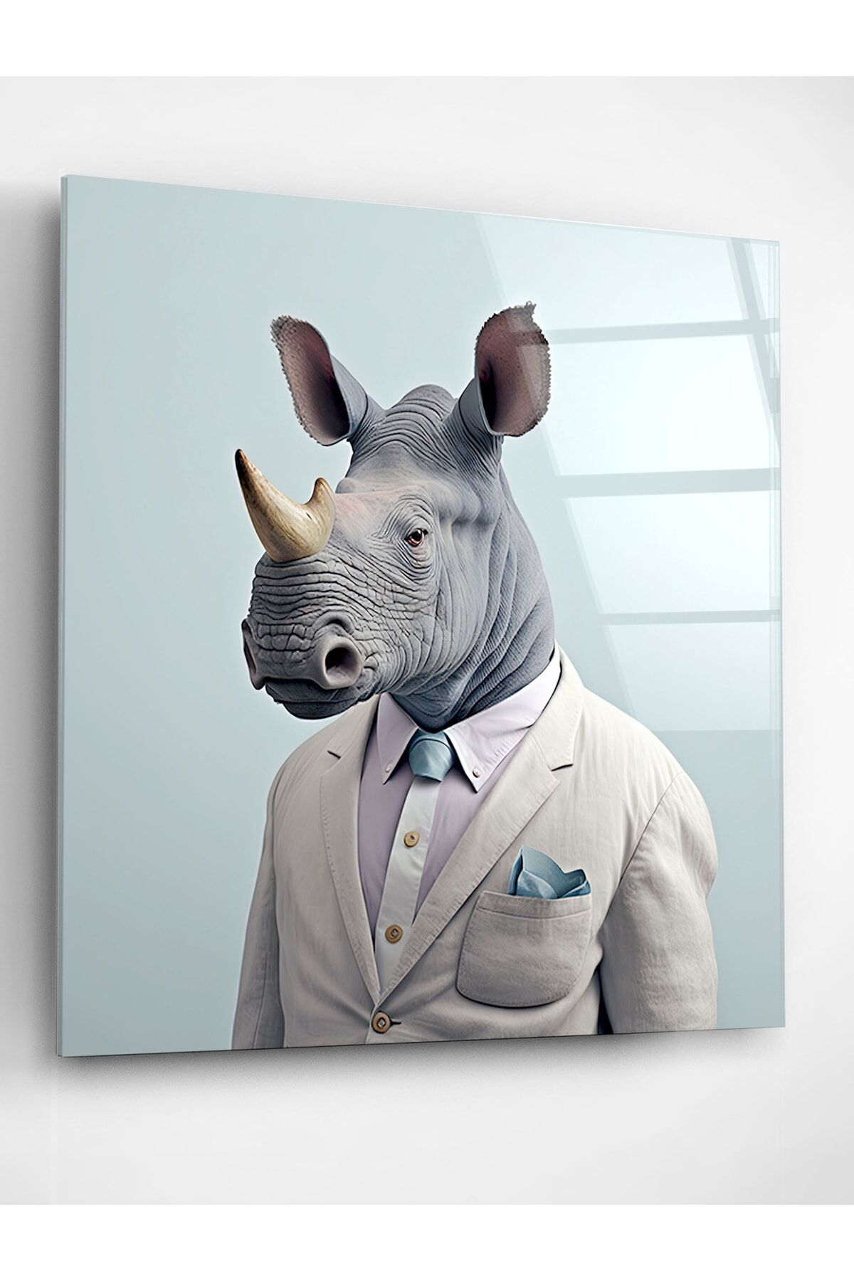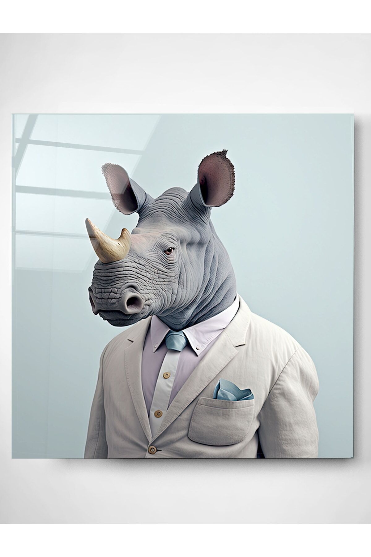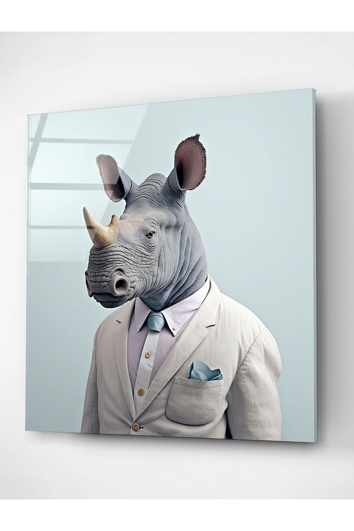 Gergedan Portre Cam Tablo, Dekoratif Cam Tablo