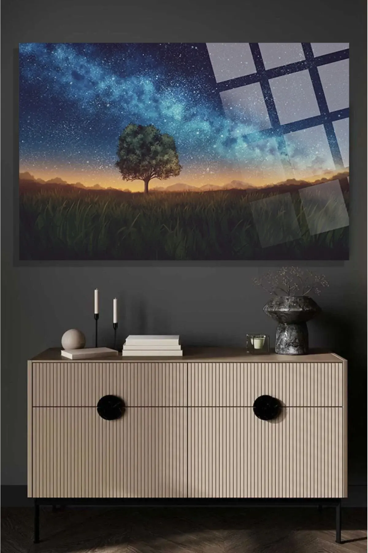 Gökyüzü Ağaç Manzaralı Uv Baskılı Kırılmaz Cam Tablo, Ev Ve Ofis Yüksek Çözünürlüklü 4mm Cam Tablo