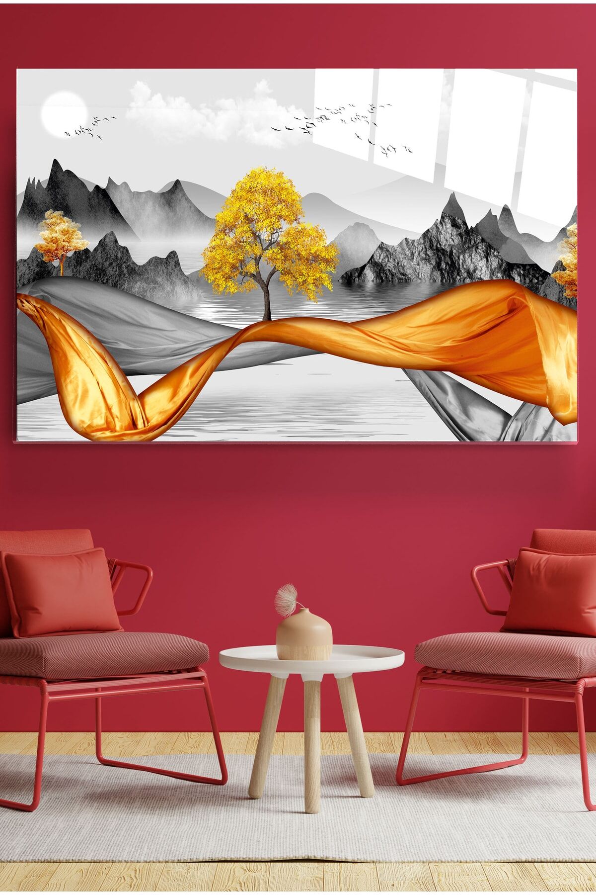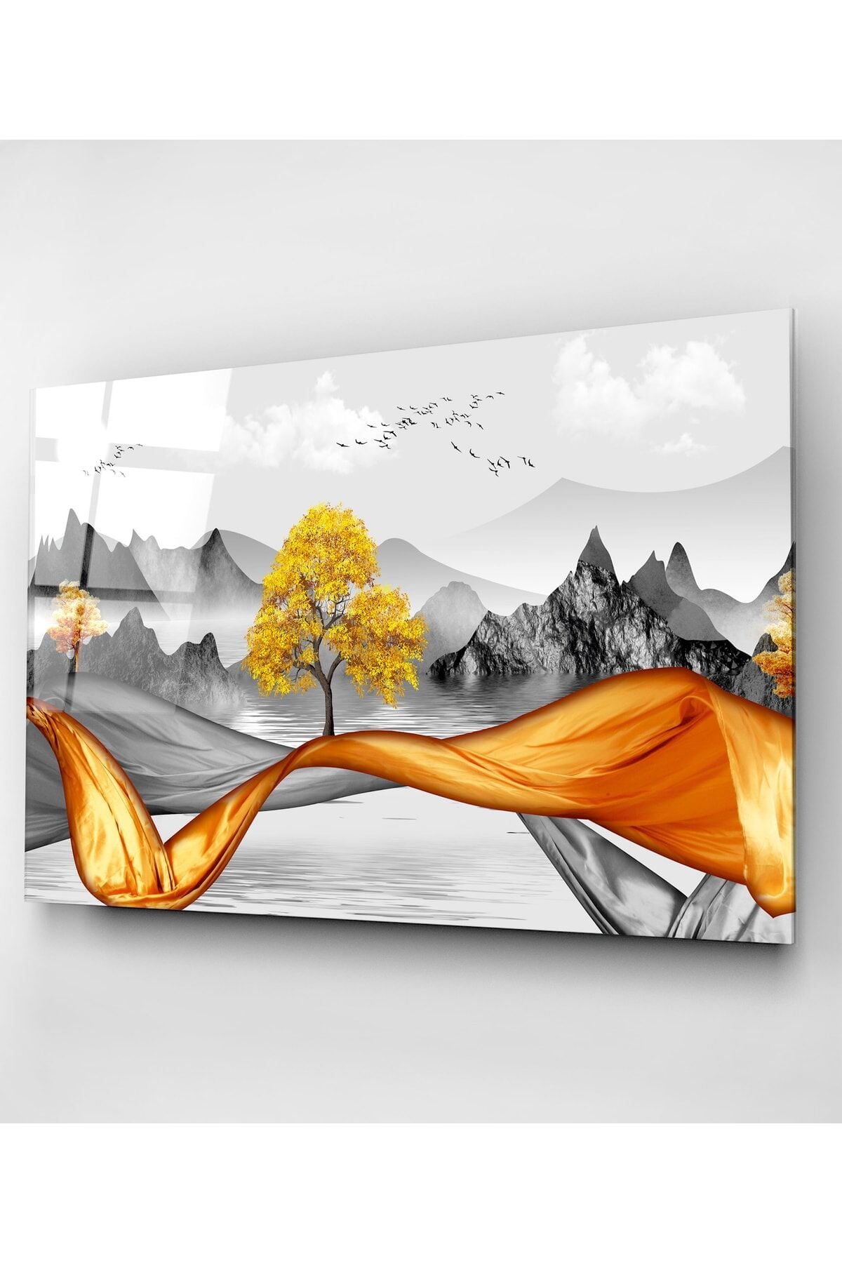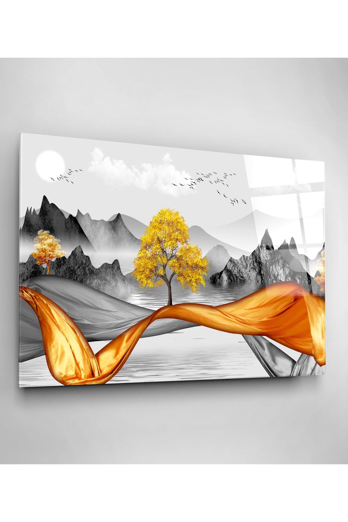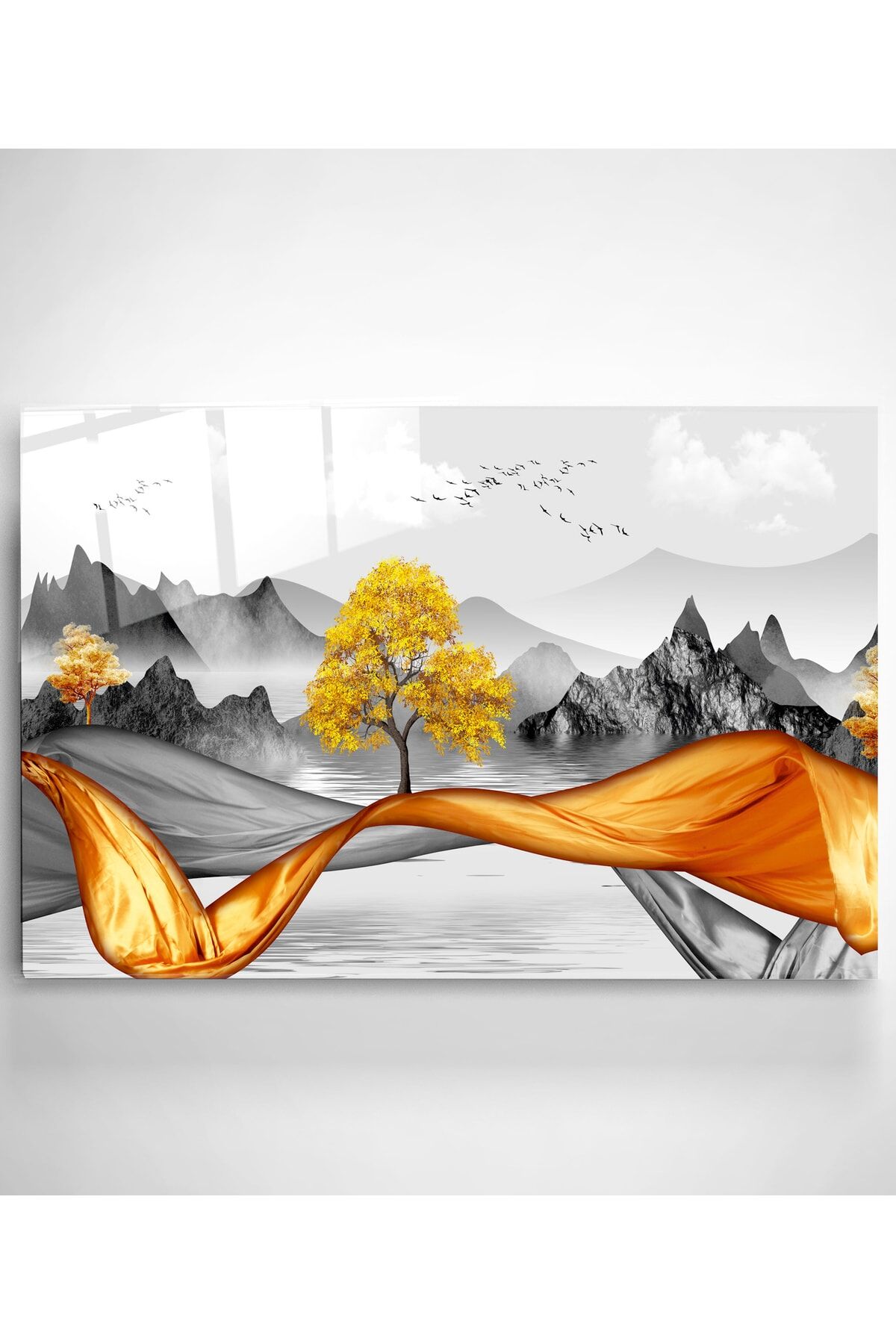Gold Ağaç Cam Tablo, Dekoratif Cam Tablo
