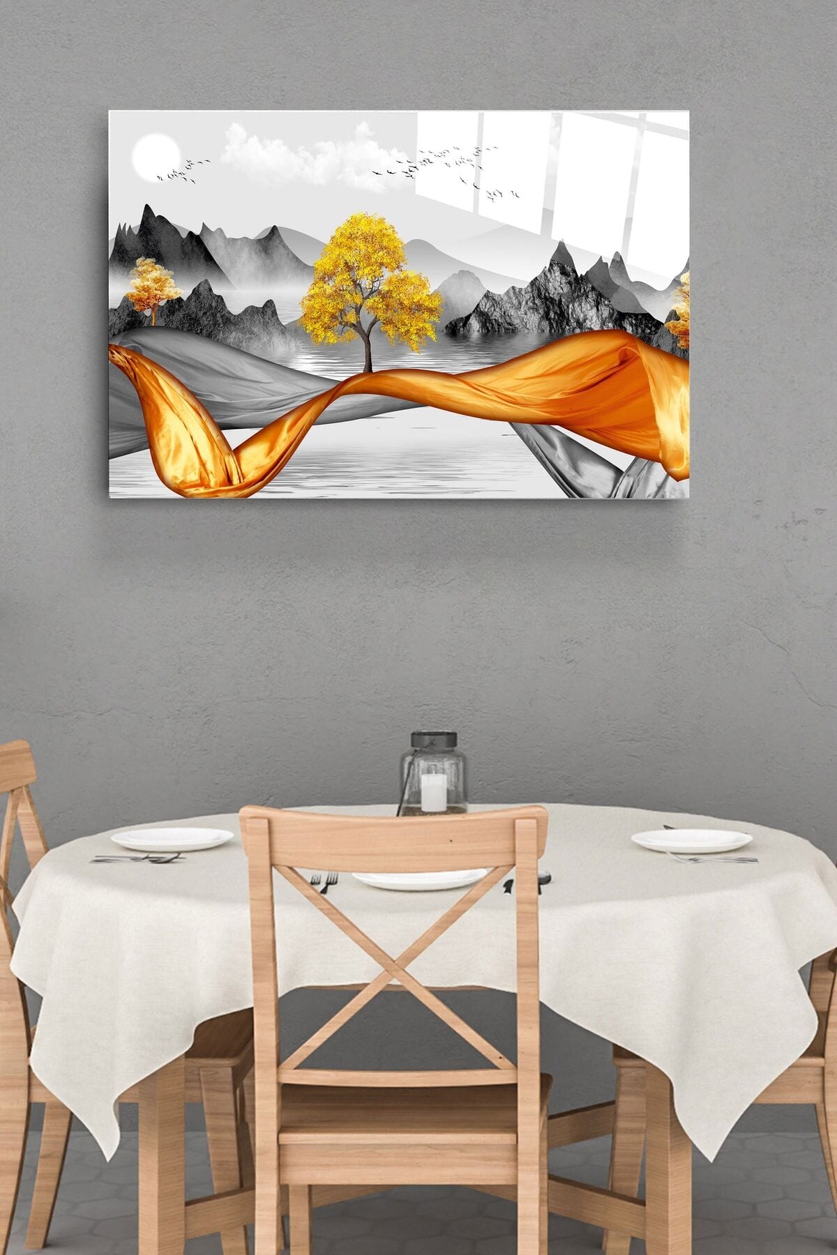 Cam tablolarımız 4 mm kalınlığında temper işlemi (ısıl işlem) görmüştür.; Kenarları rodajlanmış (kesiciliği giderilmiş) yüksek kaliteli düz camlardan oluşmaktadır.; Normal camlara göre kırılmaya 10 kat daha dayanıklıdır.; Gönderilirken özel koruma aparat ve ambalajları ile gönderilmektedir.; ; Tarafımızca hazırlanan özel tasarımlar doğrudan cam yüzeyine uv baskı tekniğiyle yüksek çözünürlüklü makinalarımız tarafından uygulanır.; Bu nedenle yüksek kaliteli,mükemmel bir görüntü derinliği sağlar.; Herhangi bir medyaya(folyo,kağıt v.; b.; ) baskı yapılmış görselin cam yüzeyine yapıştırılması şeklinde değildir.; Görsellerimiz camın arka yüzeyine doğrudan uv cam boyası kullanılarak basılır ve özel koruma boyası ile arka yüzey kapatılır.; Baskı cam ile arka koruma boyası arasında kalır.; Tasarımları ön yüzeyden camın parlaklığı ve şıklığı ile görürsünüz.; Cam tablolar zamanla solmazlar ve renkler canlılığını hiç kaybetmez.; ; Özel tasarım cam tablolar duvar dekorasyonunda yeni bir sayfa açmaktadır.; Özellikle ev ve ofis dekorasyonunda büyük tablolar duvarlarda çok şık bir görünüm sağlarlar.; Dekoratif ve zarif tablolar ev ve ofis duvarlarınıza estetik bir hava katar.; ; Tablolarımız sizler için özel olarak tasarlanmıştır.; ; Temizliği son derece kolay olan cam tablolarımızı,herhangi bir kimyasal ürünle veya nemli bez ile gönül rahatlığıyla silebilirsiniz.; Özel askı aparatı sayesinde ürünlerimizin duvardan kazara düşme olasılığı çok düşüktür.; Tek çivi ile kolayca duvara monte edebilirsiniz.; Ürün asıldığında duvardan 2 cm önde durmaktadır.; ; Kargo esnasında yaşanacak her türlü olumsuzluk(kırılma v.; b.; ) firmamıza aittir.; Kırılma olasılığı %1 in altındadır.; Özel çerçeveli kargo metodumuz Türkiyede yalnızca tarafımıza aittir bu sayede kırılma yaşanmamaktadır.; En ufak bir sorunda ise sizlere sağlam şekilde ulaşıncaya kadar tekrar gönderilir.; ; Üretici firma olarak özel tasarımlarıyla camı birleştirerek yaşam alanlarınıza şık bir görünüm ve modern bir hava katmayı amaç edinilmiştir.Kişiye özel Tablo seçeneğimiz de mevcuttur kişiye özel cam tablolalar için iletişime geçiniz.