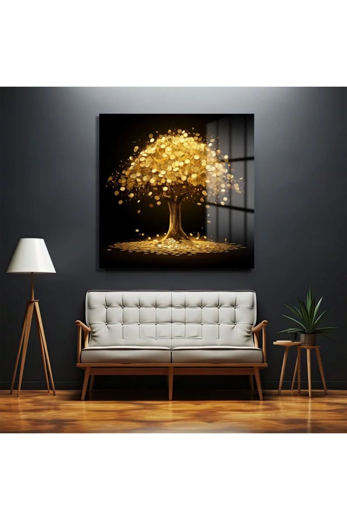 GOLD AĞAÇ ULTRA YÜKSEK ÇÖZÜNÜRLÜK KARE CAM TABLO EV İŞ YERİ OFİS HEDİYESİ SOYUT TASARIM TABLO