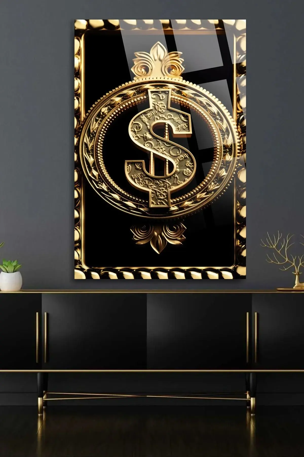 Gold Altın Dolar Uv Baskılı Kırılmaz Cam Tablo, Ev Ve Ofis Yüksek Çözünürlüklü 4mm Cam Tablo