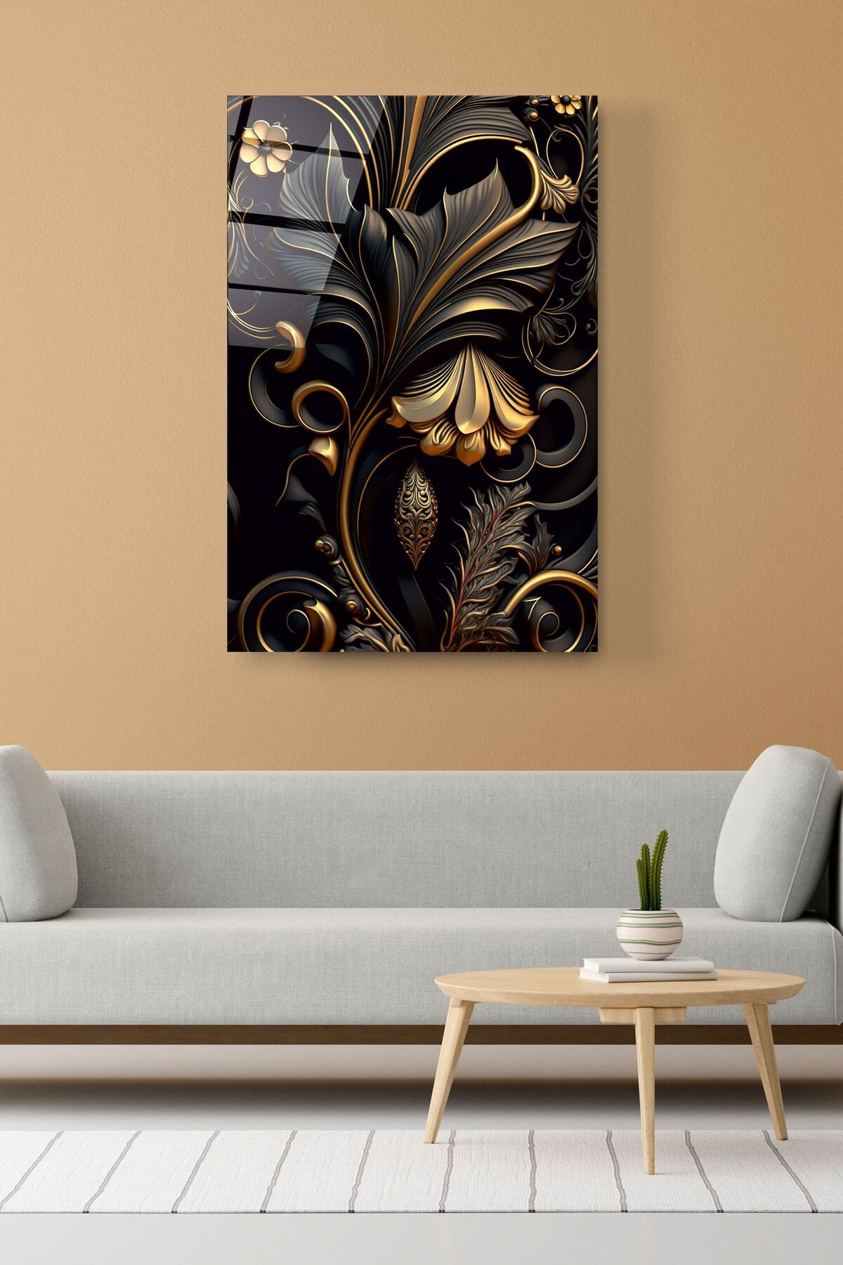 Gold Detay Soyut Cam Tablo, Dekoratif Cam Tablo