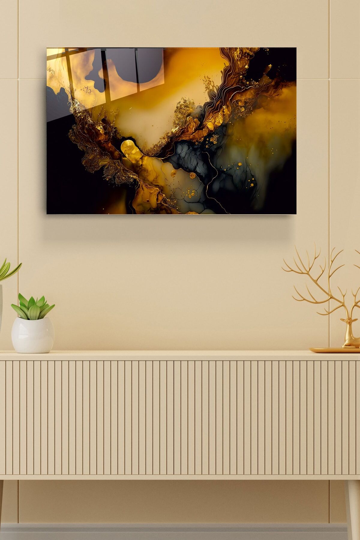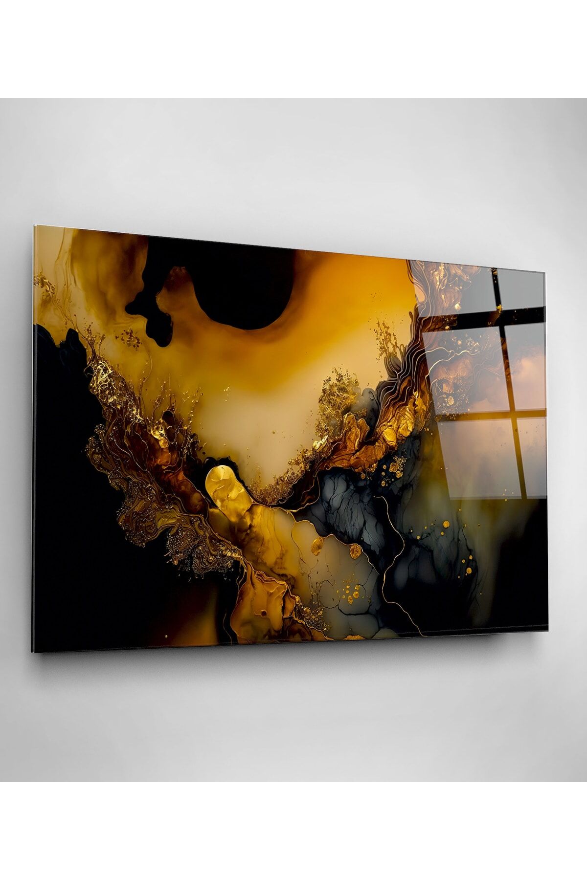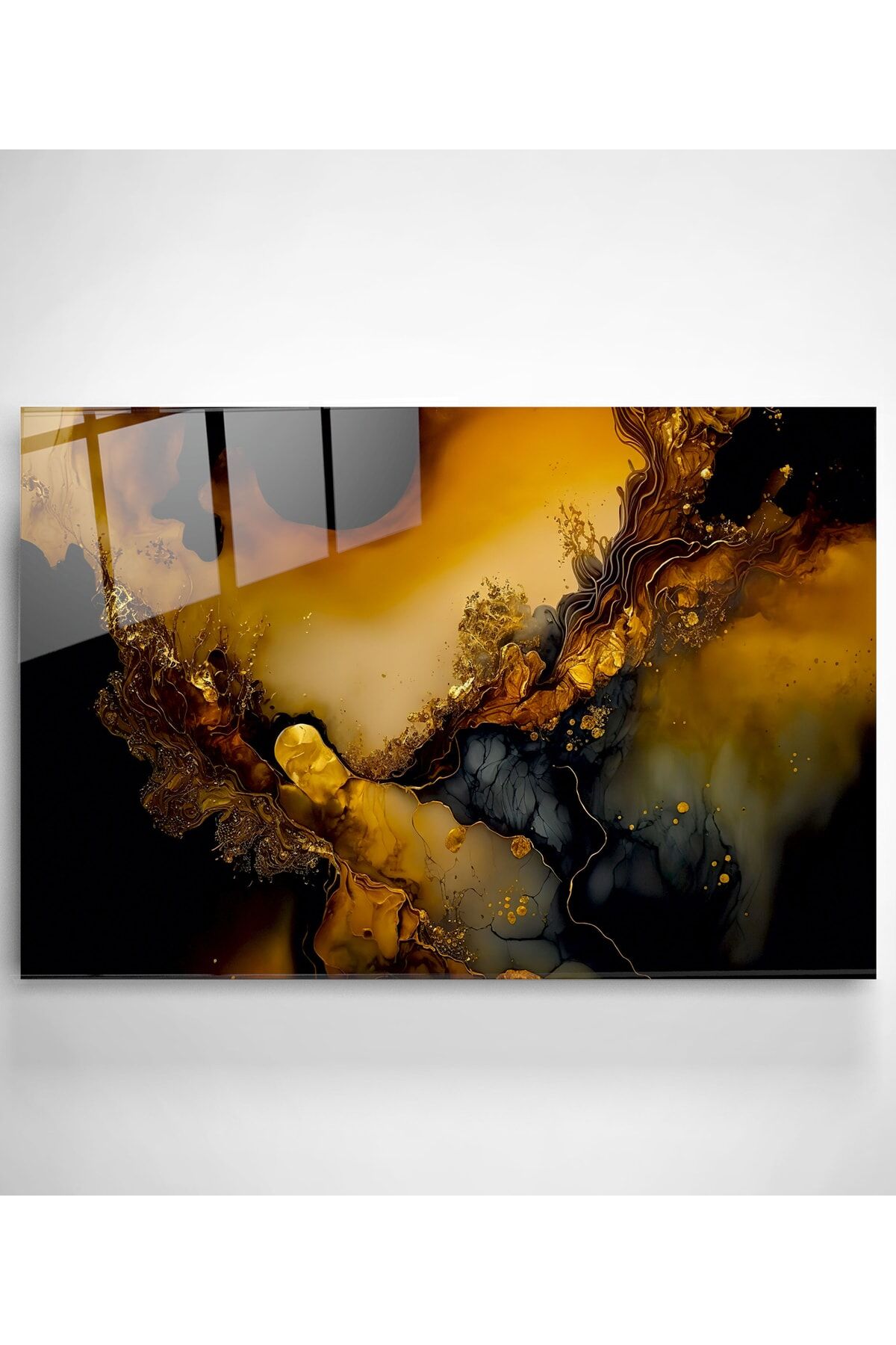 Gold Detay Soyut Cam Tablo, Dekoratif Cam Tablo