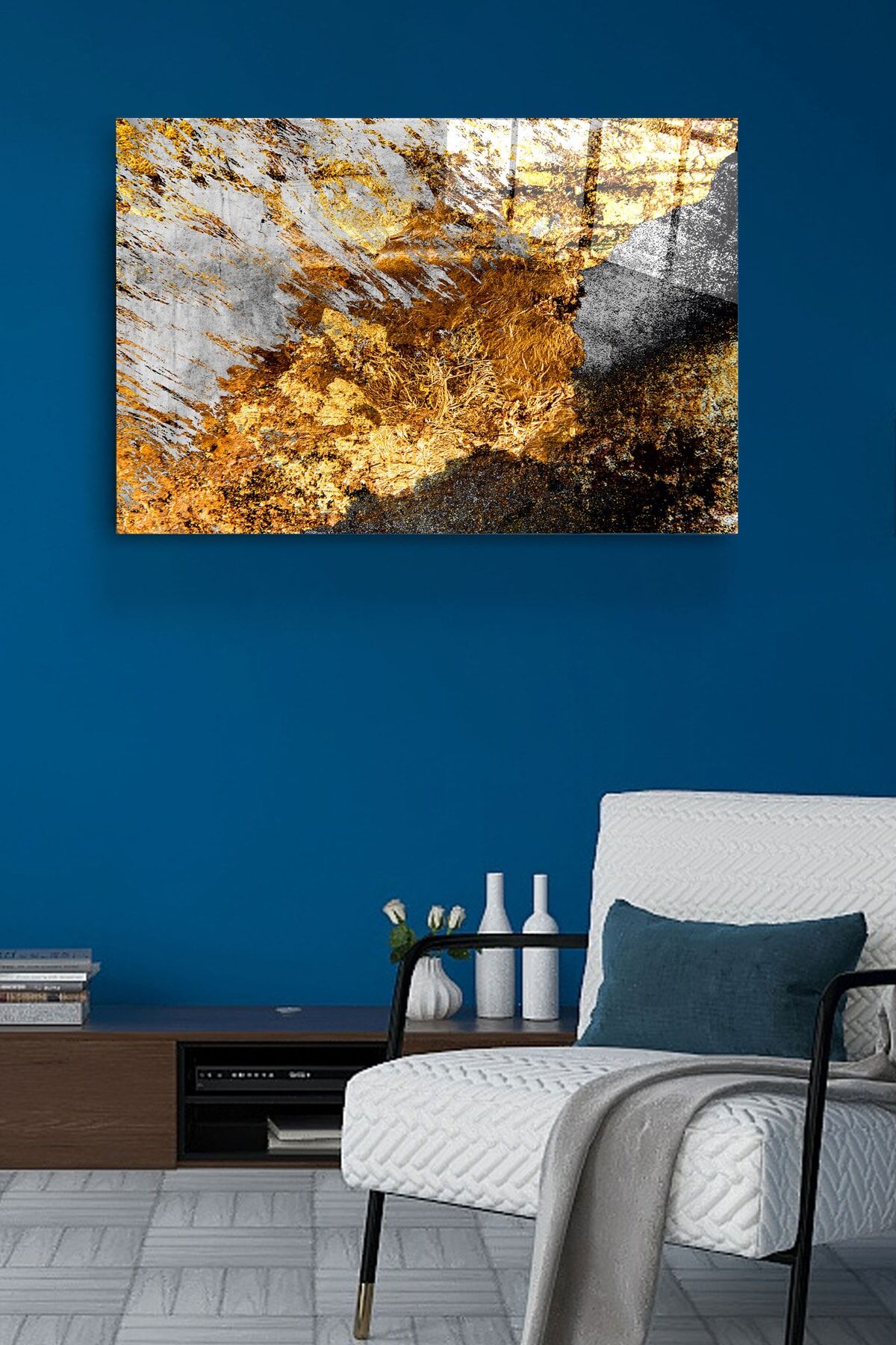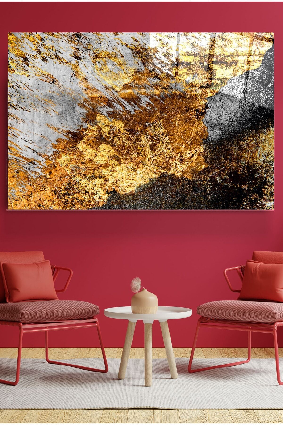 Gold Detay Soyut Cam Tablo, Dekoratif Cam Tablo
