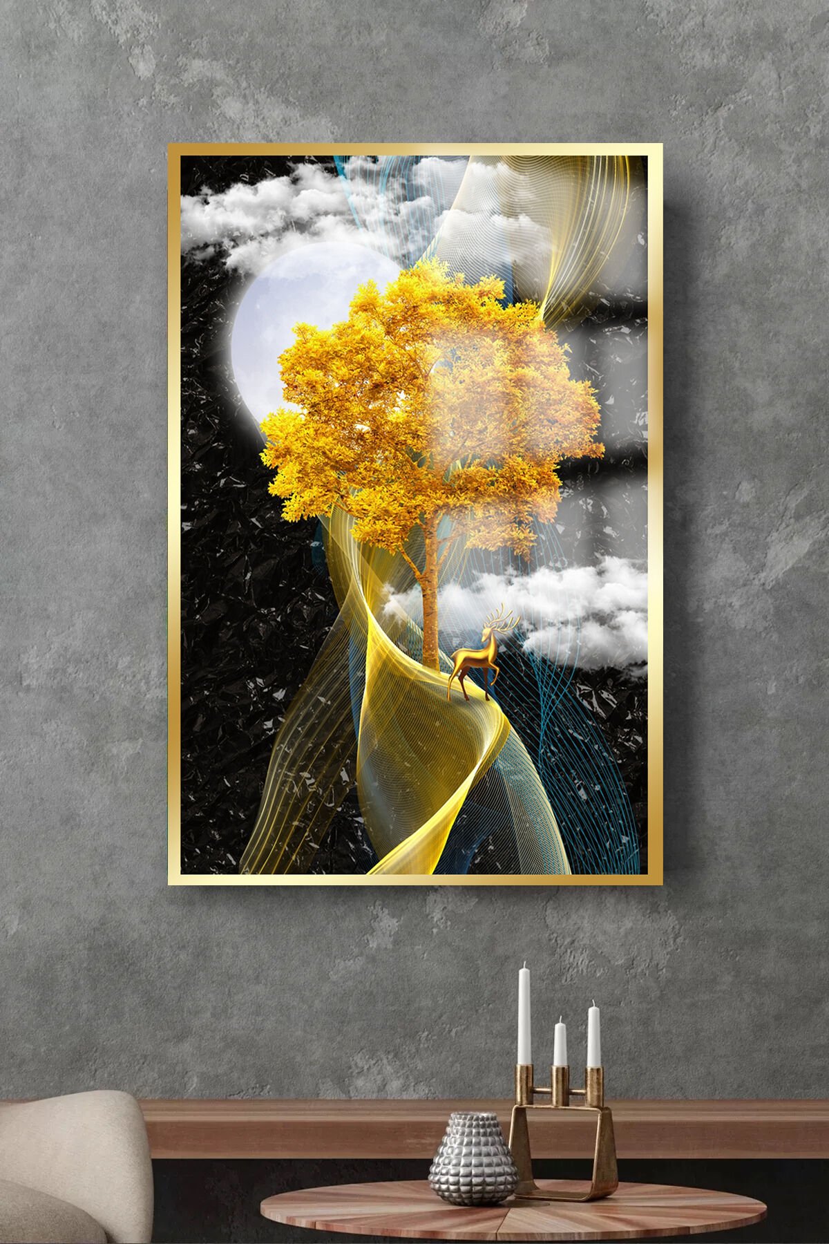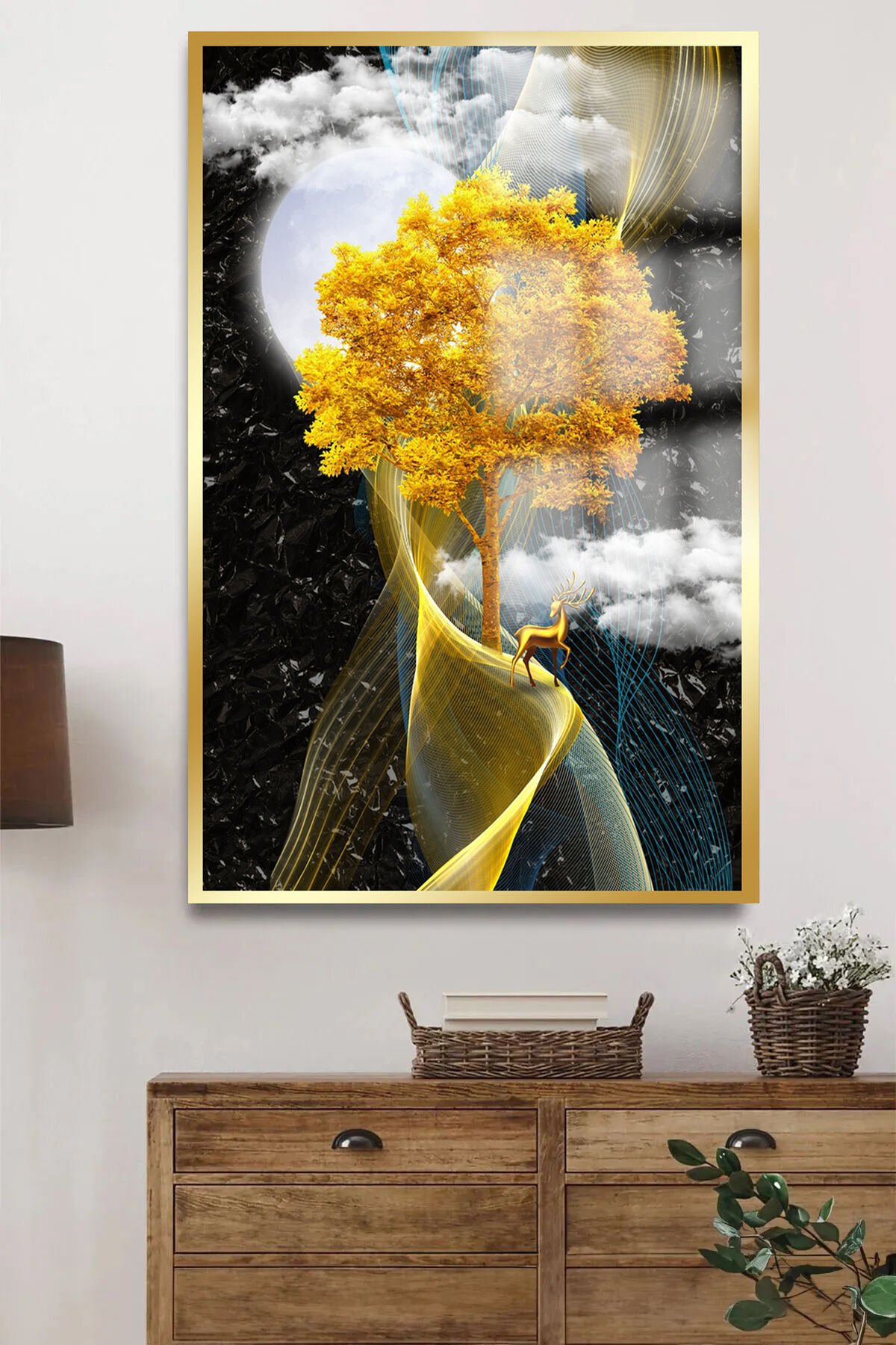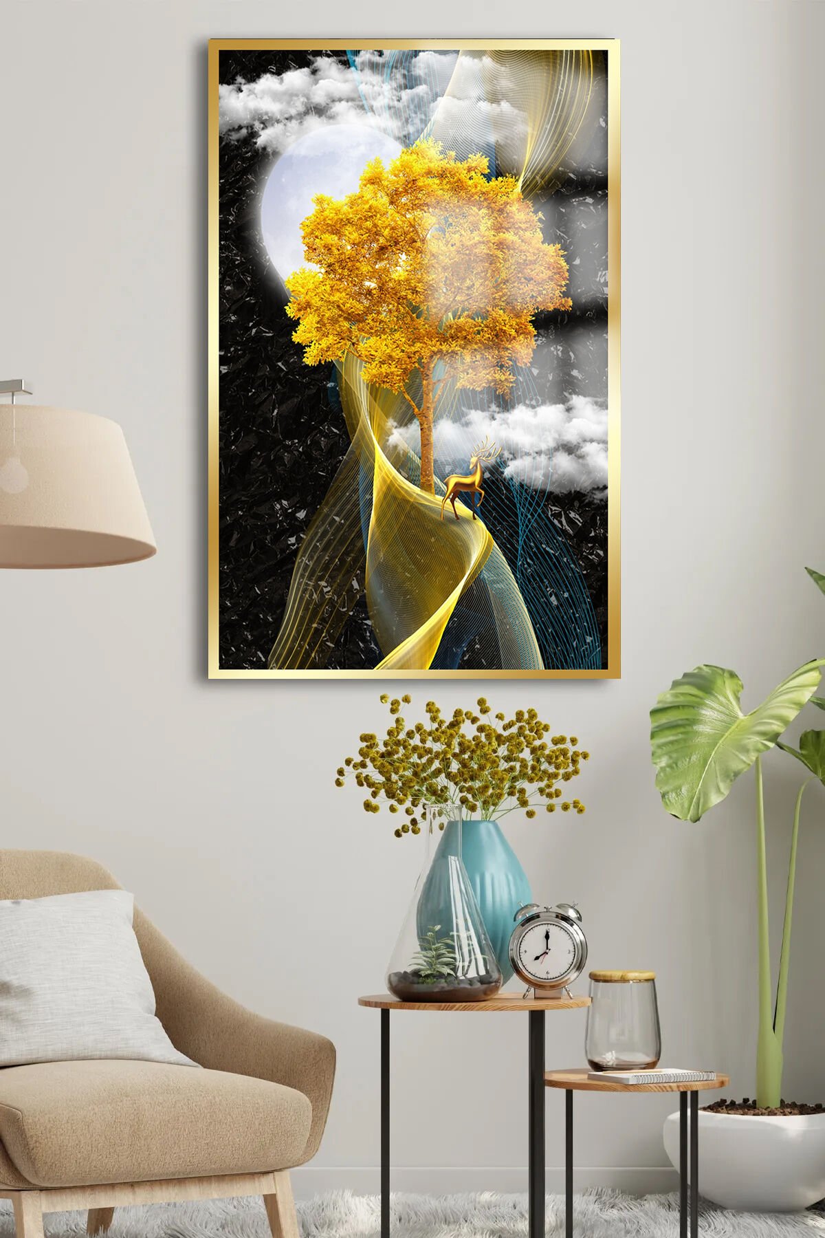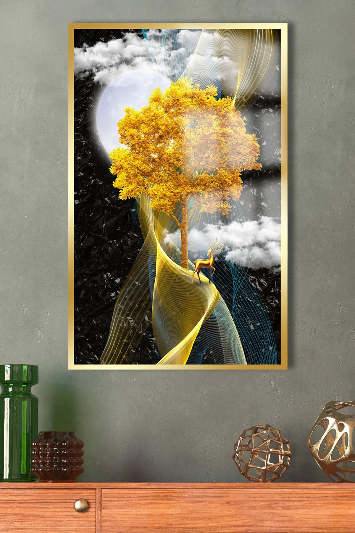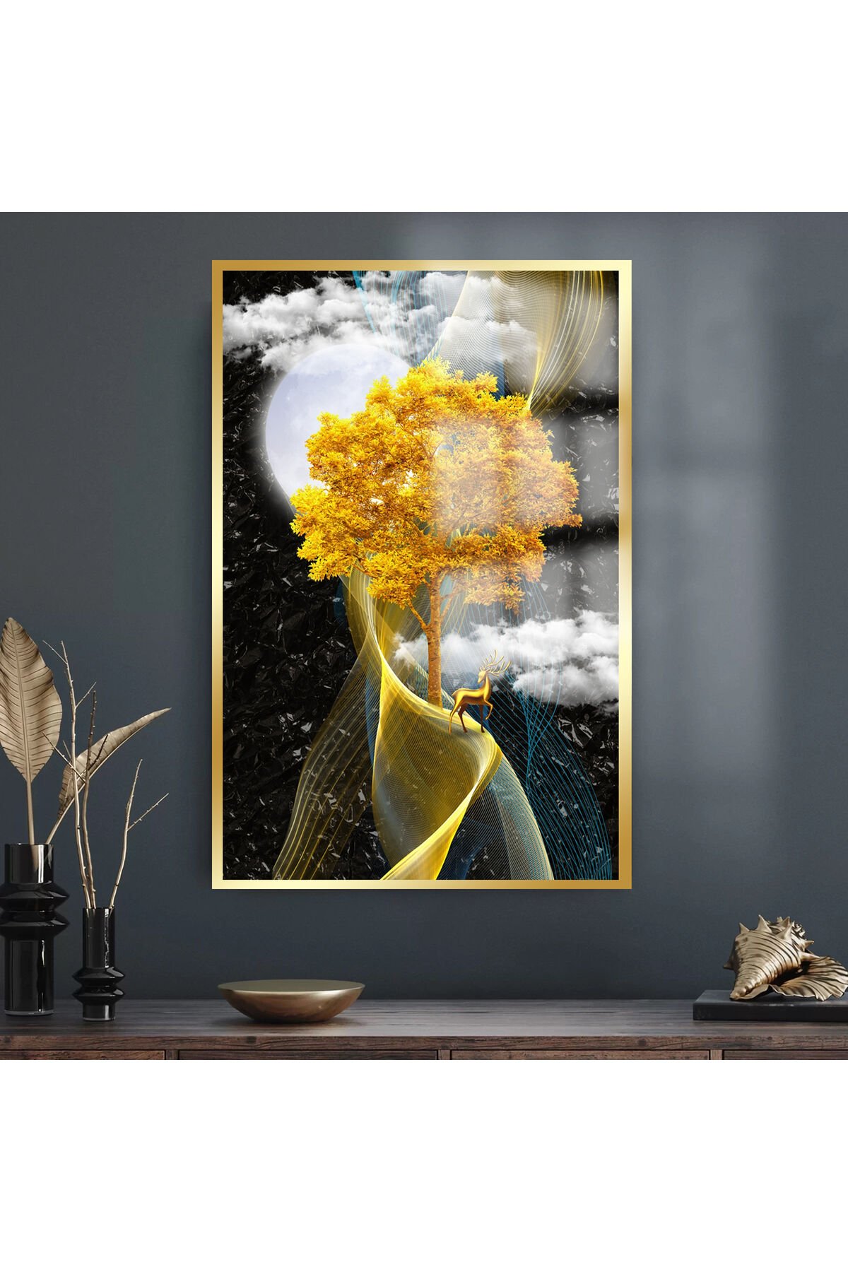 GOLD DETAYLI SOYUT HARİKA TASARIM LÜKS KIRILMAZ CAM TABLO 4MM EV İŞ YERİ OFİS HEDİYESİ TABLO Siyah