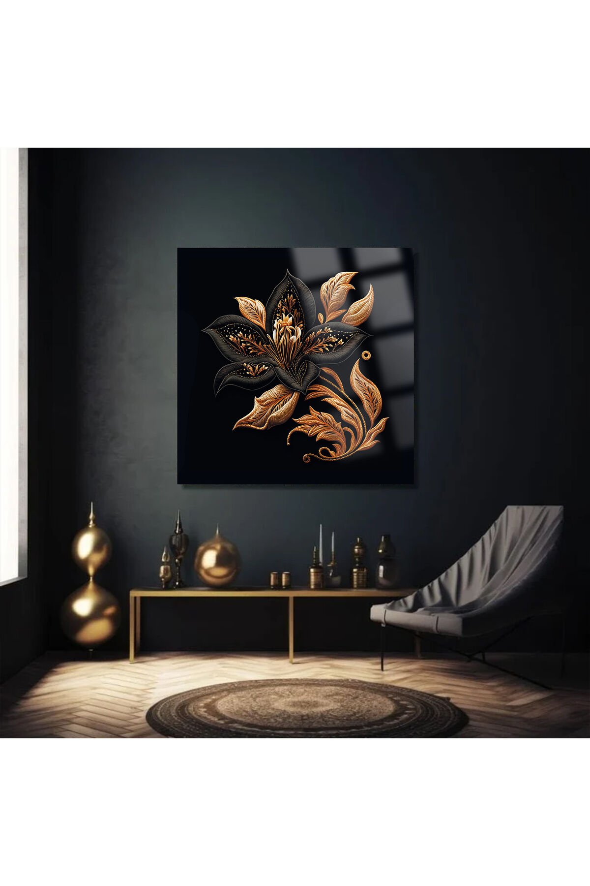 GOLD HARİKA ULTRA YÜKSEK ÇÖZÜNÜRLÜK KARE CAM TABLO EV İŞ YERİ OFİS HEDİYESİ SOYUT TASARIM TABLO
