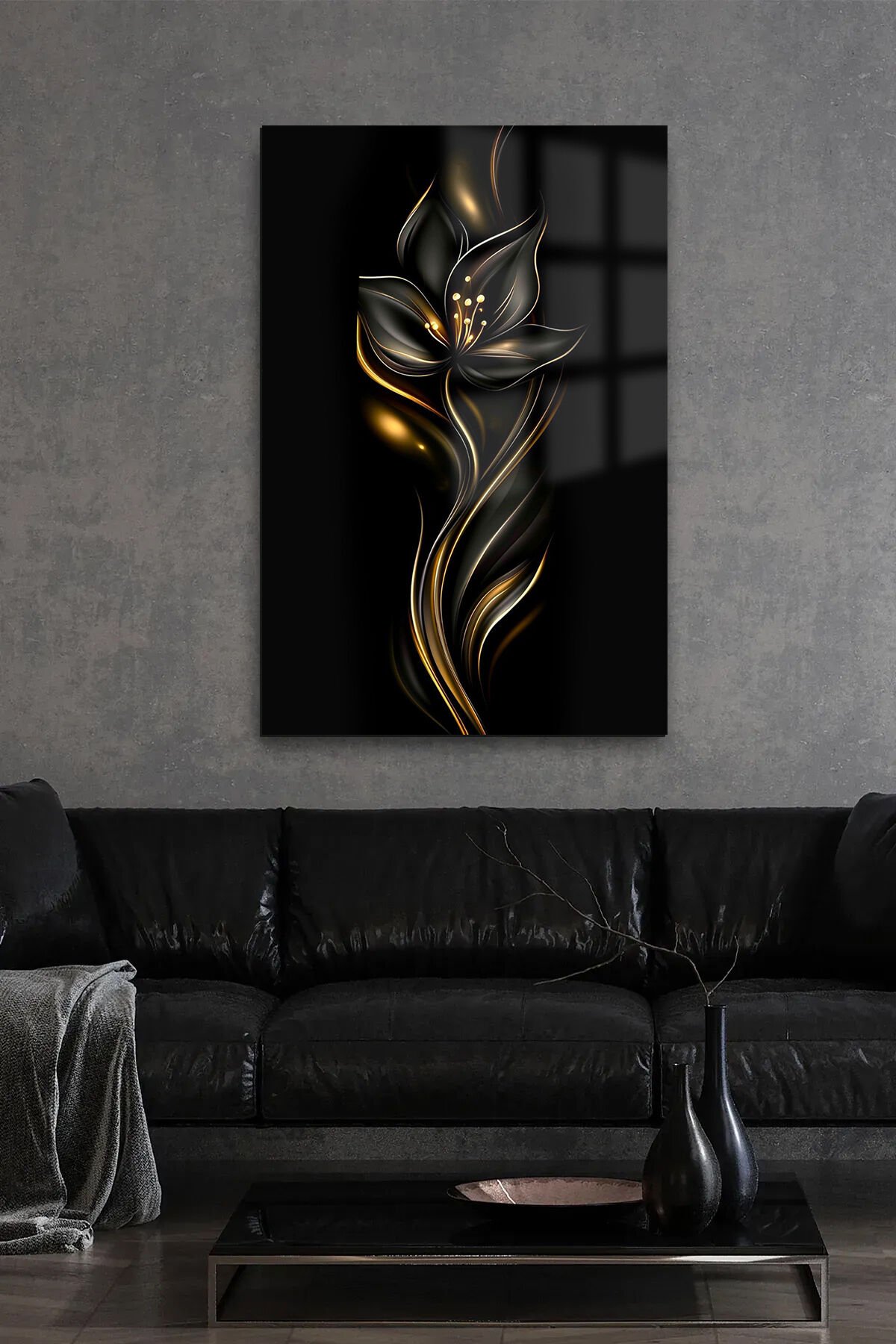 GOLD IŞIK SAÇAN GÜL CAM TABLO ULTRA CANLI RENKLİ KIRILMAZ CAM TABLO EV HEDİYESİ OFİS HEDİYESİ