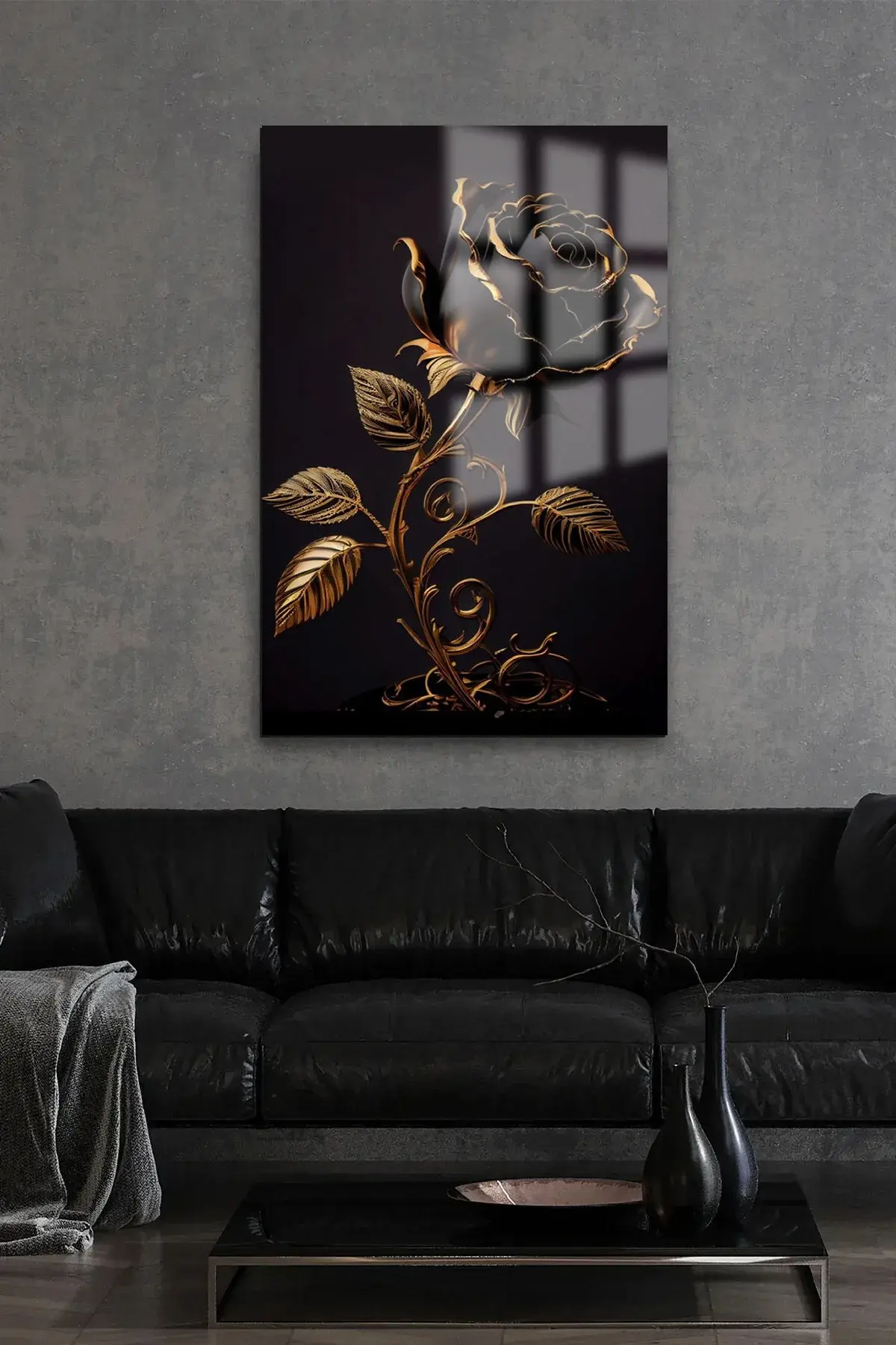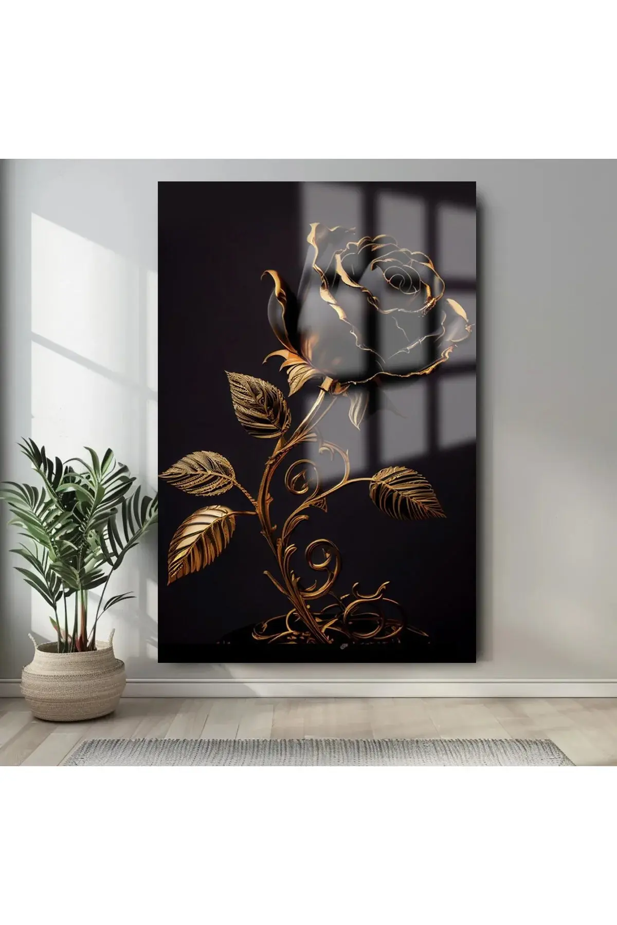 GOLD IŞIK SAÇAN GÜL CAM TABLO ULTRA CANLI RENKLİ KIRILMAZ CAM TABLO EV HEDİYESİ OFİS HEDİYESİ