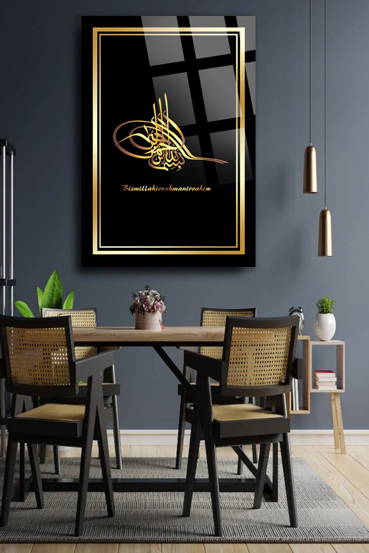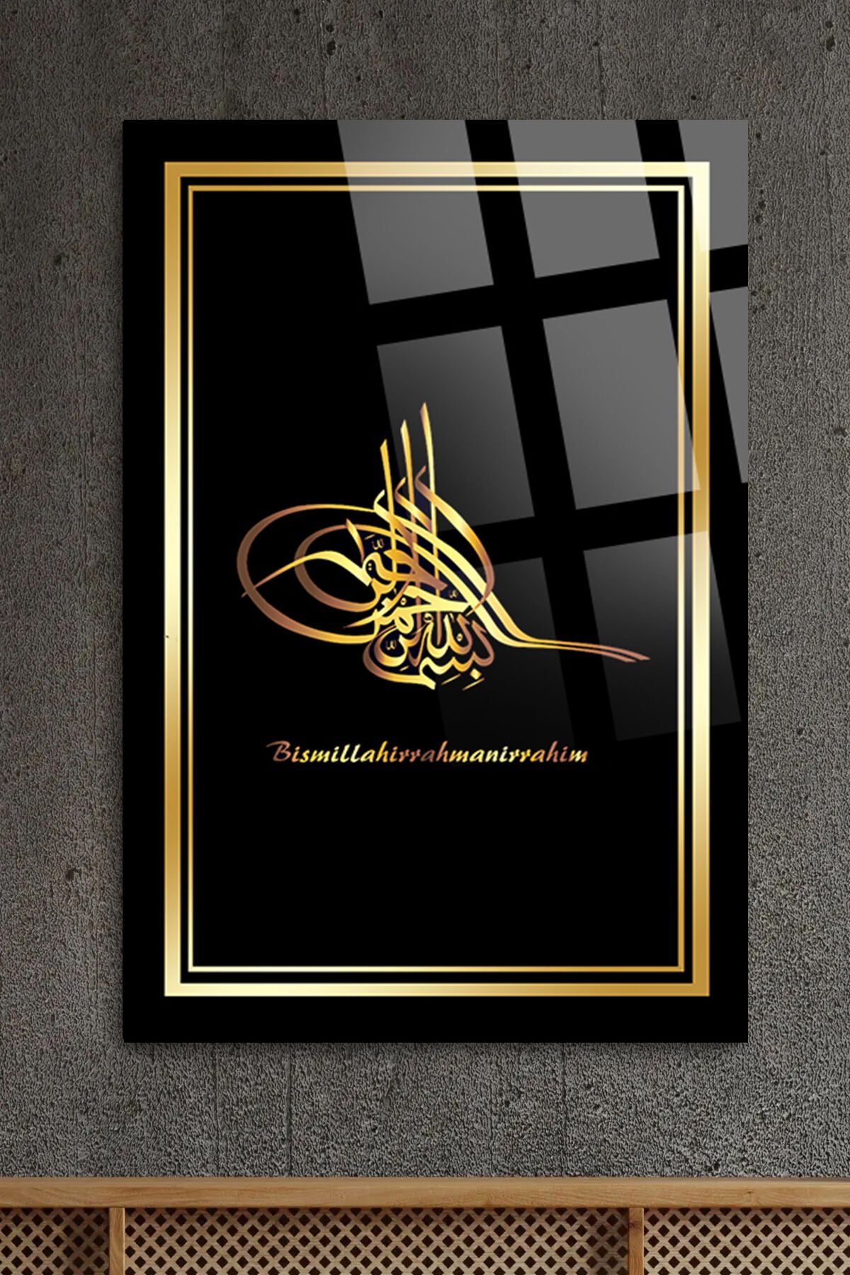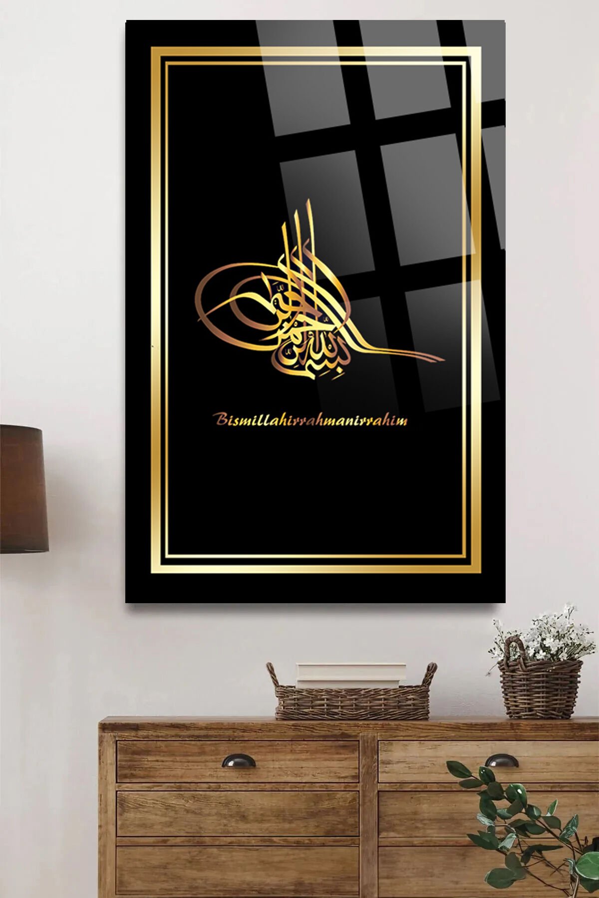 GOLD OSMANLI TUĞRASI OSMANLI PADİŞAH TABLO LÜKS KIRILMAZ CAM TABLO EV OFİS İŞ YERİ HEDİRYESİ Siyah