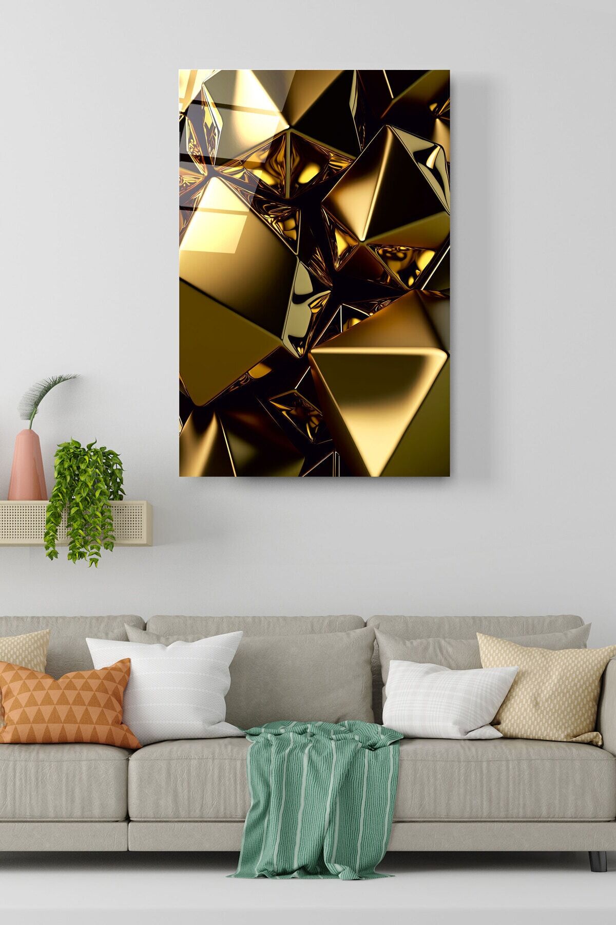 Gold Soyut Cam Tablo, Dekoratif Cam Tablo