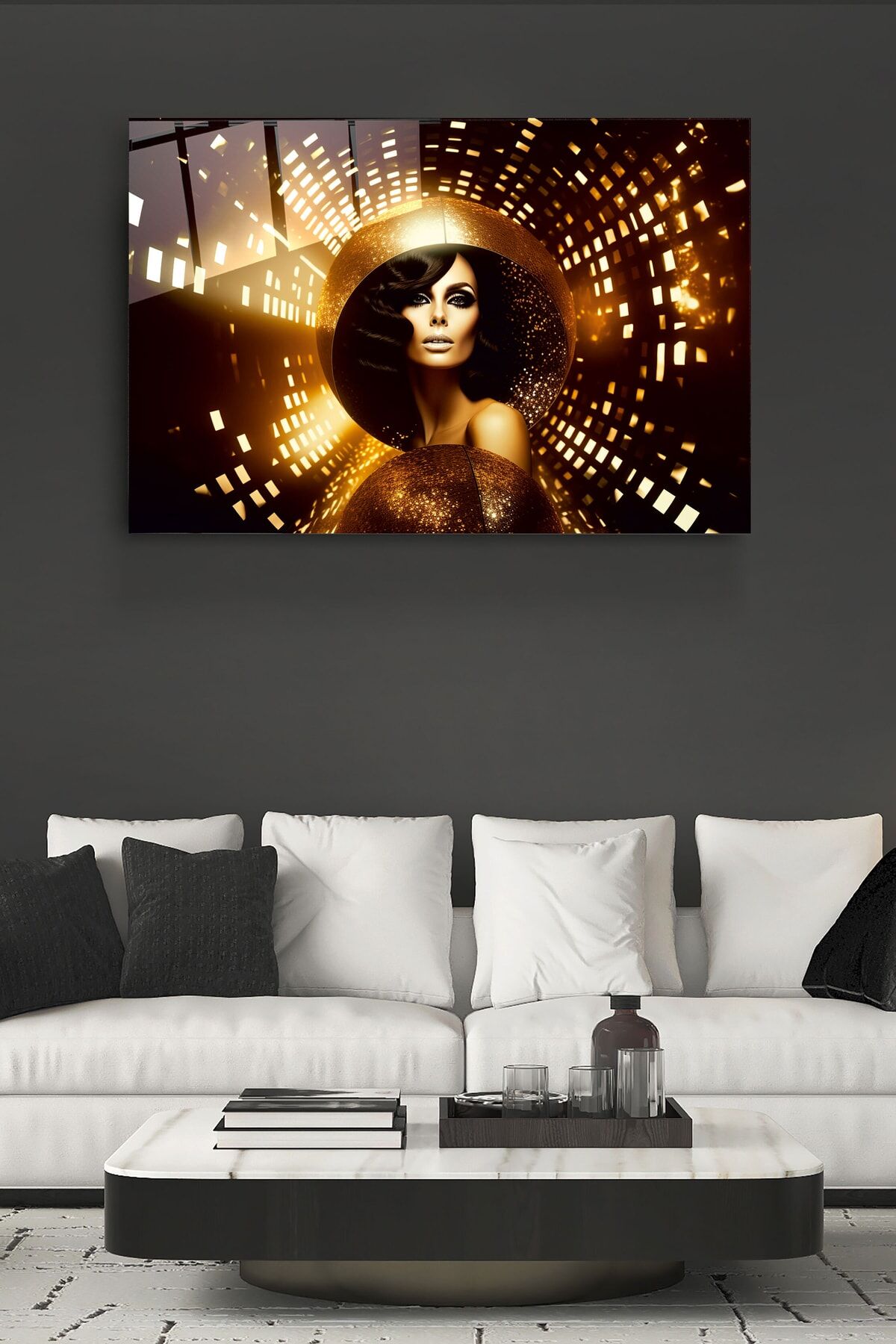 Gold Woman Cam Tablo, Dekoratif Cam Tablo