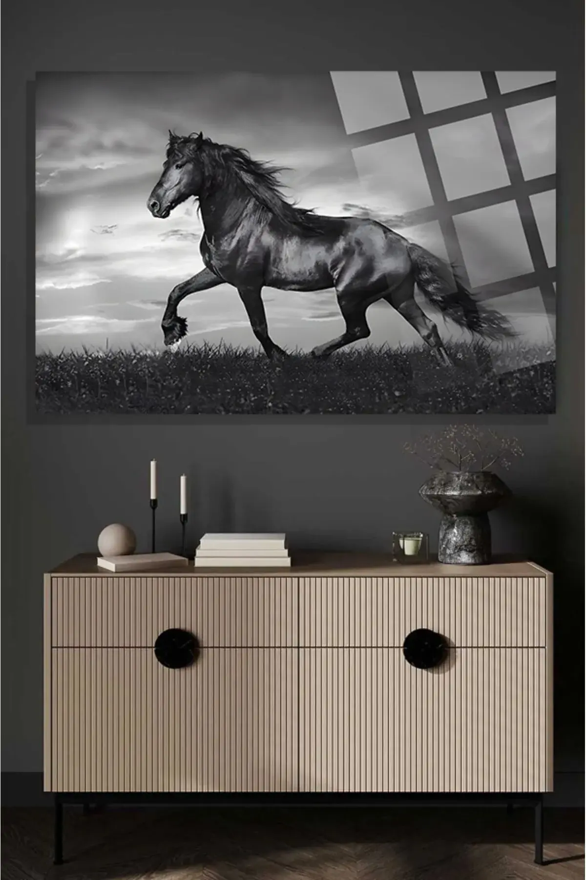 Görkemli At 4mm Lüks Kırılmaz Temperli Yüksek Çözünürlüklü Cam Tablo