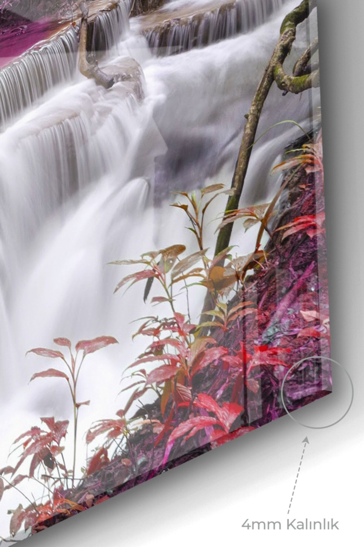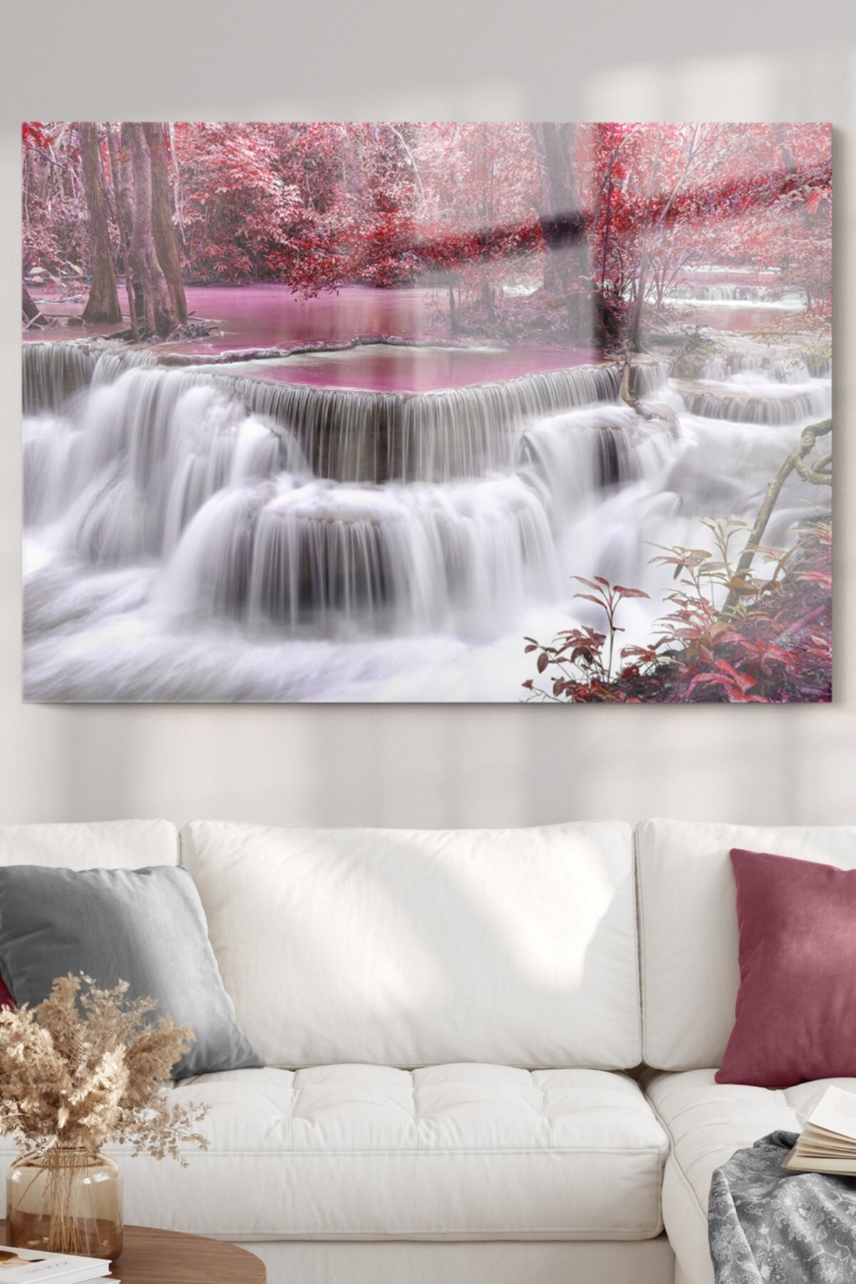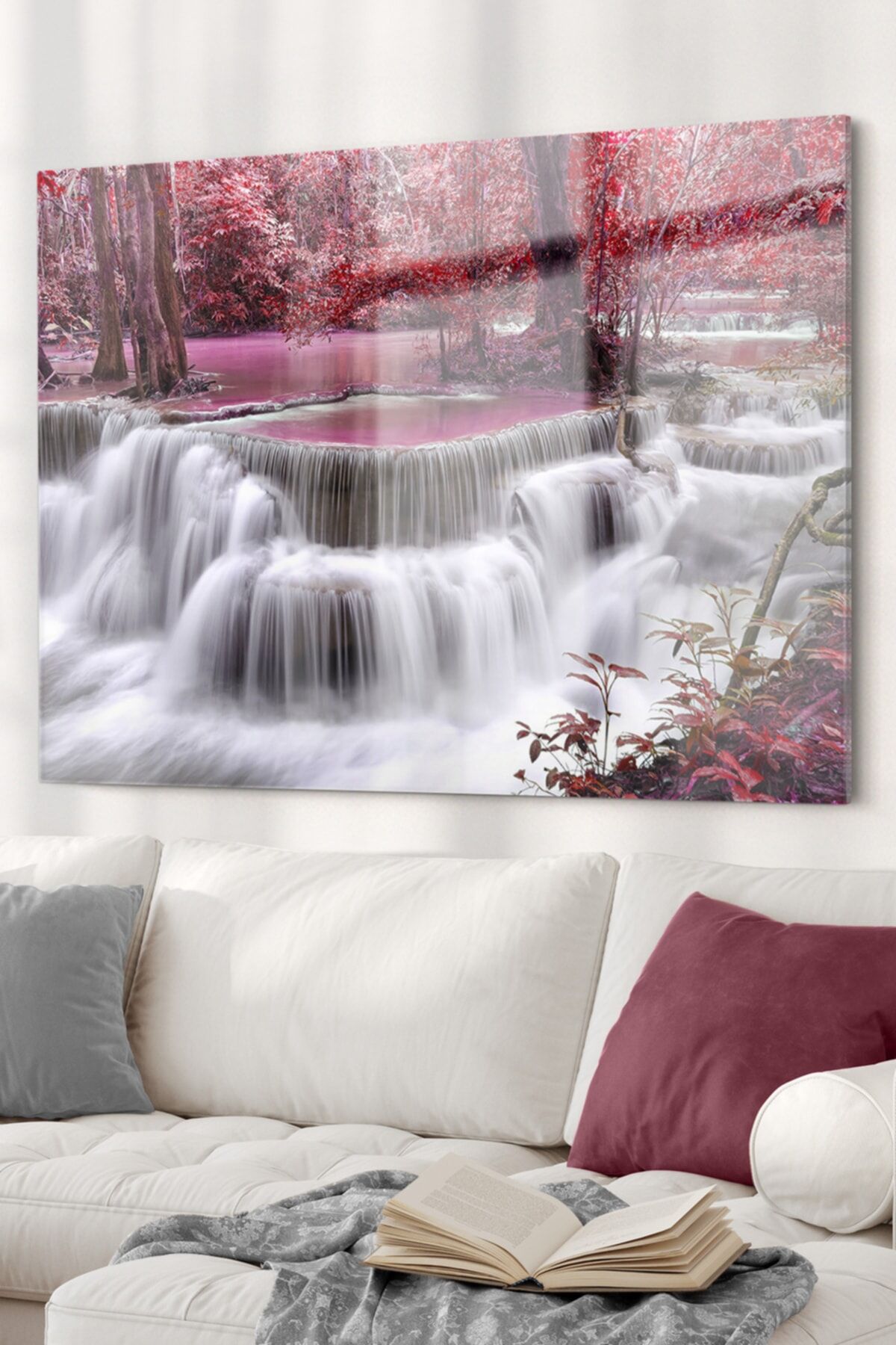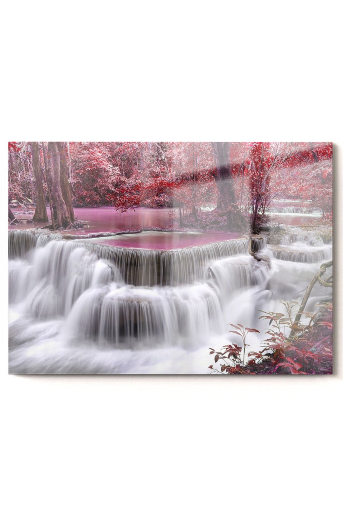 gorsel - Pencere Şelale Ve Pembe Ağaçlar | Doğa Temalı Cam Tablo | 5070olctm109