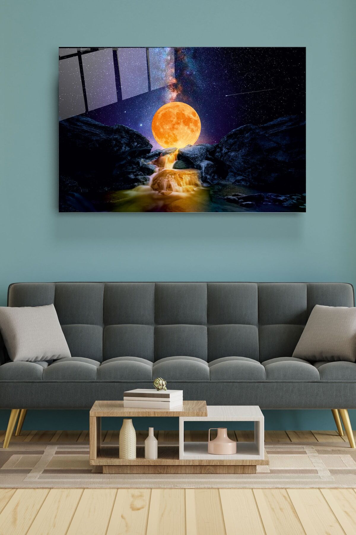 Güneş Ve Galaksi Cam Tablo, Dekoratif Cam Tablo