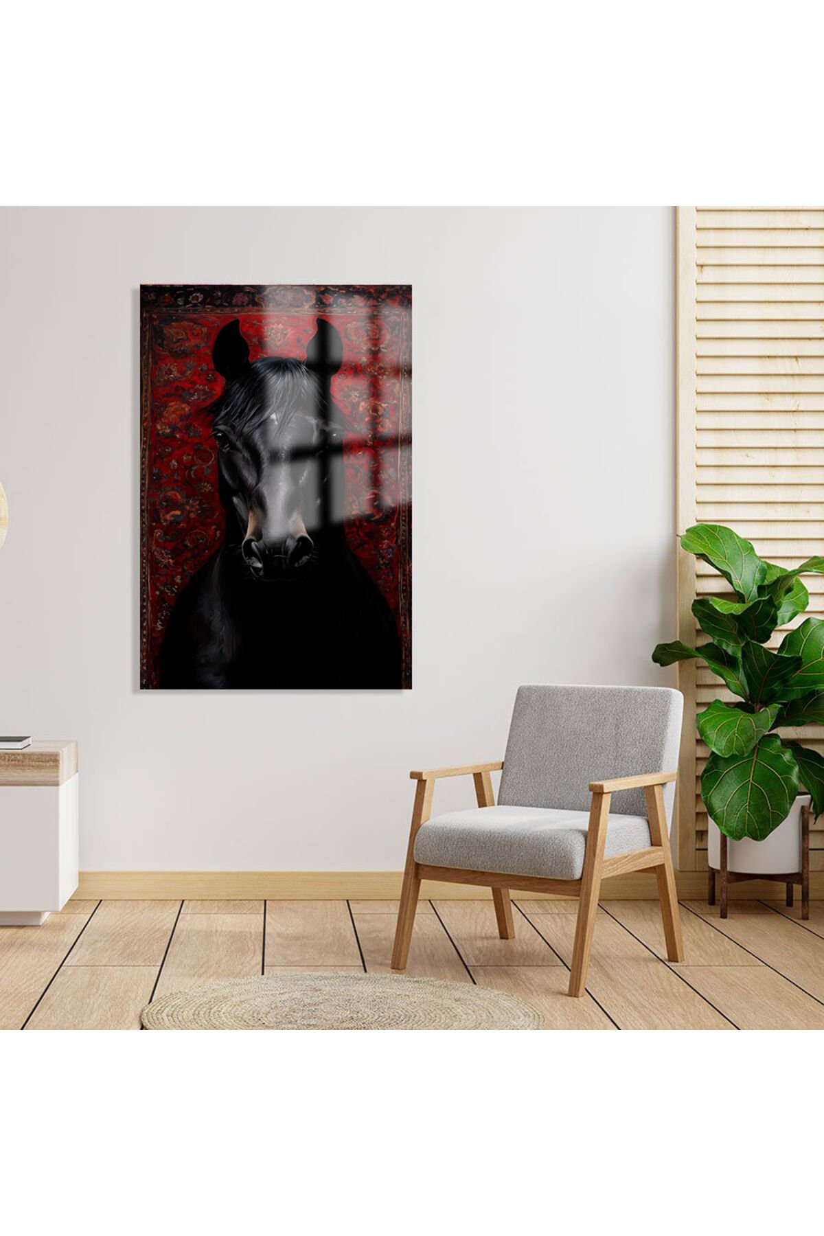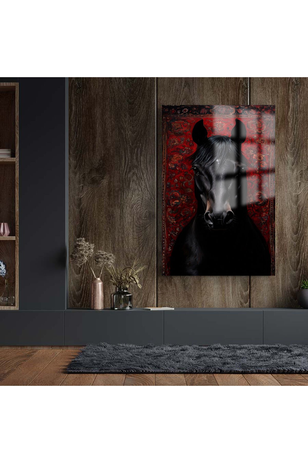HALI DESENİ DETAYLI AT TASARIMI CAM TABLO EV HEDİYESİ İŞ YERİ HEDİYESİ KIRILMAZ LÜKS MODERN TABLO