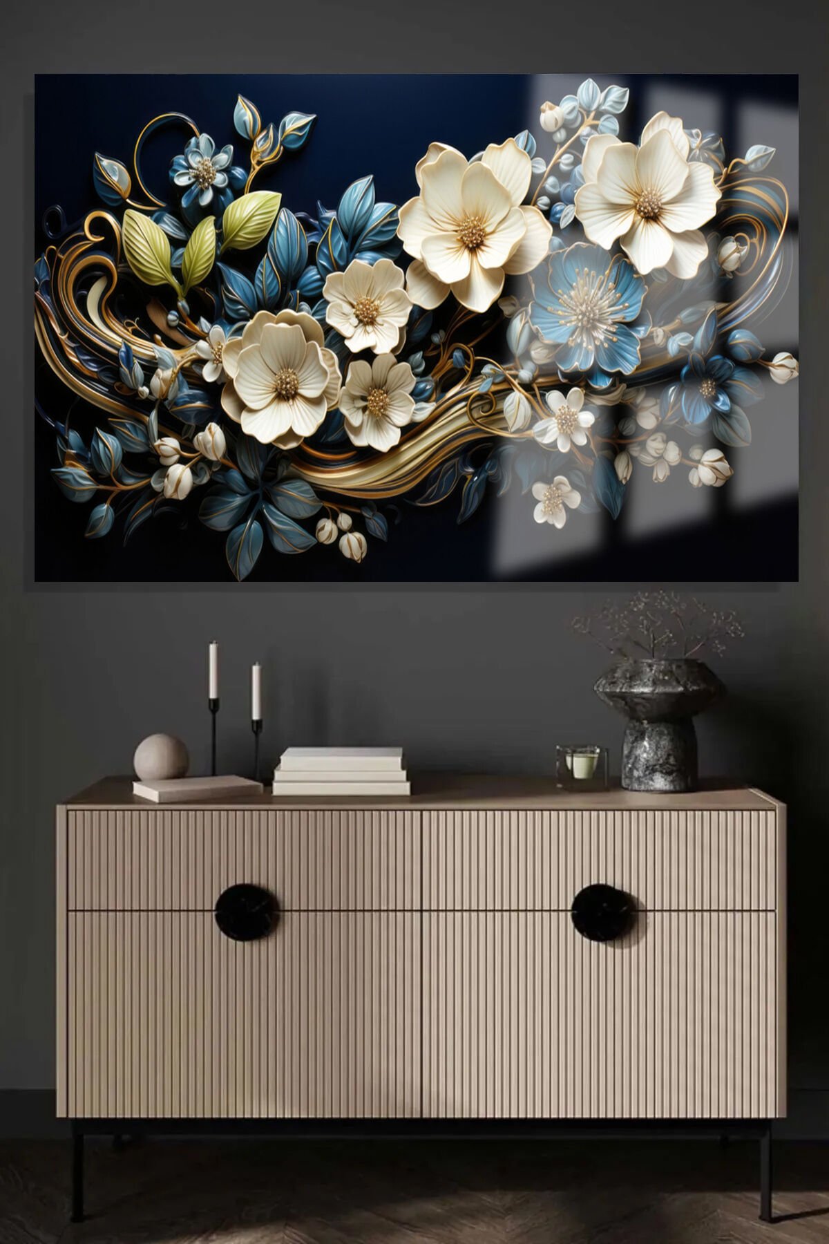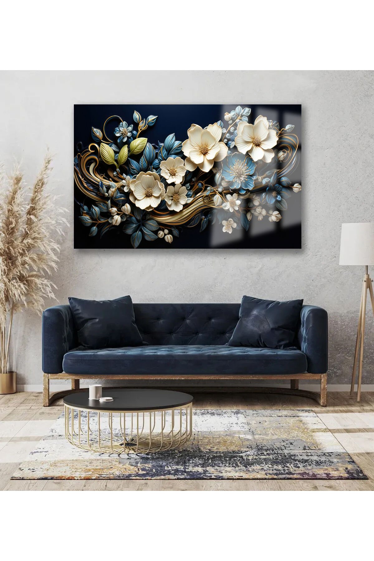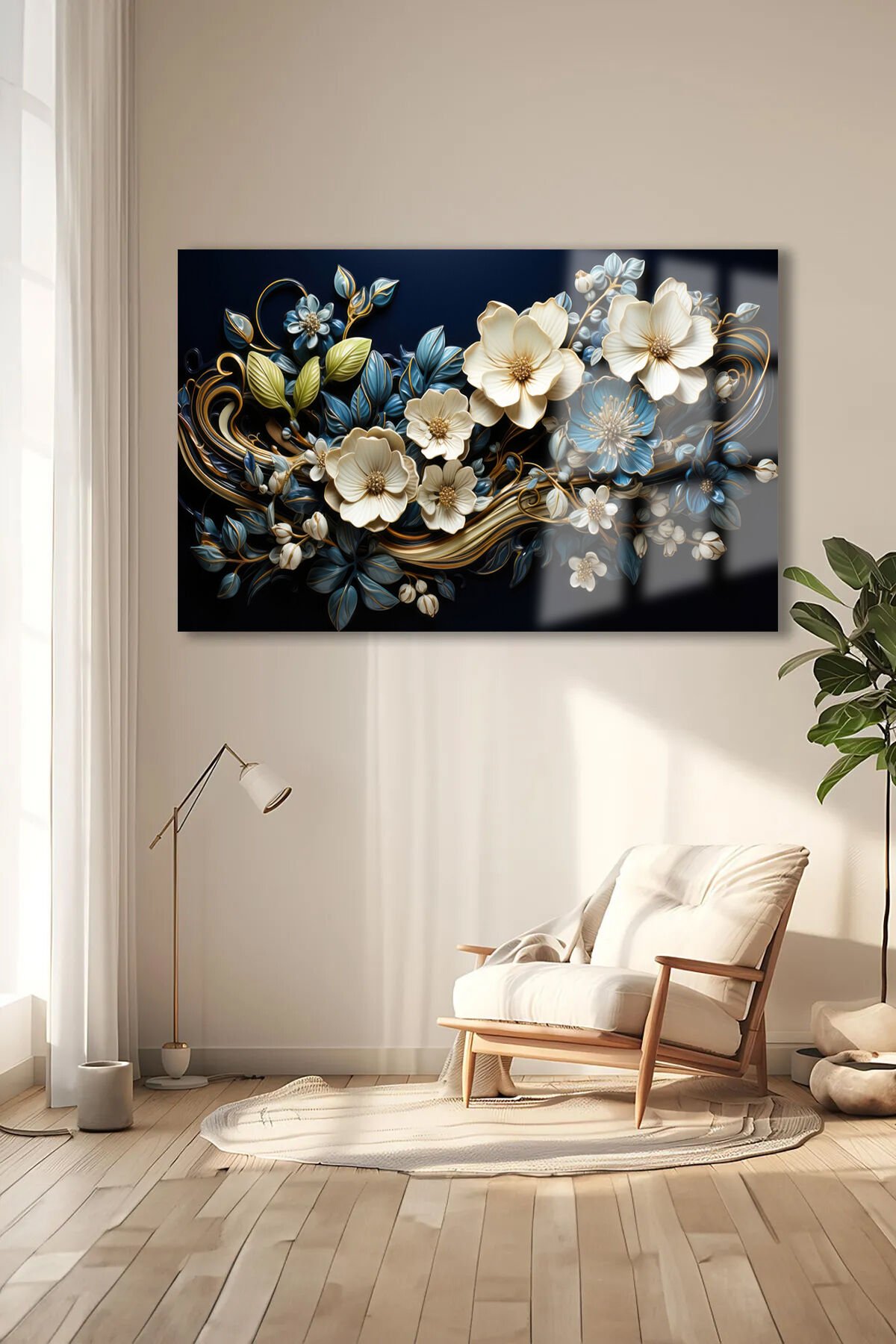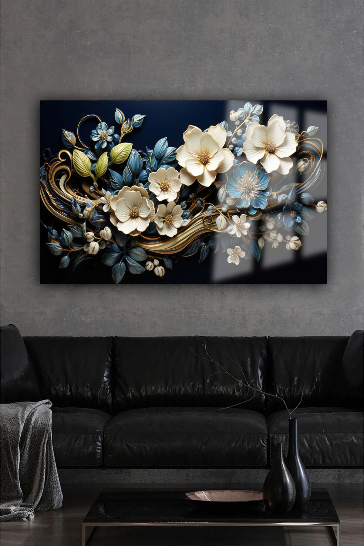 HARİKA AÇAN ÇİÇEK TASARIMI MÜKEMMEL RENK UYUMU LÜKS KIRILMAZ CAM TABLO EV HEDİYESİ TABLO
