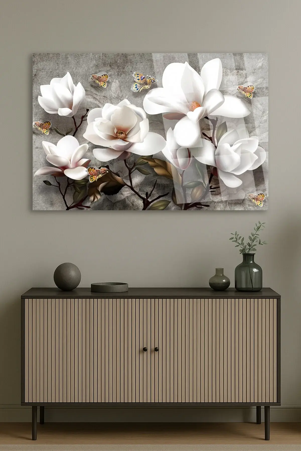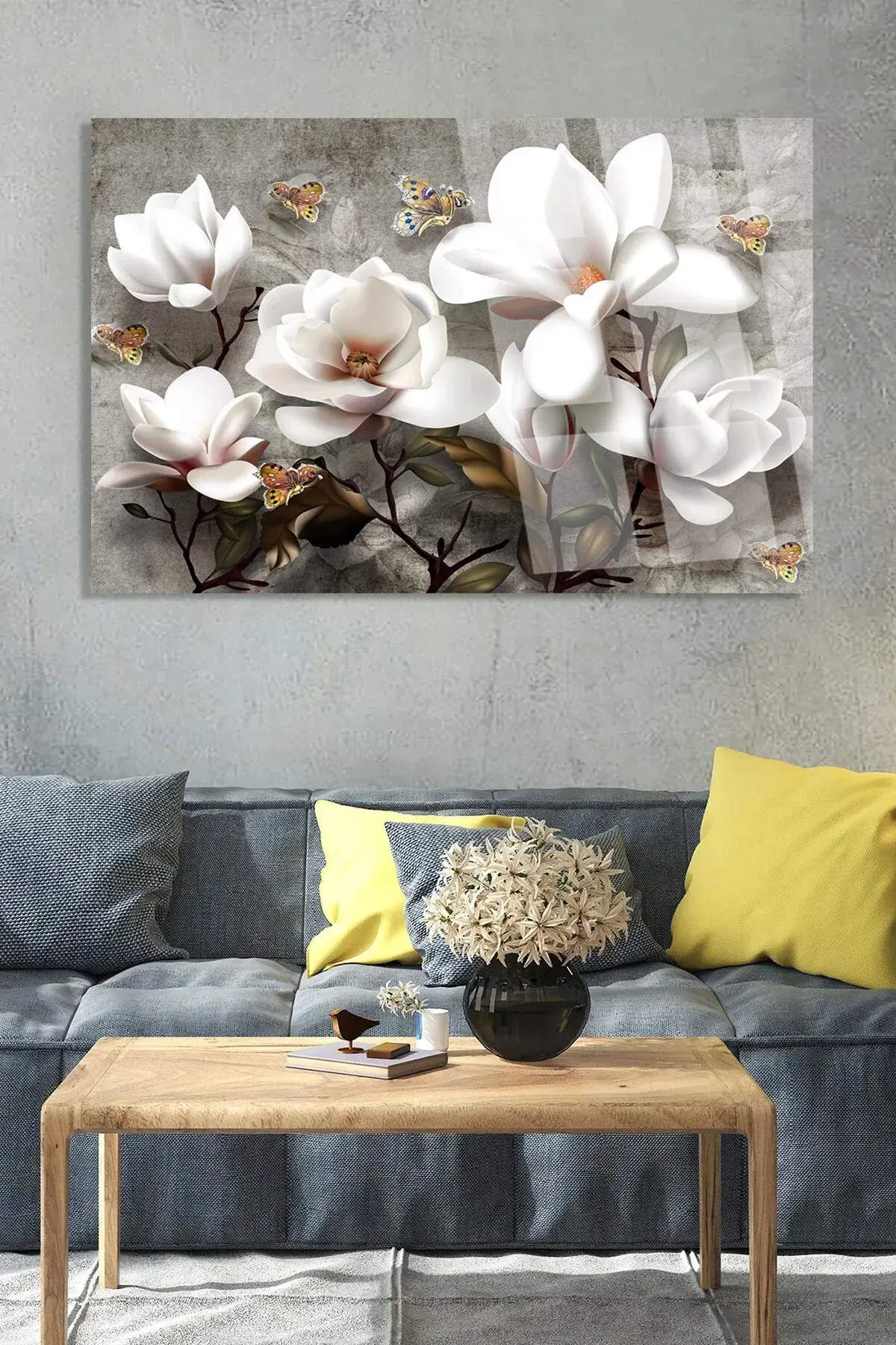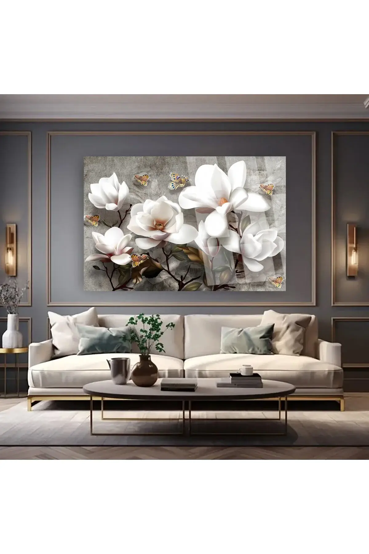 HARİKA ÇİÇEKLER CAM TABLO RENK UYUMLU ÖZGÜN TASARIM KIRILMAZ CAM TABLO MODERN CAM TABLO Siyah